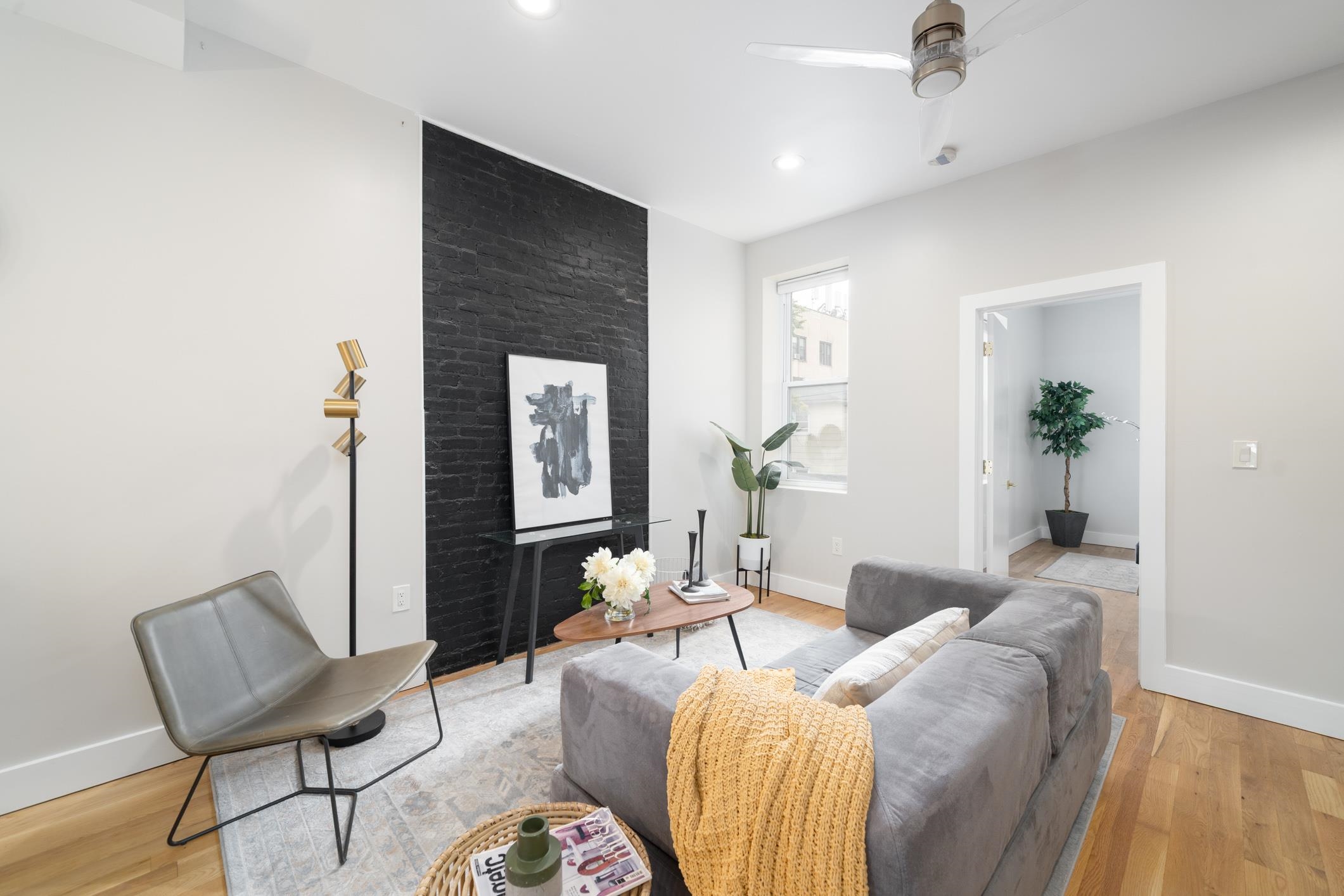 Brooklyn-chic urban living brought to Jersey City Heights with this well laid-out and thoughtfully finished 2 bedroom, 1 bath, 800+ sq ft. condo. Thoughtful attention to every detail with hardwood floors throughout, exposed brick accent, brass fixtures and quartz countertops. Bathroom boasts beautiful blue herringbone and penny tile. Bedrooms are flooded with light. Enjoy excellent storage and quality windows throughout. Wonderfully located in The Heights, and walking distance to great shops and restaurants, excellent schools, easy NYC access, and vibrant parks and community.