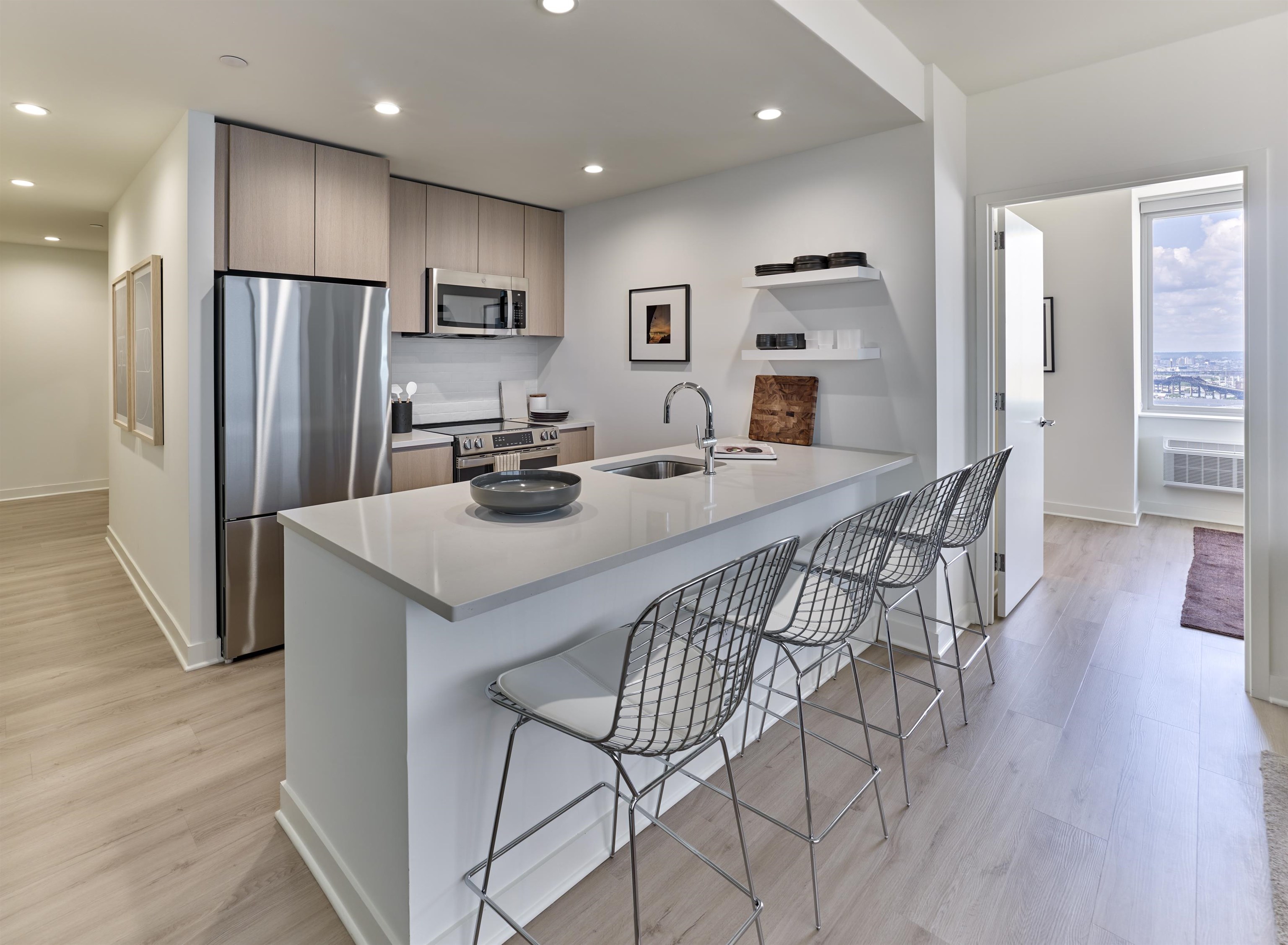 Elevated Living in Jersey City, The Journal. Brand New Community located Steps from the Journal Square Path Station. Full-service building with 24/7 concierge plus 24 hours doorman. Building features, indoor and outdoor pool, full sized basketball court, bowling alleys, game room, sports lounge, fitness center with squash court, yoga room with classes daily, co-working lounges and more. Your apartment comes with in unit washer/dryer for your convenience. The oversized windows will maximize your natural light and views. You will enjoy cooking your chef’s kitchen with soft closing, solid core cabinets and drawers with tile backsplash, Quartz stone countertop and cook with your full Premium GE appliance package. Enjoy wood plank flooring thought the home, with customizable closets in the bedroom. The rental residences at the Journal offer unparalleled comfort and meticulous attention to detail.