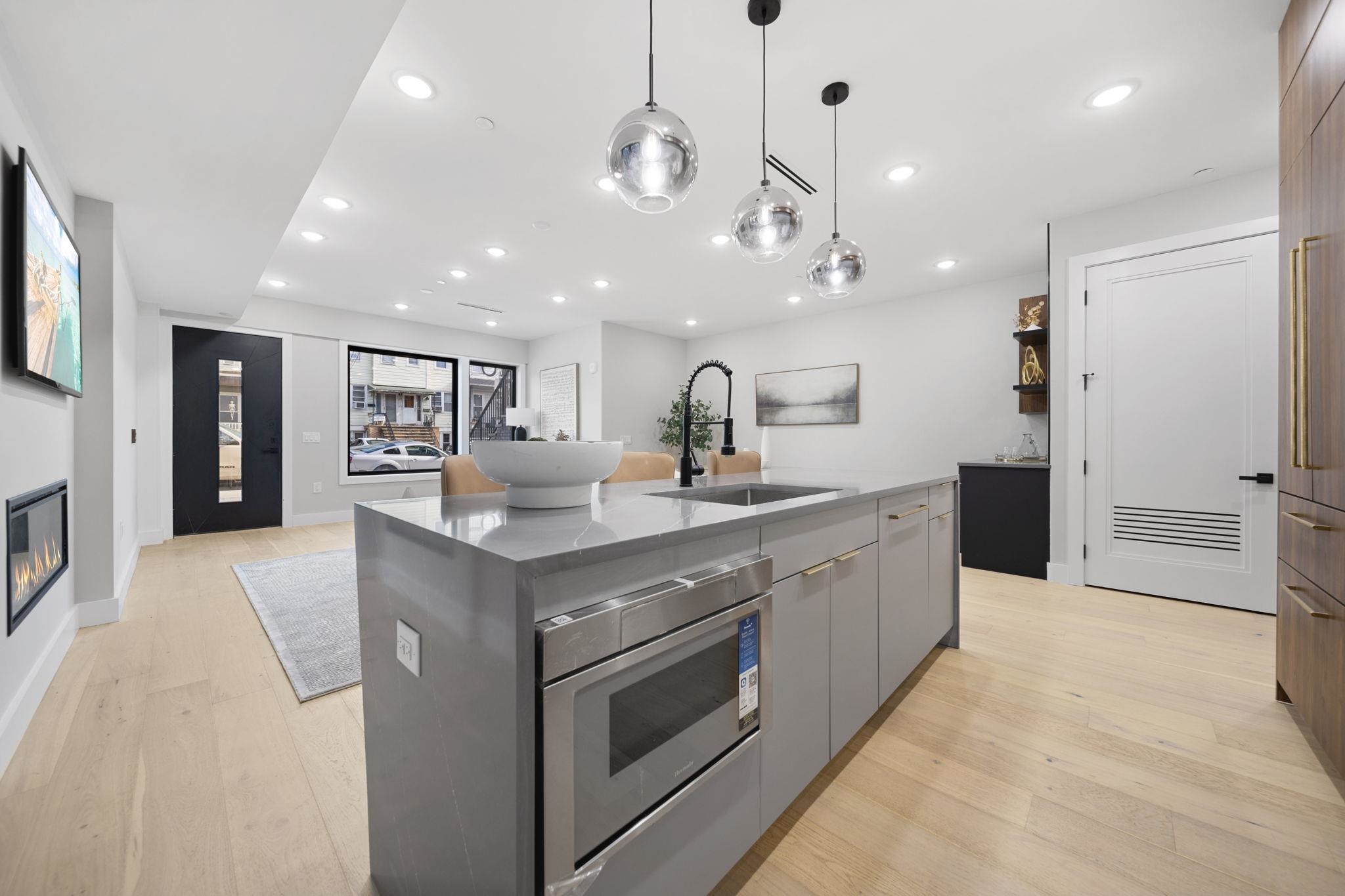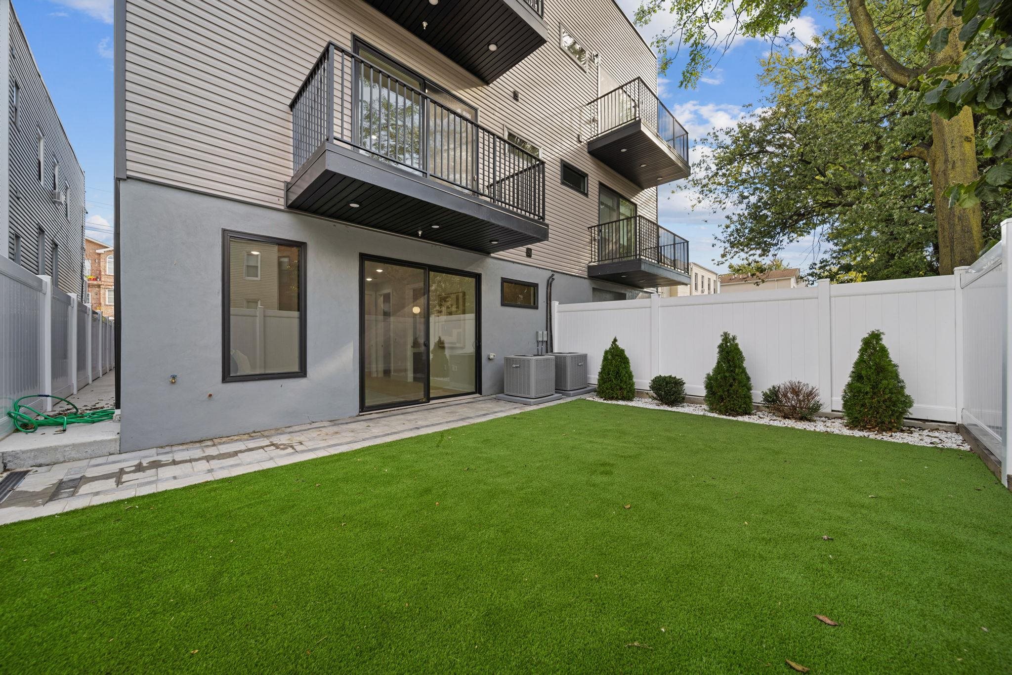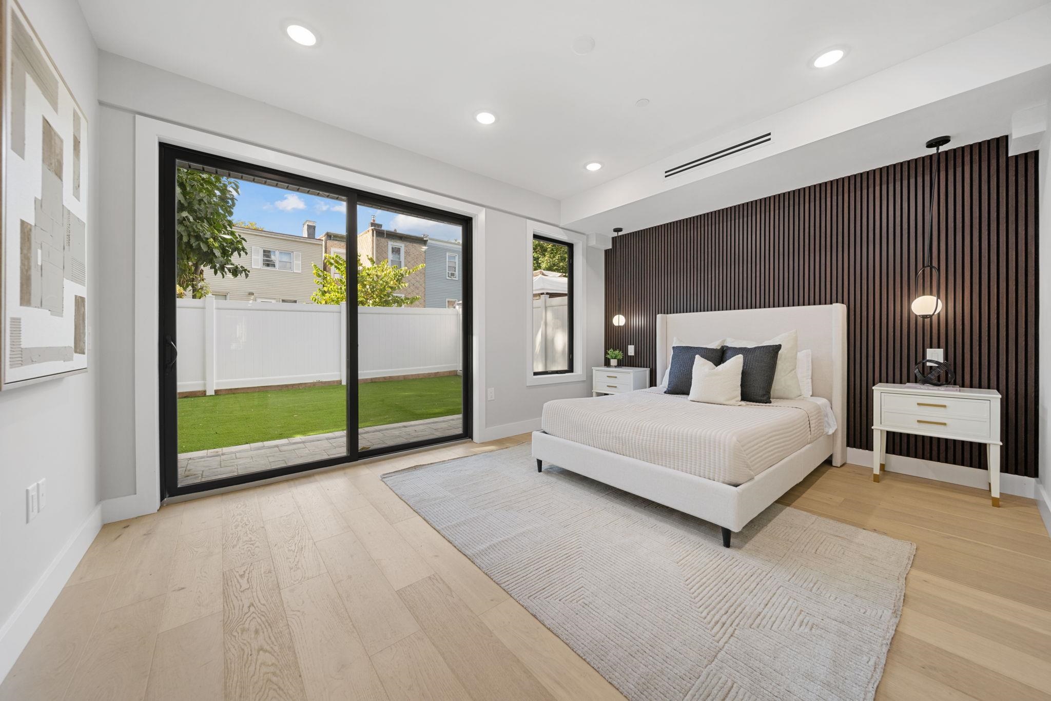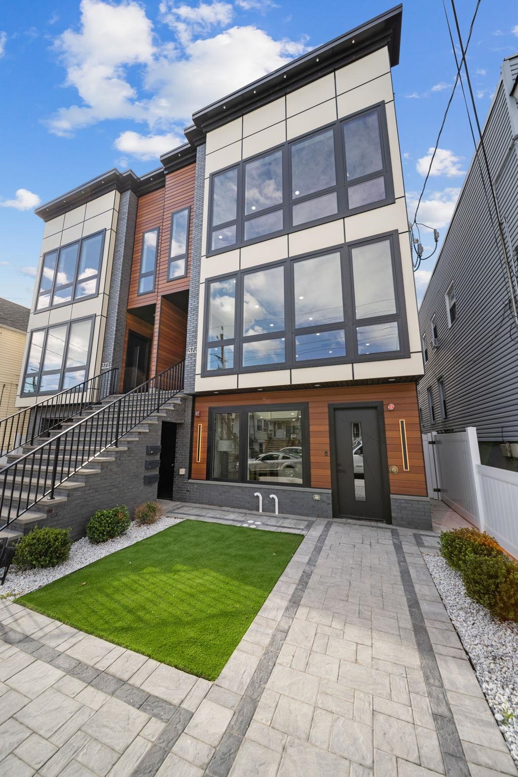 MOMENTS FROM CONGRESS ST LIGHT RAIL STATION AND RIVERVIEW FISK PARK. Welcome to 373 New York Avenue, Jersey City — Blue Chip Properties’ most iconic and sought-after project to date. This stunning 3-bedroom, 2-bathroom duplex home is located in the highly desirable New York Avenue enclave, known for its close proximity to the 9th Street Light Rail, Riverview-Fisk Park, Hoboken, and the gourmet dining scene of Palisade Avenue. Designed with timeless interior finishes, high-end fixtures, and meticulous craftsmanship, this residence also offers cutting-edge modern technology for elevated daily living. The main entrance opens to a grand open-concept dining and living area with soaring ceilings, oversized Andersen energy-efficient windows, abundant natural light, and a statement-making realistic flame fireplace. The chef’s kitchen is outfitted with designer two-tone cabinetry, Thermador appliance package with paneled refrigerator and dishwasher, 5 burner range, and heating drawer. The oversized double waterfall quartz island showcases luxurious West Elm accent lighting, along with porcelain backsplash with a convenient Pot Filler, and an externally vented hood. Flowing seamlessly from the kitchen is your entertainment zone featuring a wet bar with custom cabinetry, backlit designer backsplash, and wine fridge. The primary suite is a serene retreat featuring custom warm wood-tone millwork, bedside pendant lighting, a walk-in closet with built-ins. Sliding glass doors open directly to the private backyard, blending indoor comfort with outdoor living. The spa-like ensuite bath showcases modern natural tones, an oversized double vanity, soaking tub, warm pendant lighting, and a luxurious shower with multiple Kohler body sprays and rainfall showerhead. The two additional bedrooms include custom-finished closets and share a beautifully appointed full bath with double vanity and floor-to-ceiling tiles. A separate laundry room with top-of-the-line washer and dryer completes the main level. This fully equipped smart home includes a Google Nest doorbell, security cameras, Google Smart Hub, smart thermostat, touchscreen light switches, dimmers, and more — all seamlessly controlled via smartphone, along with a security camera system. The home is completed with Blue Chip Properties’ signature exterior facade and professional landscaping. Property includes a 10-year builder’s warranty and a 5-year Tax Abatement. Square footage is approximate. Offsite parking is available, inquire further.