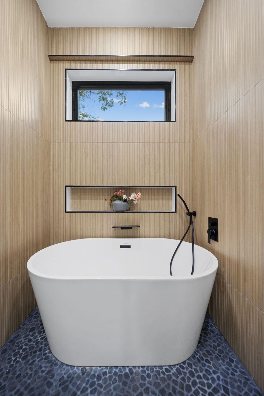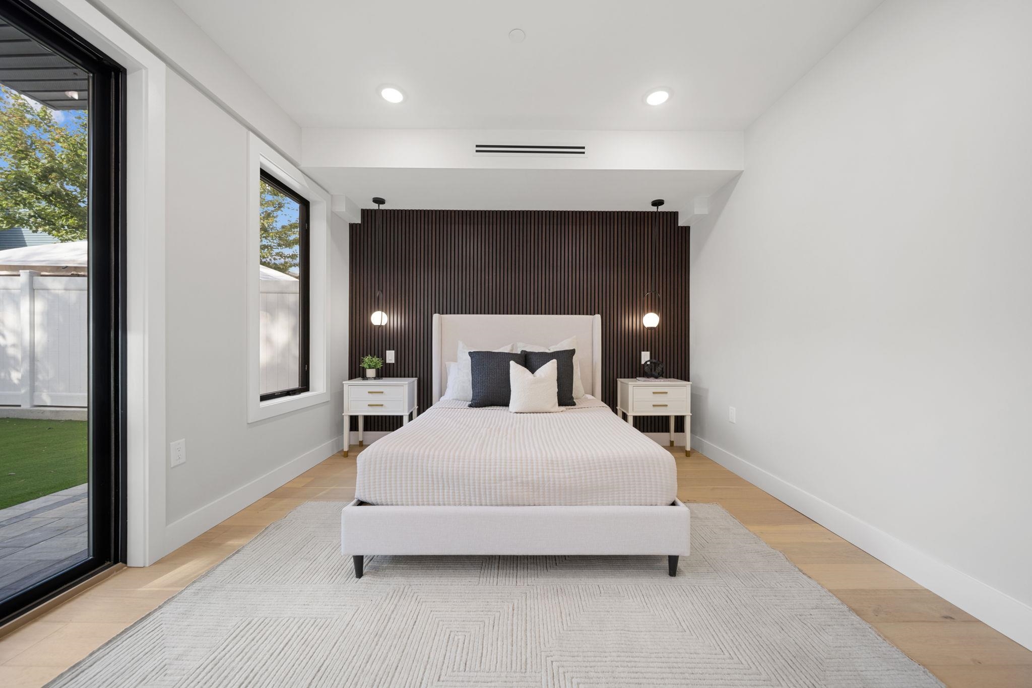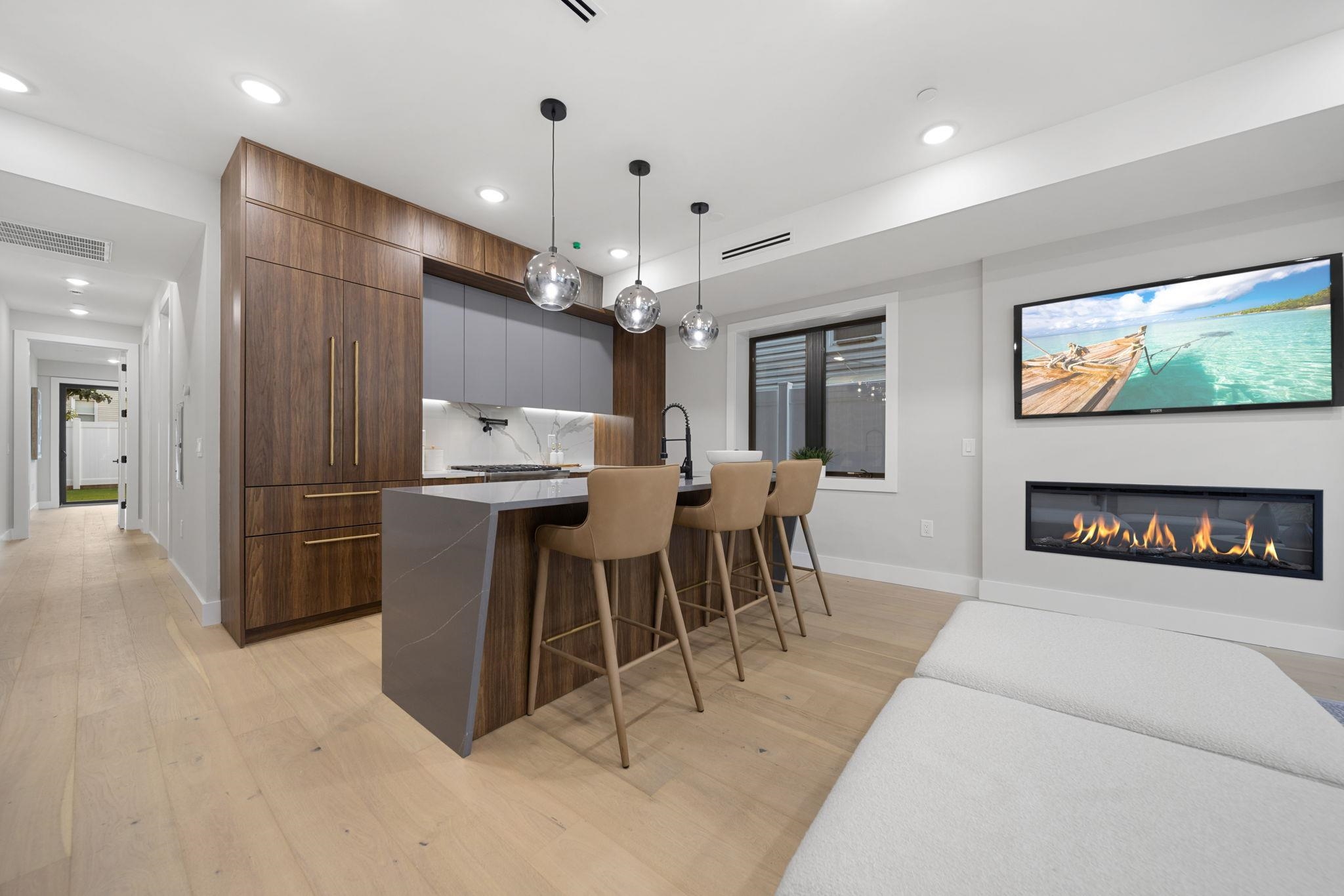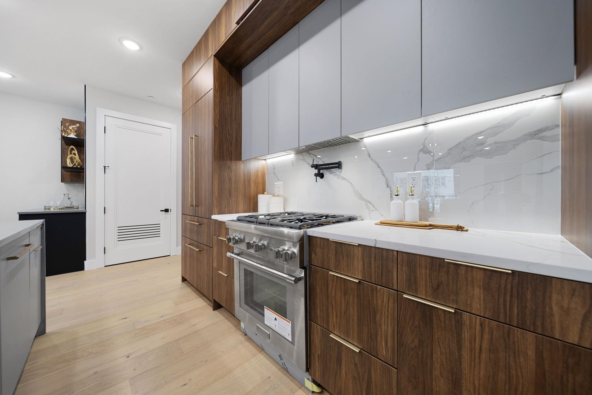 MOMENTS FROM CONGRESS ST LIGHT RAIL STATION AND RIVERVIEW FISK PARK. Welcome to 373 New York Avenue, Jersey City — Blue Chip Properties’ most iconic and sought-after project to date. This stunning 3-bedroom, 2-bathroom duplex home is located in the highly desirable New York Avenue enclave, known for its close proximity to the 9th Street Light Rail, Riverview-Fisk Park, Hoboken, and the gourmet dining scene of Palisade Avenue. Designed with timeless interior finishes, high-end fixtures, and meticulous craftsmanship, this residence also offers cutting-edge modern technology for elevated daily living. The main entrance opens to a grand open-concept dining and living area with soaring ceilings, oversized Andersen energy-efficient windows, abundant natural light, and a statement-making realistic flame fireplace. The chef’s kitchen is outfitted with designer two-tone cabinetry, Thermador appliance package with paneled refrigerator and dishwasher, 5 burner range, and heating drawer. The oversized double waterfall quartz island showcases luxurious West Elm accent lighting, along with porcelain backsplash with a convenient Pot Filler, and an externally vented hood. Flowing seamlessly from the kitchen is your entertainment zone featuring a wet bar with custom cabinetry, backlit designer backsplash, and wine fridge. The primary suite is a serene retreat featuring custom warm wood-tone millwork, bedside pendant lighting, a walk-in closet with built-ins. Sliding glass doors open directly to the private backyard, blending indoor comfort with outdoor living. The spa-like ensuite bath showcases modern natural tones, an oversized double vanity, soaking tub, warm pendant lighting, and a luxurious shower with multiple Kohler body sprays and rainfall showerhead. The two additional bedrooms include custom-finished closets and share a beautifully appointed full bath with double vanity and floor-to-ceiling tiles. A separate laundry room with top-of-the-line washer and dryer completes the main level. This fully equipped smart home includes a Google Nest doorbell, security cameras, Google Smart Hub, smart thermostat, touchscreen light switches, dimmers, and more — all seamlessly controlled via smartphone, along with a security camera system. The home is completed with Blue Chip Properties’ signature exterior facade and professional landscaping. Property includes a 10-year builder’s warranty and a 5-year Tax Abatement. Square footage is approximate. Offsite parking is available, inquire further.