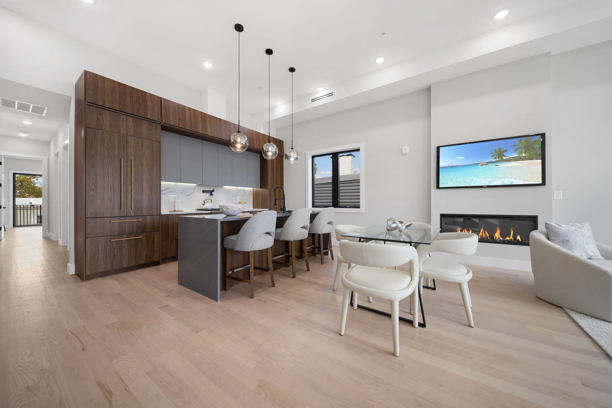 MOMENTS FROM CONGRESS ST LIGHT RAIL STATION AND RIVERVIEW FISK PARK. Welcome to 373 New York Avenue, Jersey City — Blue Chip Properties’ most iconic and sought-after project to date. This stunning 3-bedroom, 2-bathroom duplex home is located in the highly desirable New York Avenue enclave, known for its close proximity to the 9th Street Light Rail, Riverview-Fisk Park, Hoboken, and the gourmet dining scene of Palisade Avenue. Designed with timeless interior finishes, high-end fixtures, and meticulous craftsmanship, this residence also offers cutting-edge modern technology for elevated daily living. The main level opens to a grand open-concept dining and living area with soaring 12-foot ceilings, oversized Andersen energy-efficient windows, a floor-to-ceiling tempered glass accent wall, abundant natural light, and a statement-making realistic flame fireplace. The chef’s kitchen is outfitted with designer two-tone cabinetry, Thermador appliance package with paneled refrigerator and dishwasher, 5 burner range, and heating drawer. The oversized double waterfall quartz island showcases luxurious West Elm accent lighting, along with porcelain backsplash with a convenient Pot Filler, and an externally vented hood. The primary suite is a serene retreat featuring custom warm wood-tone millwork, bedside pendant lighting, a walk-in closet with built-ins, and a private balcony with tree-lined views. The spa-like ensuite bath showcases modern natural tones, an oversized double vanity, soaking tub, warm pendant lighting, and a luxurious shower with multiple Kohler body sprays and rainfall showerhead. The two additional bedrooms include custom-finished closets and share a beautifully appointed full bath with double vanity and floor-to-ceiling tiles. A separate laundry room with top-of-the-line washer and dryer completes the main level. Upstairs, a recessed lit staircase with a glass accent wall leads to an upper-level entertainment zone featuring a wet bar with custom cabinetry, backlit designer backsplash, and wine fridge. Step outside to your expansive rooftop with some of the best NYC skyline views in The Heights, complete with premium astroturf and Trex decking, gas, electric, and water hookups — ideal for entertaining. This fully equipped smart home includes a Google Nest doorbell, security cameras, Google Smart Hub, smart thermostat, touchscreen light switches, dimmers, and more — all seamlessly controlled via smartphone, along with a security camera system. The home is completed with Blue Chip Properties’ signature exterior facade and professional landscaping. Property includes a 10-year builder’s warranty and a 5-year Tax Abatement. Square footage is approximate. Offsite parking available, inquire for further details.