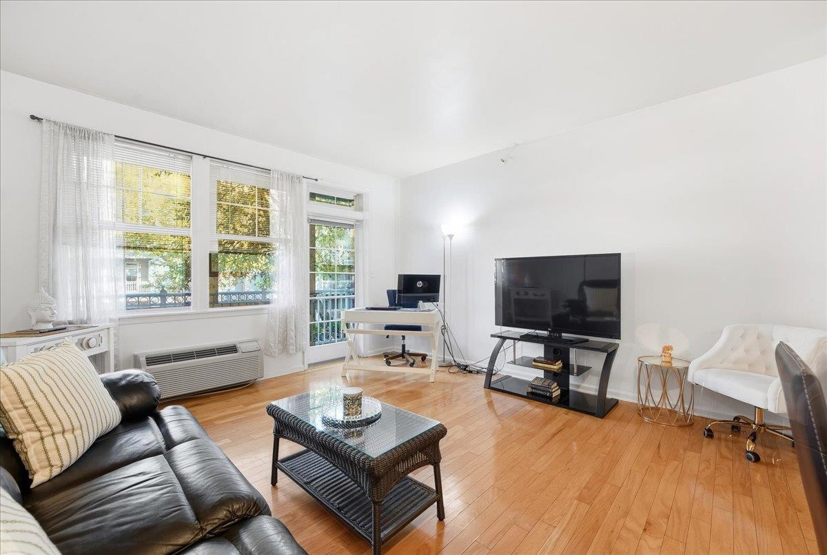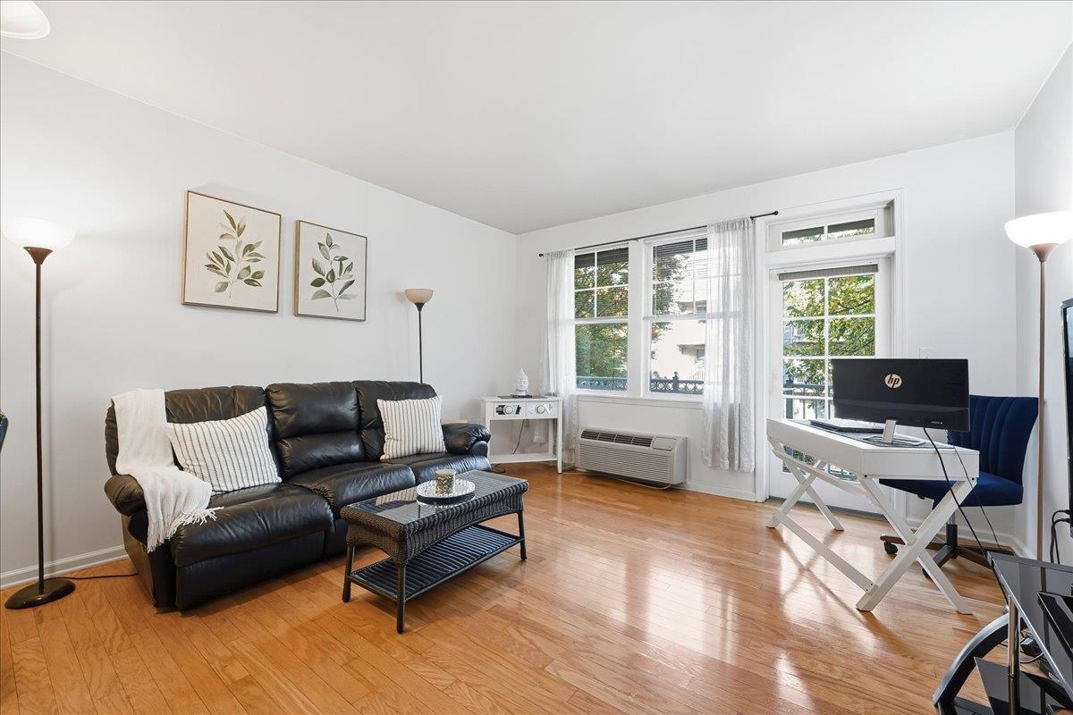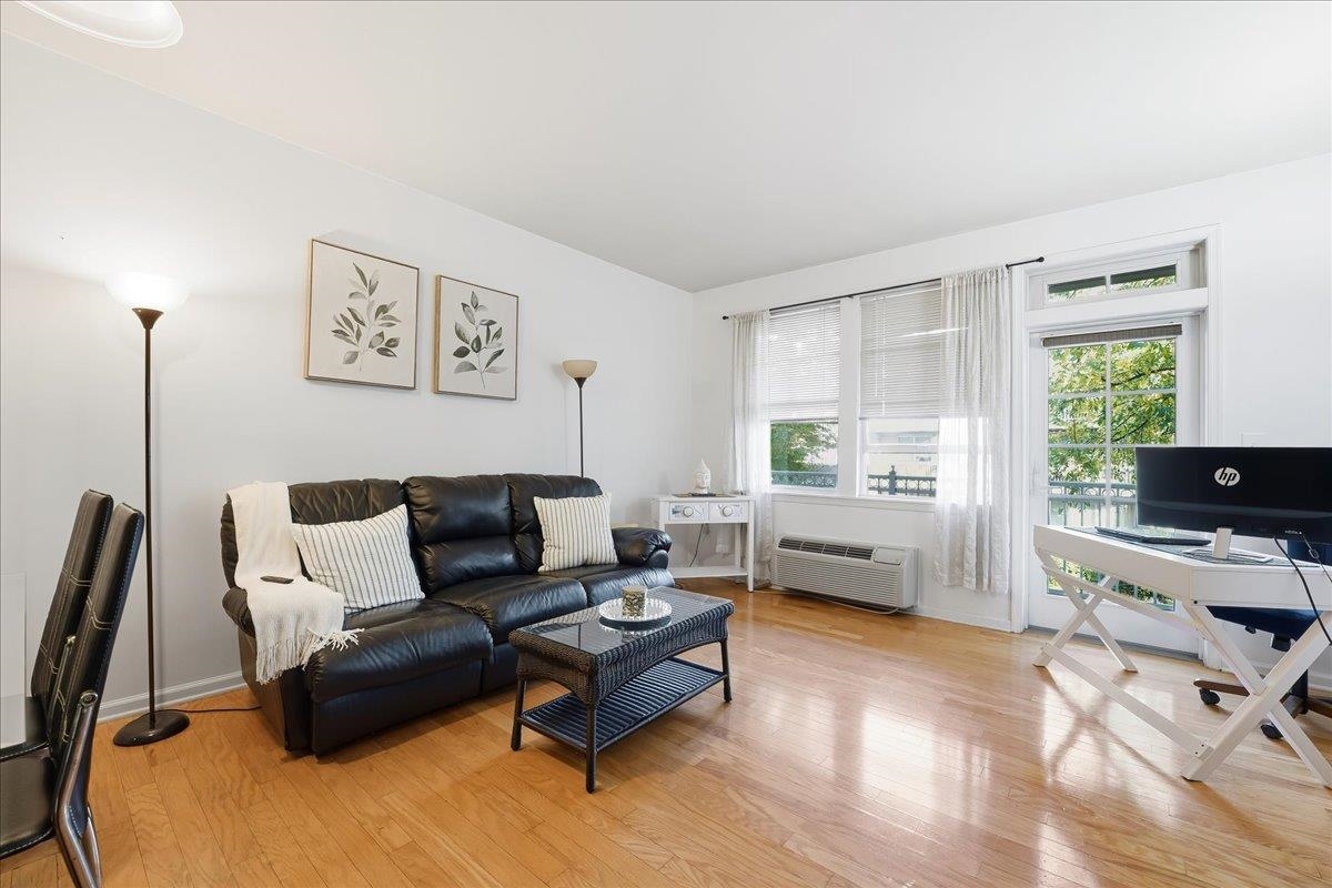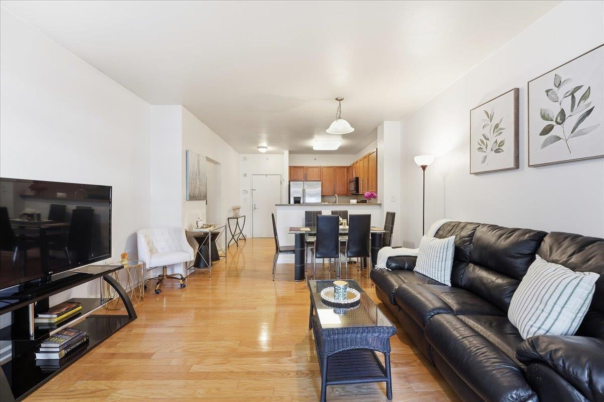Welcome home to this 2nd Floor, largest one bedroom condo with beautiful tree-lined views & private balcony with 811 square feet of living space and BRAND NEW flooring in the bedroom retreat!! Welcome to luxury living in one of the most sought -after waterfront communities—Port Liberte! This exceptional 1 bedroom, 1 bath residence is bathed in natural light from multiple exposures, this open-concept home features a spacious living and dining area with hardwood floors, perfect for both entertaining and everyday comfort. The modern day kitchen is a chef’s dream, complete with extensive granite counter space, abundant cabinetry & stainless steel appliances with gas cooking. The primary suite is a true retreat, with double windows and tree-lined views. The elegant bathroom features a sleek vanity with quartz countertop, complemented by a spa-inspired soaking tub and shower combo. Soft lighting creates a serene, luxurious retreat within your home. Laundry day is a cinch with your in-unit washer/dryer with extra storage space for your laundry essentials! Enjoy the elegance, privacy, and quiet living along with one car garage parking. Enjoy all of Port Liberte’s resort-style amenities (tennis /basketball courts, infinity pool with NYC views, garden areas), and close proximity to vibrant waterfront paths, shops, and NYC transit. Easy access to the NY Waterway or the Port Liberte Shuttle to the Grove St. PATH, makes your NYC commute for work or play a cinch! This is more than just a rental—it’s a lifestyle. Don’t miss this one-of-a-kind opportunity to live in luxury by the waterfront. NO PETS. Book your private tour today!