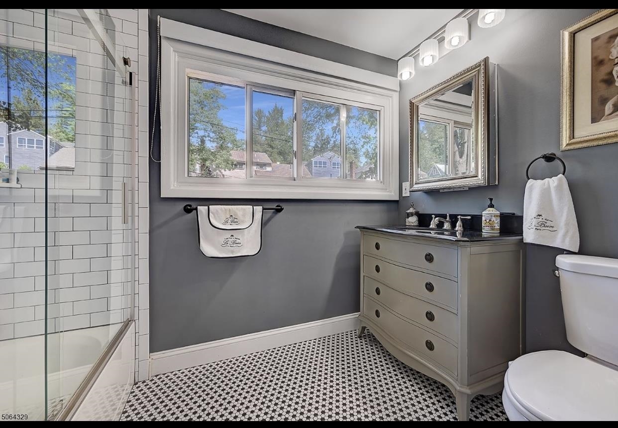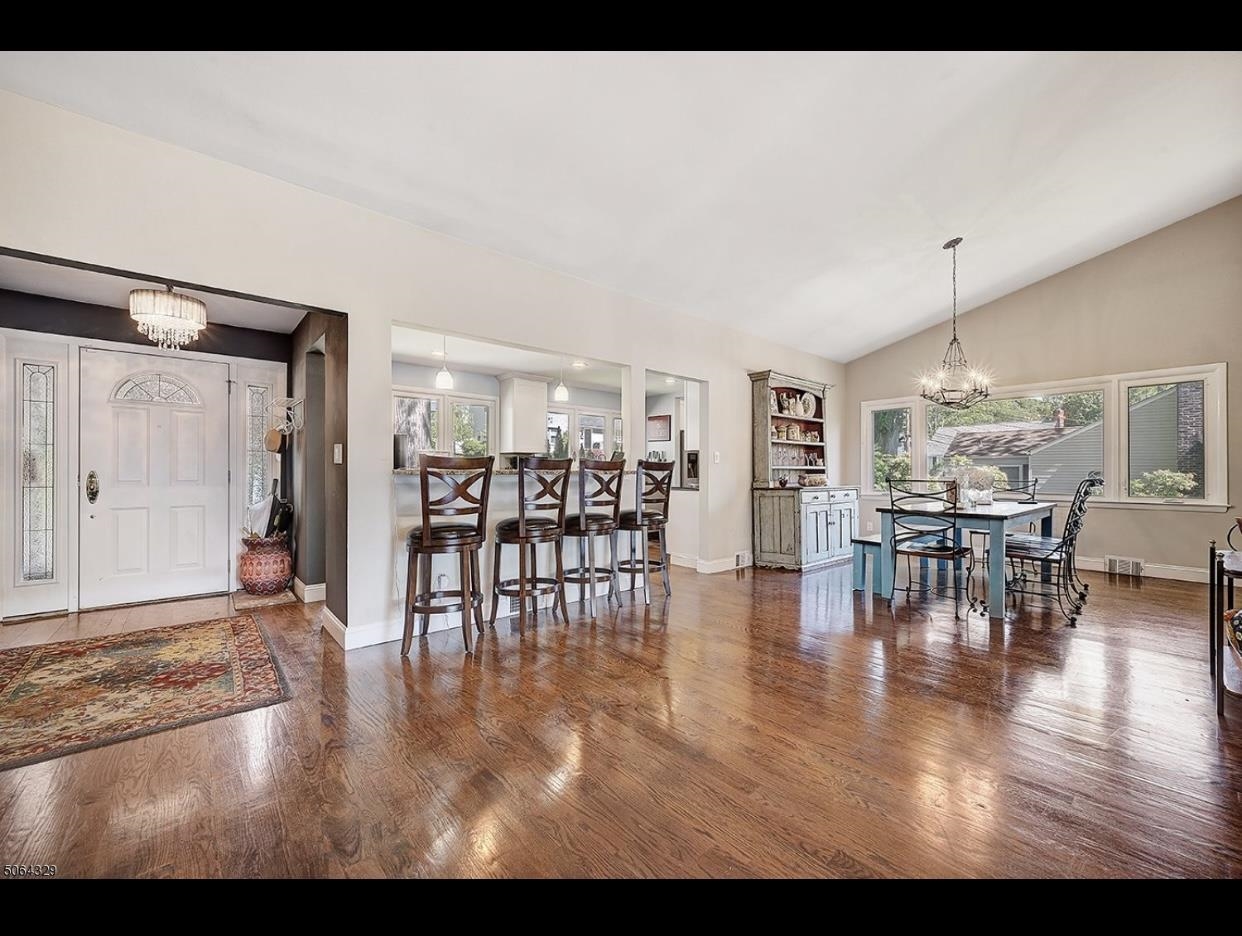 This exceptional split-level home offers an open-concept layout designed for effortless entertaining, highlighted by skyline views and dramatic architectural details. The living room impresses with soaring ceilings, while the sunken den with a fireplace creates a warm, inviting retreat. Step outside to a two-tiered deck with sweeping views, perfect for hosting or unwinding, and enjoy seamless access to NYC transportation. The home features a renovated kitchen with granite countertops, stainless steel appliances, and a breakfast bar ideal for casual dining. Rich oak floors run throughout, complemented by oversized picture windows that flood the rear of the home with natural light and stunning vistas. The second level offers two updated full baths and generous closet space throughout. On the lower level, a walk-out recreation or playroom with a full bath provides flexible living options for guests, work, or leisure. Located in the coveted Upper Gregory neighborhood, this home sits on one of the area’s most picturesque streets, just steps to the jitney for the South Orange train station and only one block from the NYC bus.