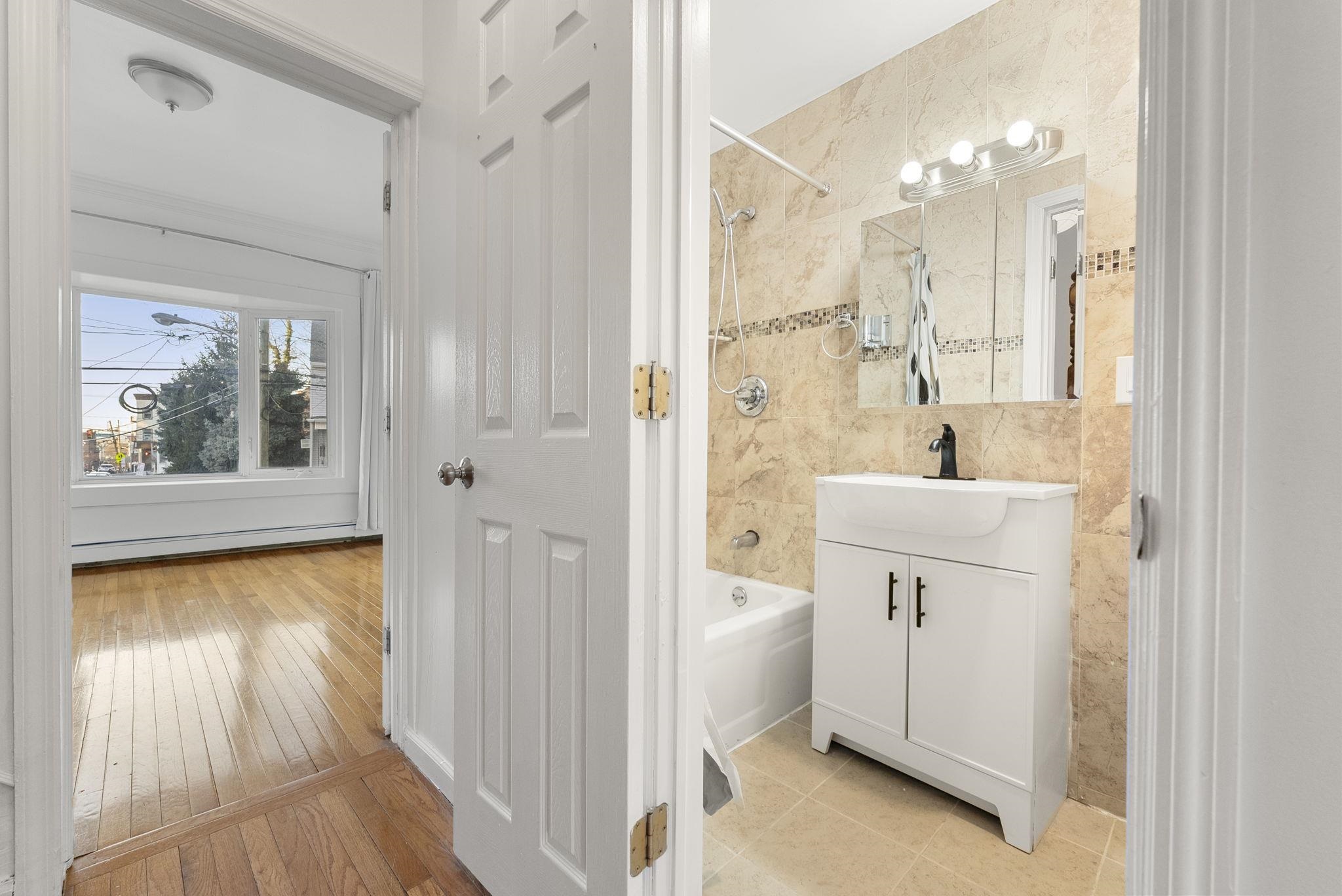 Spacious 4BR Home Near PATH & NYC Access! This bright and freshly updated 3-level single-family home offers 4 bedrooms, 3 bathrooms, and approx. 1,482 sq. ft. of comfortable living space. Enjoy a welcoming layout with open living and dining areas, a well-equipped kitchen with pantry, and newly installed vinyl plank flooring on the first level. Each bedroom features ample closet space, and natural light fills the home throughout the day. Includes mini splits installed for cooling, baseboard heating, washer/dryer room, shared backyard, one designated parking spot, plus a great Wi-Fi system (gigabit FIOS) included! Located just minutes from Journal Square PATH, bus lines, and Newport Mall—perfect for commuters and city lovers alike.