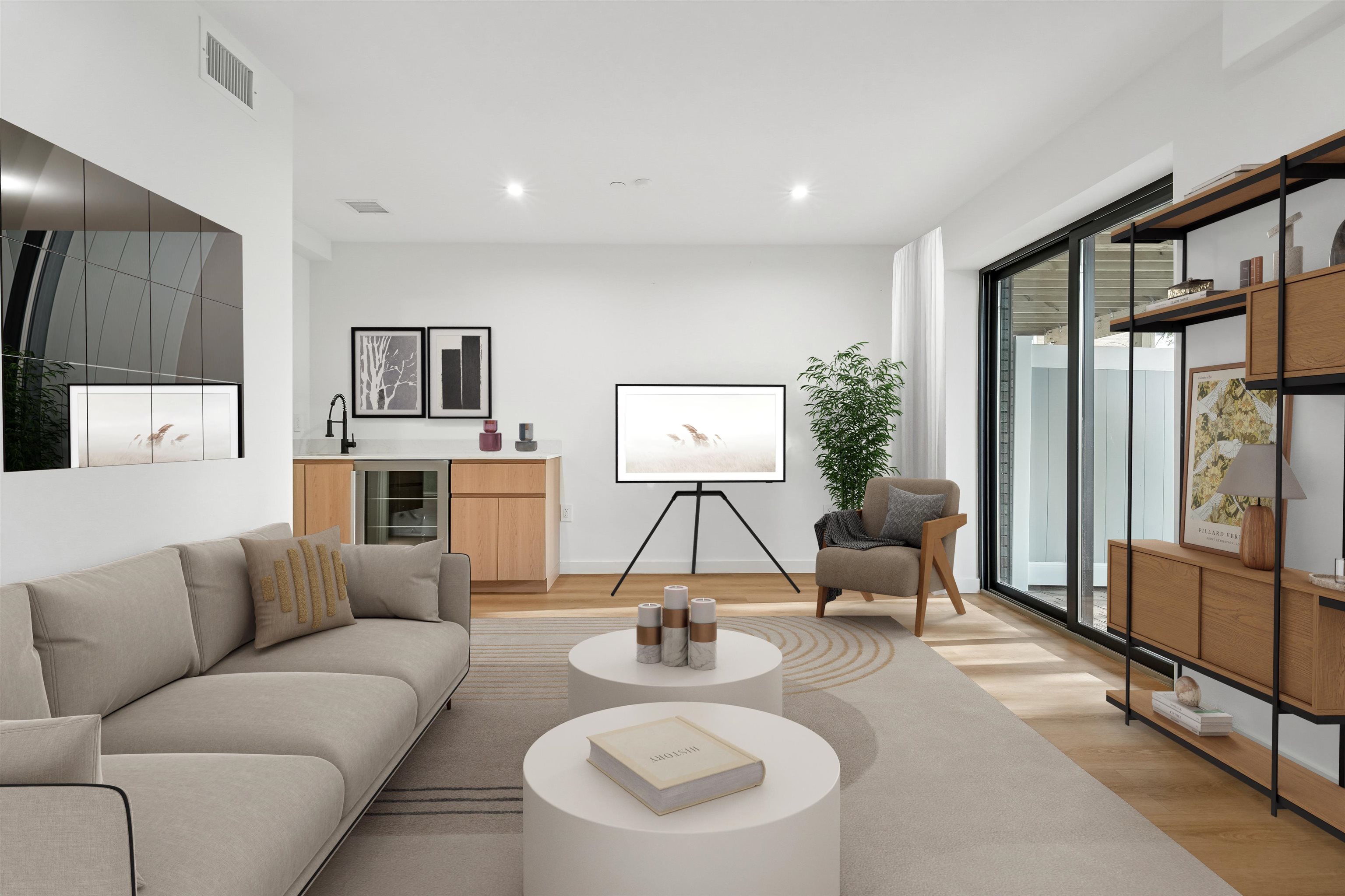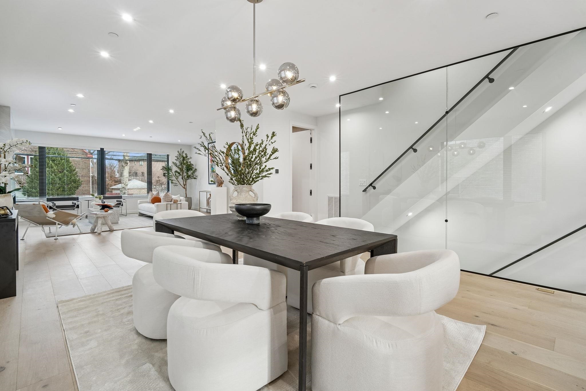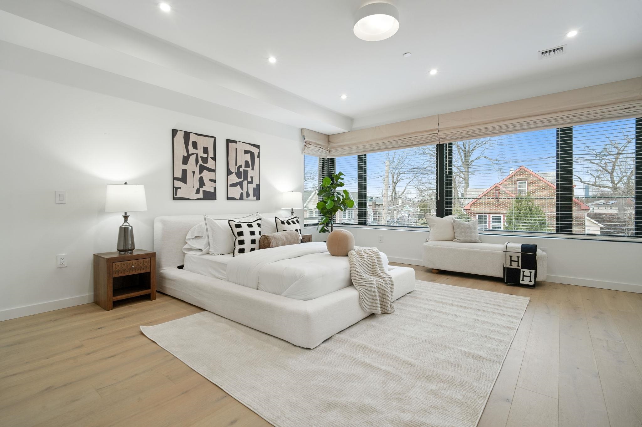 Right out of Architectural Digest! Stunning 4 bedroom (optional 5th), 4.5 bath, executive townhome by luxury builder Silverline. Completed in 2024, this showstopper residence is unmatched in size, design, finish, and luxury. 4 floors of grand, open concept spaces, framed by Andersen, architectural series windows, filling the home with brilliant light. Enter to gleaming, wide plank, white oak flooring throughout, sky-high ceilings, designer/recessed lighting, and bespoke finishes. Your first level is perfect for extended family and visitors with their own living room, morning kitchen with wet bar and beverage refrigeration, bedroom, luxurious full bath, and access to the fenced, private backyard and custom paver patio. One flight up, the main living level features a spectacular chef’s grade kitchen with top of the line appliances by Fisher & Paykel, including dual drawer dishwasher, paneled french door refrigerator, separate wine refrigeration, drawer microwave, vented XO range hood, pot filler, abundant custom cabinetry with cove uplighting, and one of the largest Quartz clad islands imaginable! This entire open concept floor includes a huge balcony for alfresco dining, dining area for 12, powder room with under lit floating vanity, and a gorgeous living room with linear fireplace and stone architectural wall. Upstairs, the primary suite is nothing less than a sanctuary…..king-sized proportions, custom closets, and a massive, spa-bath with under lit vanities, heated floors, freestanding soaking tub, frameless glass two-person shower, and Gerberit wall hung toilet. Two other beautiful bedrooms, another full spa bath, and laundry room complete with wet sink round out this level. The top floor of the home is an entirely magical space……open loft family room (or optional 5th bedroom), Carrara quartz bar with sink and beverage refrigeration, custom full spa bath, and an incredible outdoor sky terrace to complete the luxury. 3 zone central A/C, floating hinge solid-core doors, complete home automation, full security system with CCTV and motorized steel security curtains, reverse osmosis and water softener, central vacuum system, whole home fire suppression with sprinkers, 3 car parking with garage, and no hoa fees complete the picture. You are minutes from all the fabulous dining and shopping on Anderson Ave and River Rd, while the GWB is mere minutes away. Truly an unmatched lifestyle!
