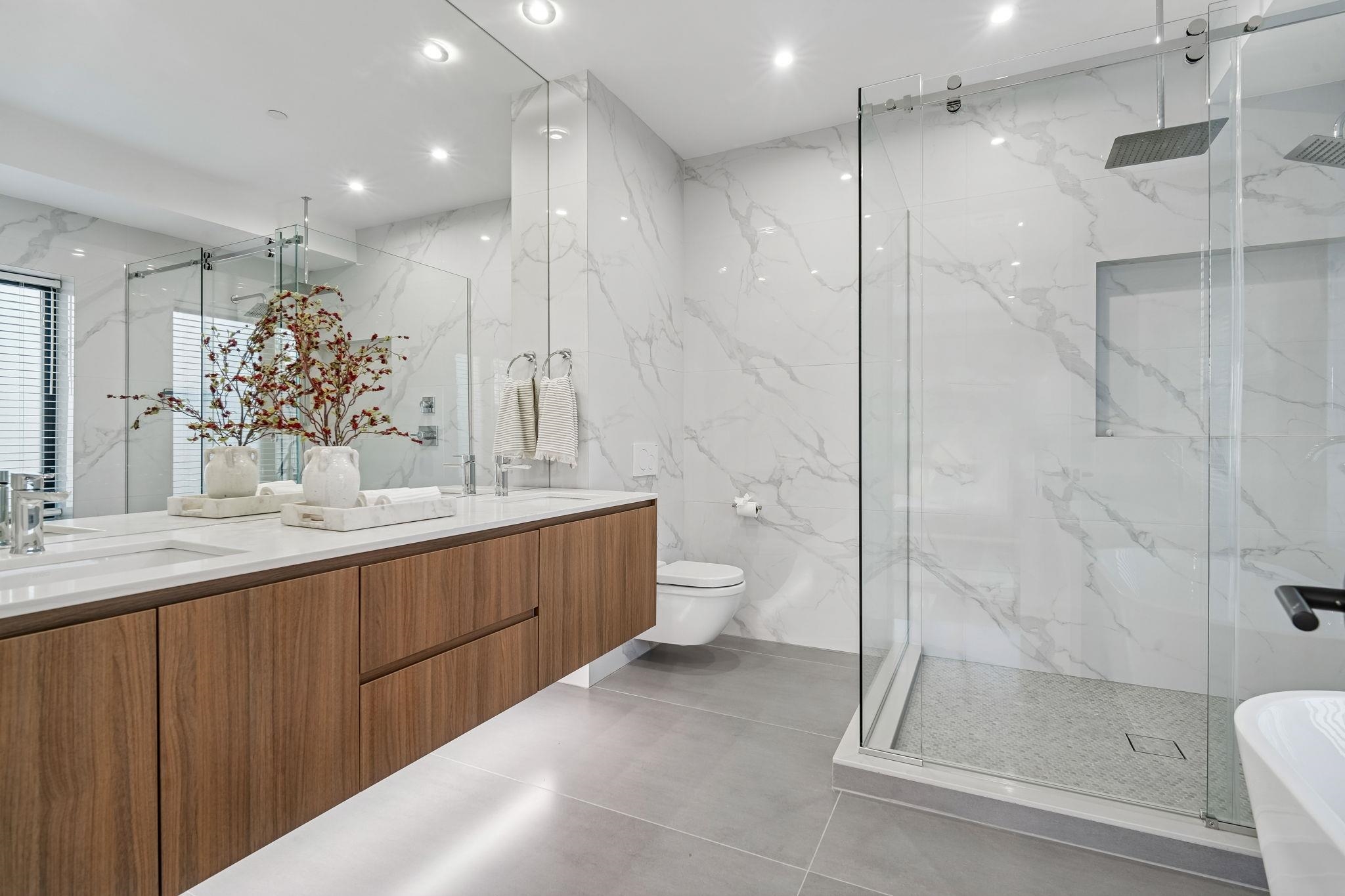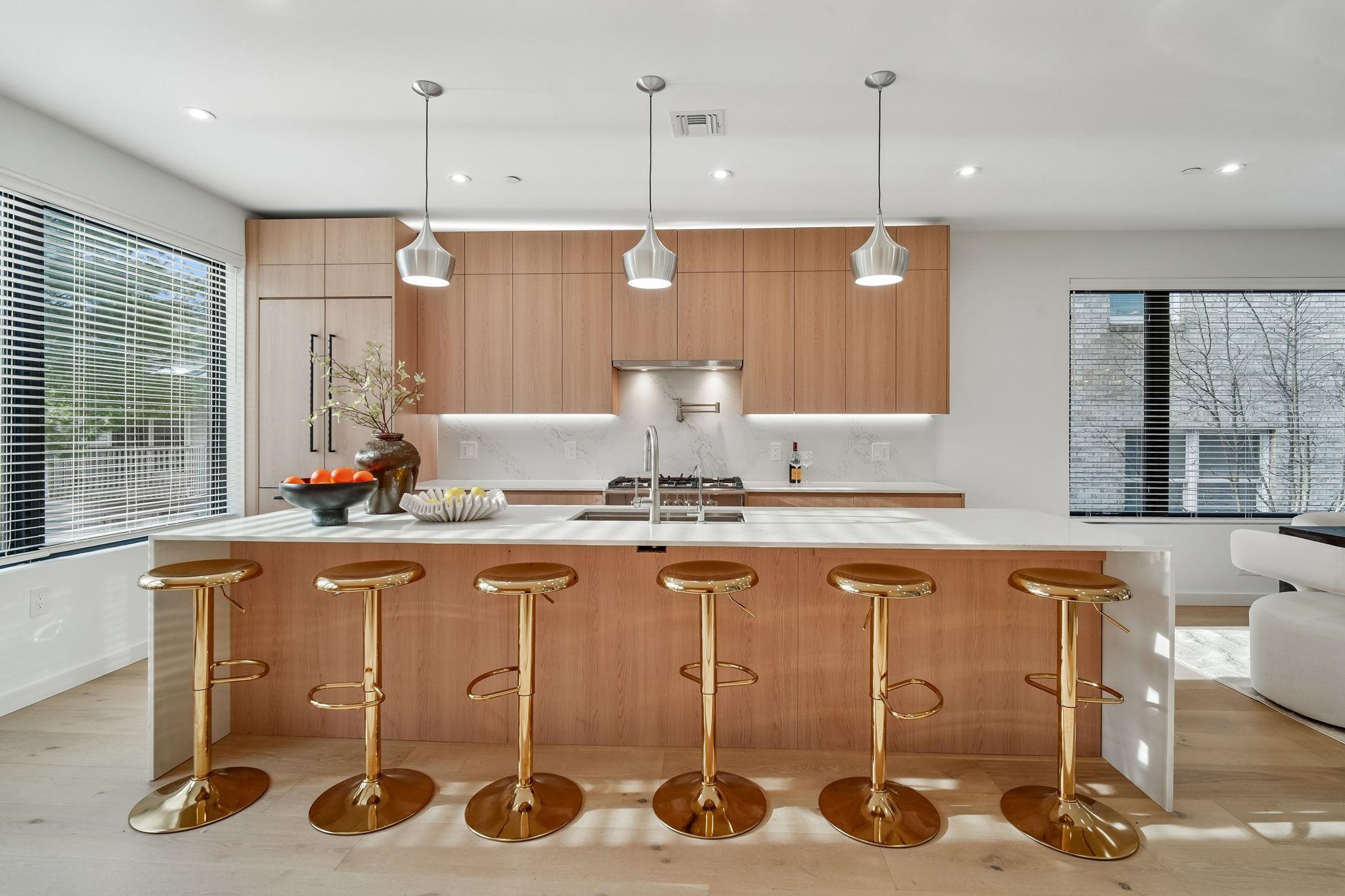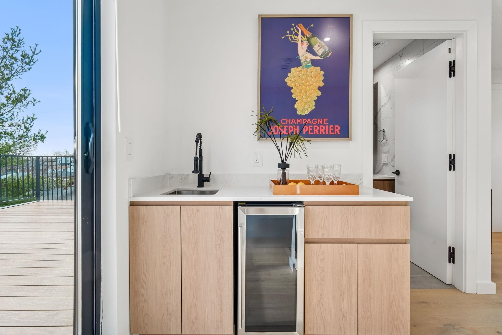 Right out of Architectural Digest! Stunning 4 bedroom (optional 5th), 4.5 bath, executive townhome by luxury builder Silverline. Completed in 2024, this showstopper residence is unmatched in size, design, finish, and luxury. 4 floors of grand, open concept spaces, framed by Andersen, architectural series windows, filling the home with brilliant light. Enter to gleaming, wide plank, white oak flooring throughout, sky-high ceilings, designer/recessed lighting, and bespoke finishes. Your first level is perfect for extended family and visitors with their own living room, morning kitchen with wet bar and beverage refrigeration, bedroom, luxurious full bath, and access to the fenced, private backyard and custom paver patio. One flight up, the main living level features a spectacular chef’s grade kitchen with top of the line appliances by Fisher & Paykel, including dual drawer dishwasher, paneled french door refrigerator, separate wine refrigeration, drawer microwave, vented XO range hood, pot filler, abundant custom cabinetry with cove uplighting, and one of the largest Quartz clad islands imaginable! This entire open concept floor includes a huge balcony for alfresco dining, dining area for 12, powder room with under lit floating vanity, and a gorgeous living room with linear fireplace and stone architectural wall. Upstairs, the primary suite is nothing less than a sanctuary…..king-sized proportions, custom closets, and a massive, spa-bath with under lit vanities, heated floors, freestanding soaking tub, frameless glass two-person shower, and Gerberit wall hung toilet. Two other beautiful bedrooms, another full spa bath, and laundry room complete with wet sink round out this level. The top floor of the home is an entirely magical space……open loft family room (or optional 5th bedroom), Carrara quartz bar with sink and beverage refrigeration, custom full spa bath, and an incredible outdoor sky terrace to complete the luxury. 3 zone central A/C, floating hinge solid-core doors, complete home automation, full security system with CCTV and motorized steel security curtains, reverse osmosis and water softener, central vacuum system, whole home fire suppression with sprinkers, 3 car parking with garage, and no hoa fees complete the picture. You are minutes from all the fabulous dining and shopping on Anderson Ave and River Rd, while the GWB is mere minutes away. Truly an unmatched lifestyle!