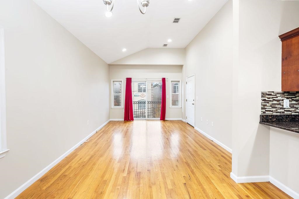This inviting 3-bedroom, 2-bathroom apartment offers 1300 square feet of comfort. Bright living room with vaulted ceilings. The kitchen was recently renovated, complete with stainless steel appliances and recessed lighting. Hardwood floors throughout. Perfectly situated near Pershing Field that offers swimming and ice skating in season. Shared backyard with one other unit. The home offers seamless access to New York City via nearby midtown direct bus or but to Journal Square Path station. Explore the vibrant Jersey City Heights community and make this your home today!