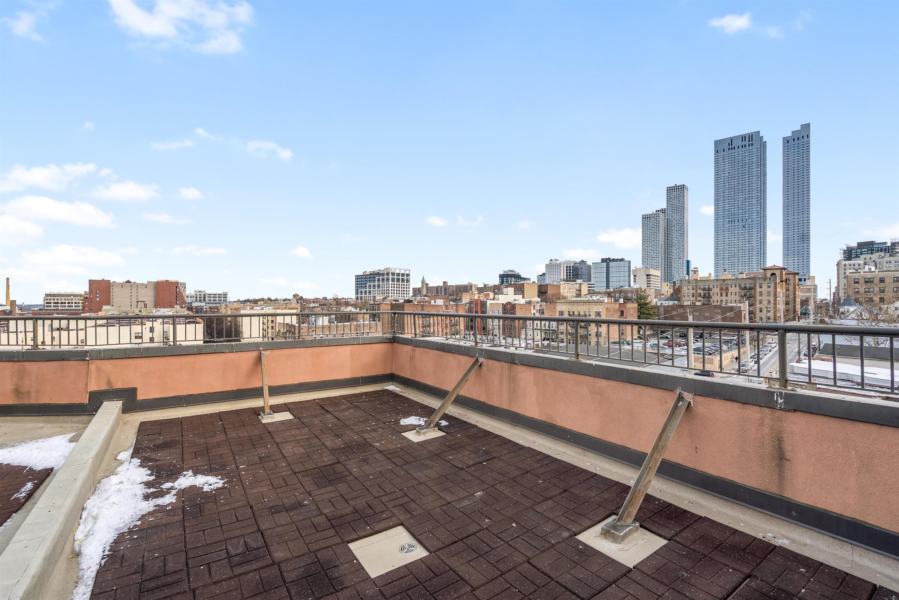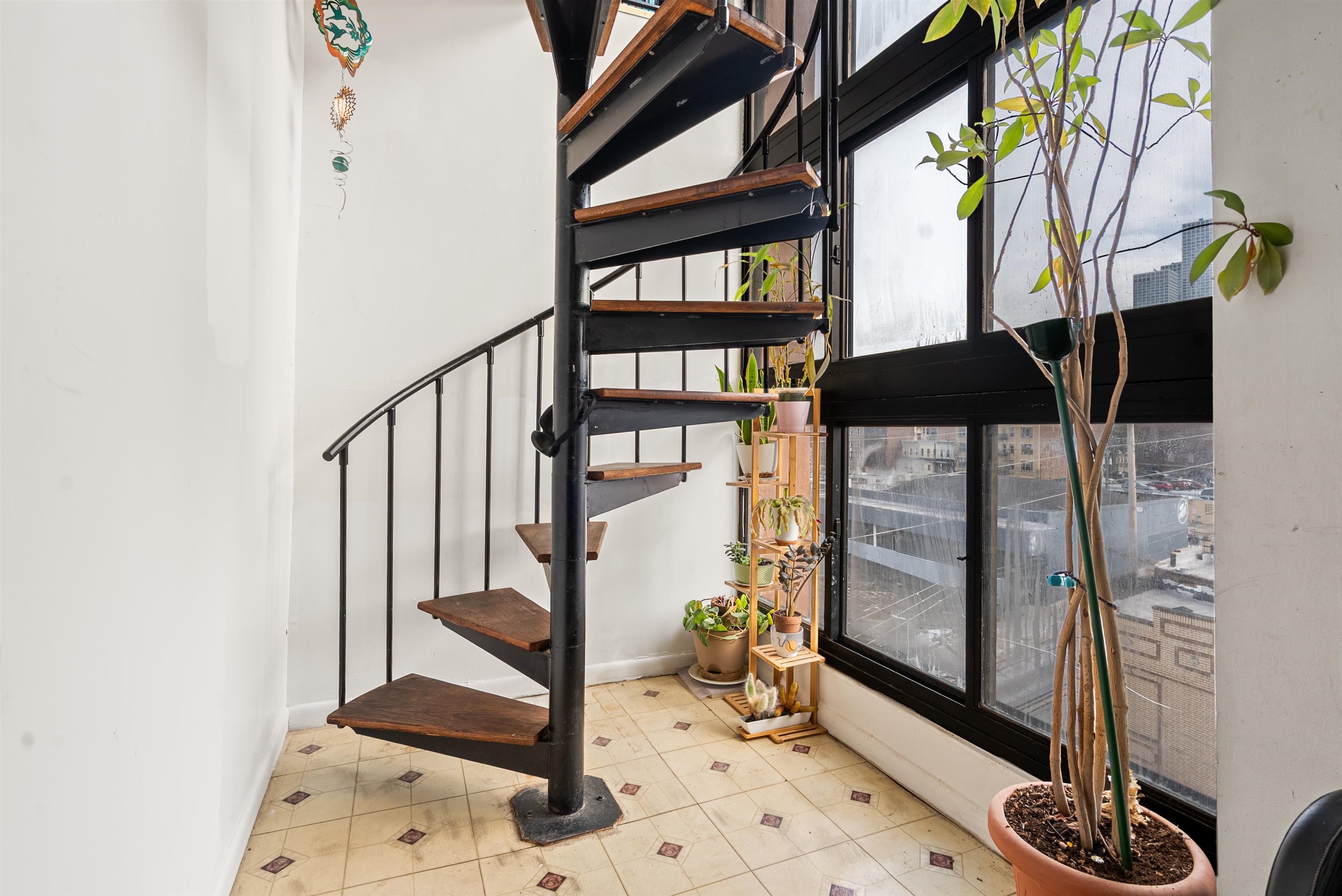 Convenience, outdoor space, and location come together in this well-laid-out 2-bedroom, 1-bath condo on the 6th floor of an elevator building in Journal Square. The kitchen features a dishwasher, electric range, microwave, and refrigerator, with a large open pass-through to the dining and living area—great for everyday living and entertaining. A spiral staircase leads to your private 300 sq ft roof deck, creating an ideal extension of your living space for relaxing, hosting, or unwinding outdoors. The building offers a common laundry room on the same floor and a shared gym/fitness room for added convenience. A dedicated parking space in a secured lot is available for $170/mo. The Journal Square PATH train is just a short distance away, providing easy access to NYC, Harrison, and Newark. A rare combination of comfort, convenience, and lifestyle.
