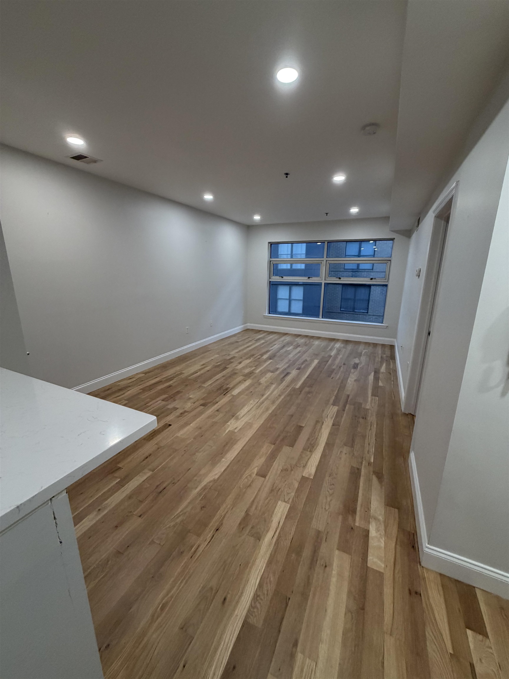 Just move in and feel right at home! This sunny, sleek, and modern south-facing one-bedroom, one-bath apartment is perfectly located near shops, dining, and offers an easy commute to NYC. Situated on the 5th floor of a well-maintained elevator building, the apartment is filled with natural light and thoughtful upgrades throughout. The newly updated kitchen features quartz countertops and an eat-in bar, ideal for casual dining or entertaining. Refinished hardwood floors enhance both the living room and bedroom, while the open-concept layout creates a seamless flow for comfortable living. Additional highlights include an in-unit washer and dryer, central air, ceiling fans, fresh paint, and abundant closet space, including a walk-in closet for ample storage. NYC bus service is conveniently located right outside, providing a 15–20 minute commute to Port Authority. Nearby parking is available for an additional fee.
