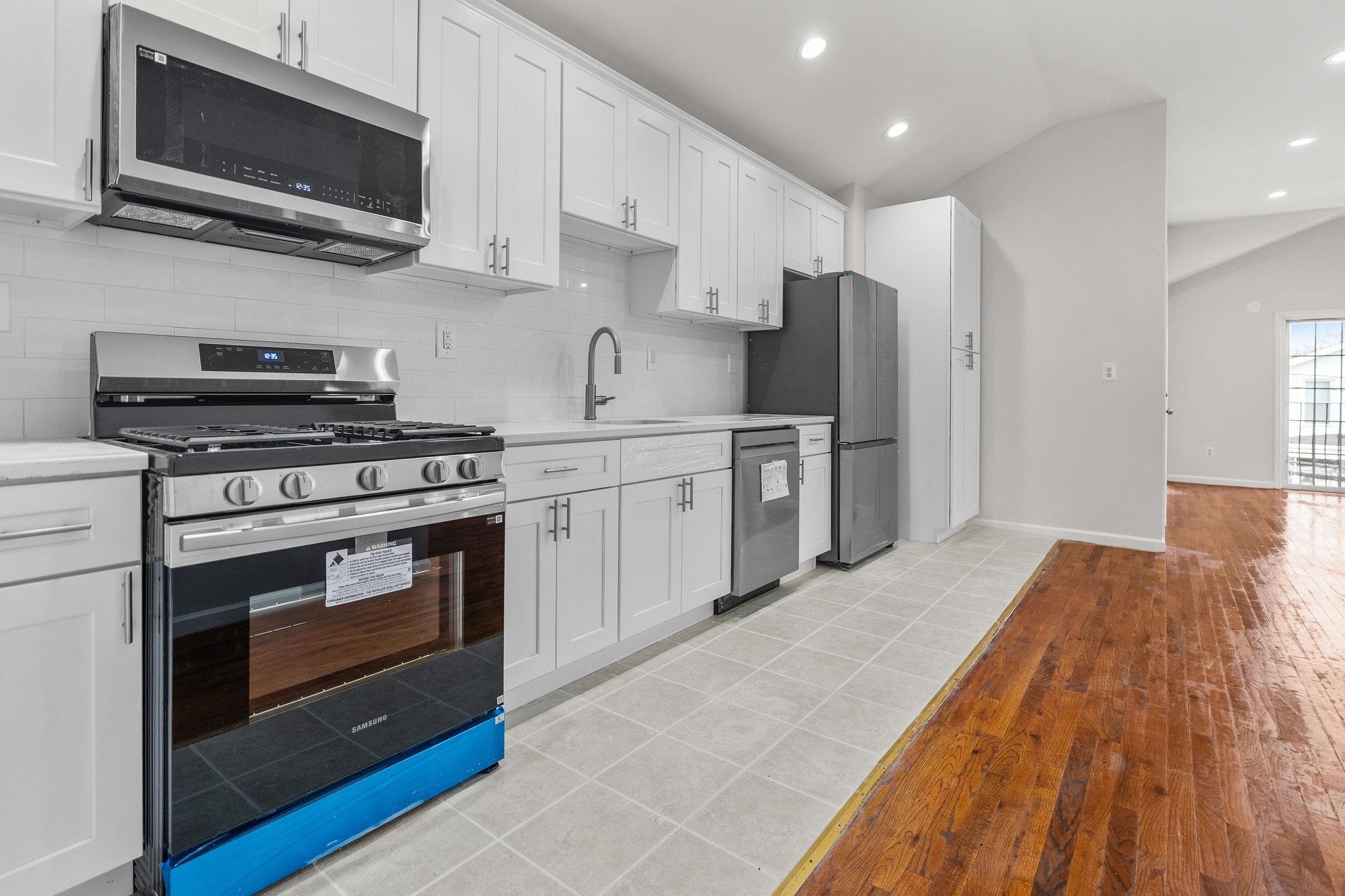 Welcome to this stunning fully renovated 1-family home offering 3 floors of living space in the heart of Bayonne! This property features 4 spacious bedrooms and 3.5 bathrooms, including a bathroom on every level for ultimate convenience. The brand-new kitchen is equipped with modern finishes and flows seamlessly into the open living and dining areas, perfect for entertaining. Enjoy gleaming hardwood floors throughout, new plumbing, and beautifully updated bathrooms. The full finished basement offers additional living space complete with a full bath—ideal for a guest suite, recreation room, or home office. Outside, this property shines with a large driveway accommodating 5+ cars plus a rare oversized 3-car garage, perfect for car enthusiasts, storage, or a workshop.