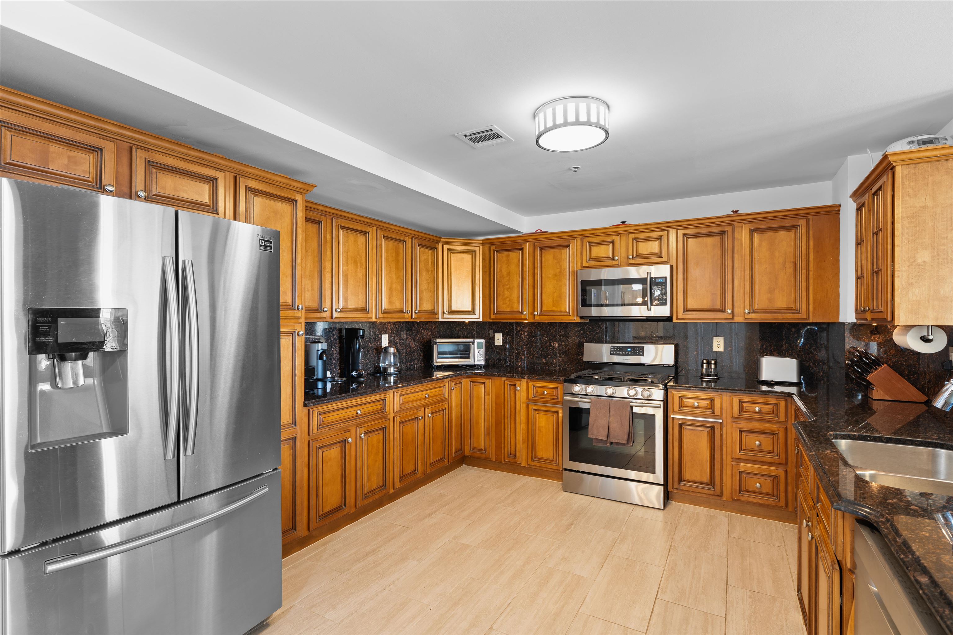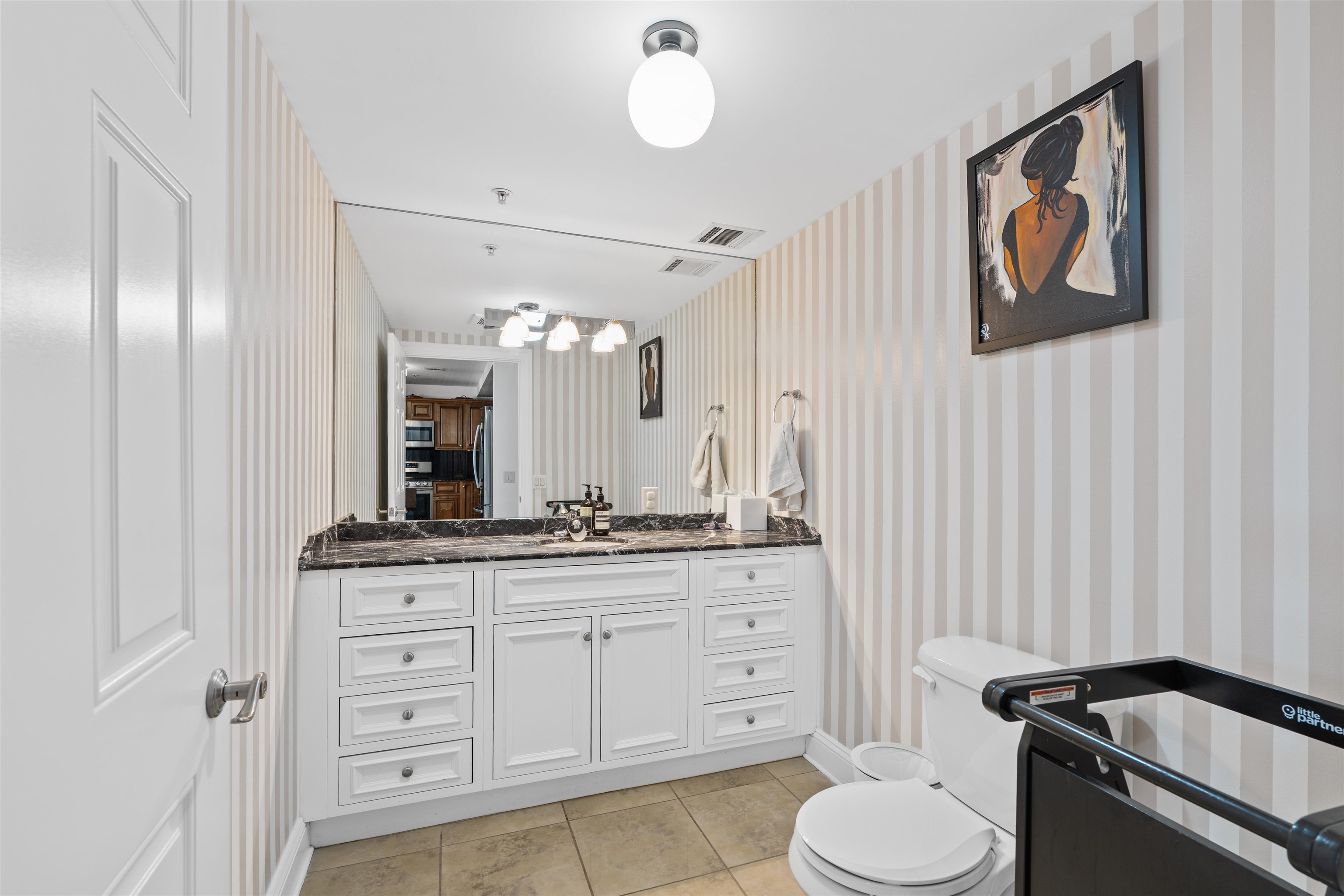 NYC COMMUTERS DREAM! LESS THEN A HALF A MILE FROM THE PATH TO NYC. ONLY A 5-7 MINUTE WALK!!Experience modern urban living in this beautifully maintained condo located in Jersey City’s desirable Journal Square neighborhood making your NYC commute effortless and more affordable then a condo in Manhatten half of the size! This newer, well-appointed building offers an elevator, key fob entry, **intercom access, mail room, and garage parking for one vehicle. Inside, the home features a bright, open layout with hardwood floors throughout the living spaces and bedrooms, complemented by newer tile (2022) and freshly painted bathrooms. The spacious kitchen is a chef’s dream, complete with granite countertops, hardwood cabinetry, and a full suite of Samsung stainless steel appliances (2019). The oversized powder room adds convenience, while the in-unit Whirlpool front-load washer and dryer (2019) make daily life even easier. The large primary suite boasts dual closets and an elegant ensuite bathroom with a soaking tub and glass shower door. The second bedroom offers a double-wide closet, and the third bedroom includes a generous walk-in closet. A secondary full bathroom features stylish tile and granite finishes, tying together the home’s contemporary appeal. Additional highlights include a hot water heater (2019) and a central vacuum system for added comfort and convenience. Move right in and enjoy modern comfort, secure amenities, and unbeatable proximity to all that Journal Square and downtown Jersey City have to offer.