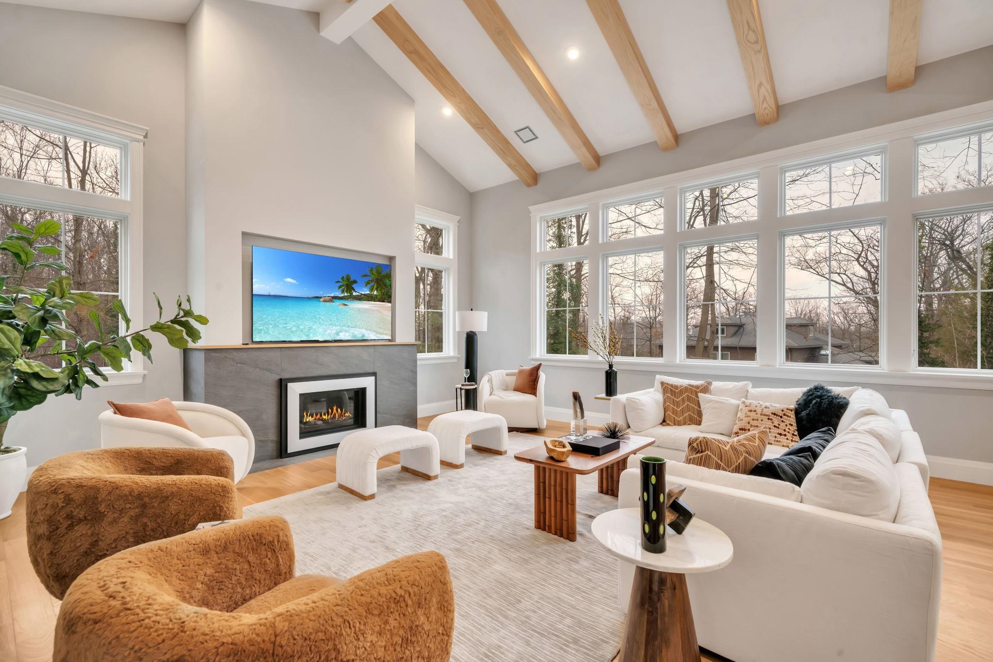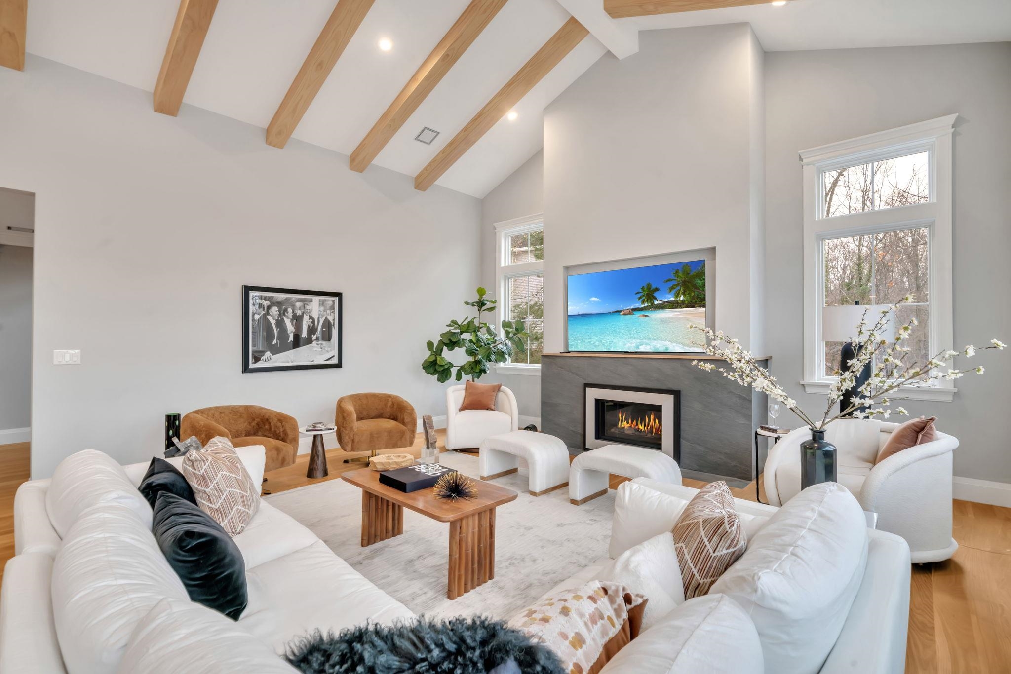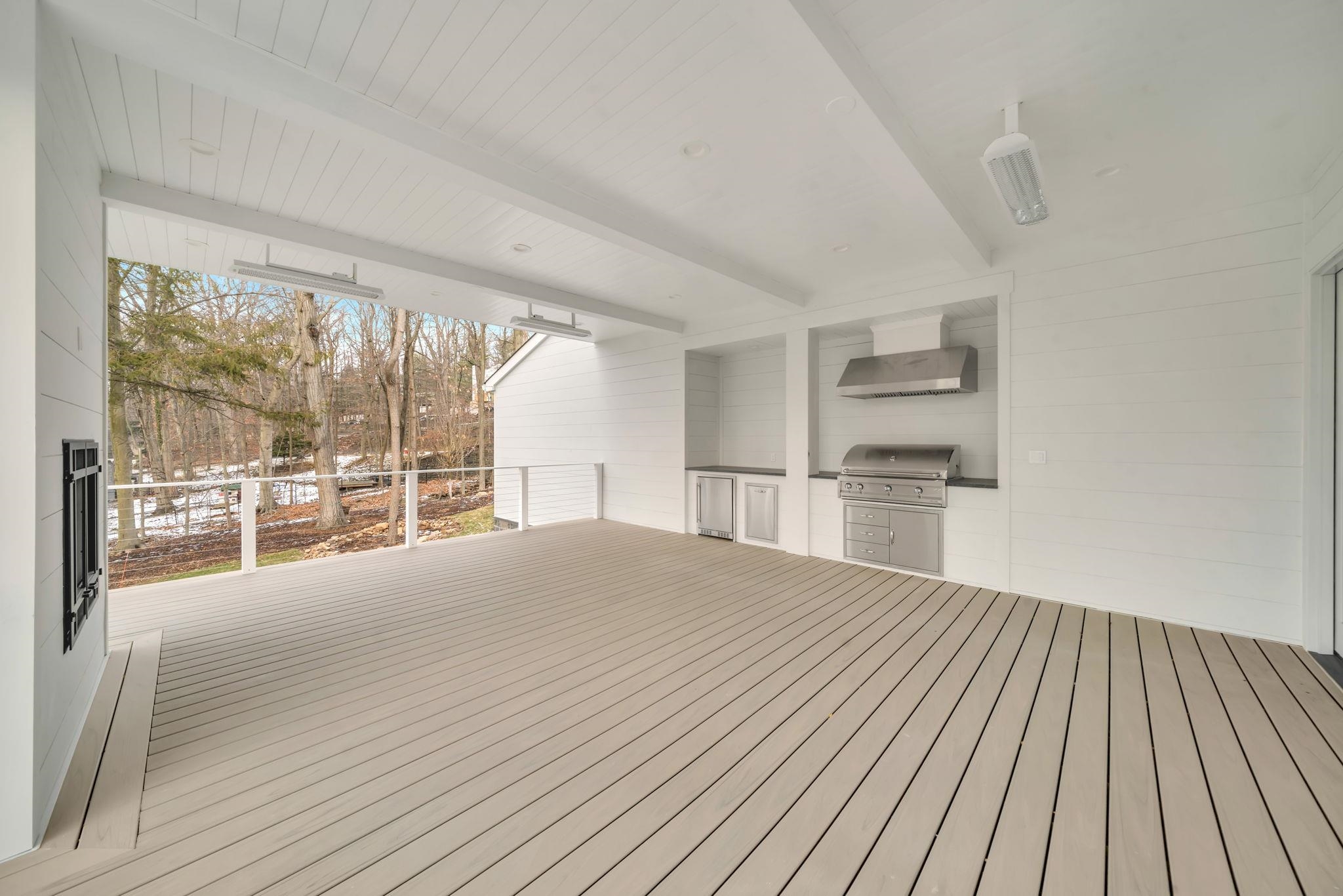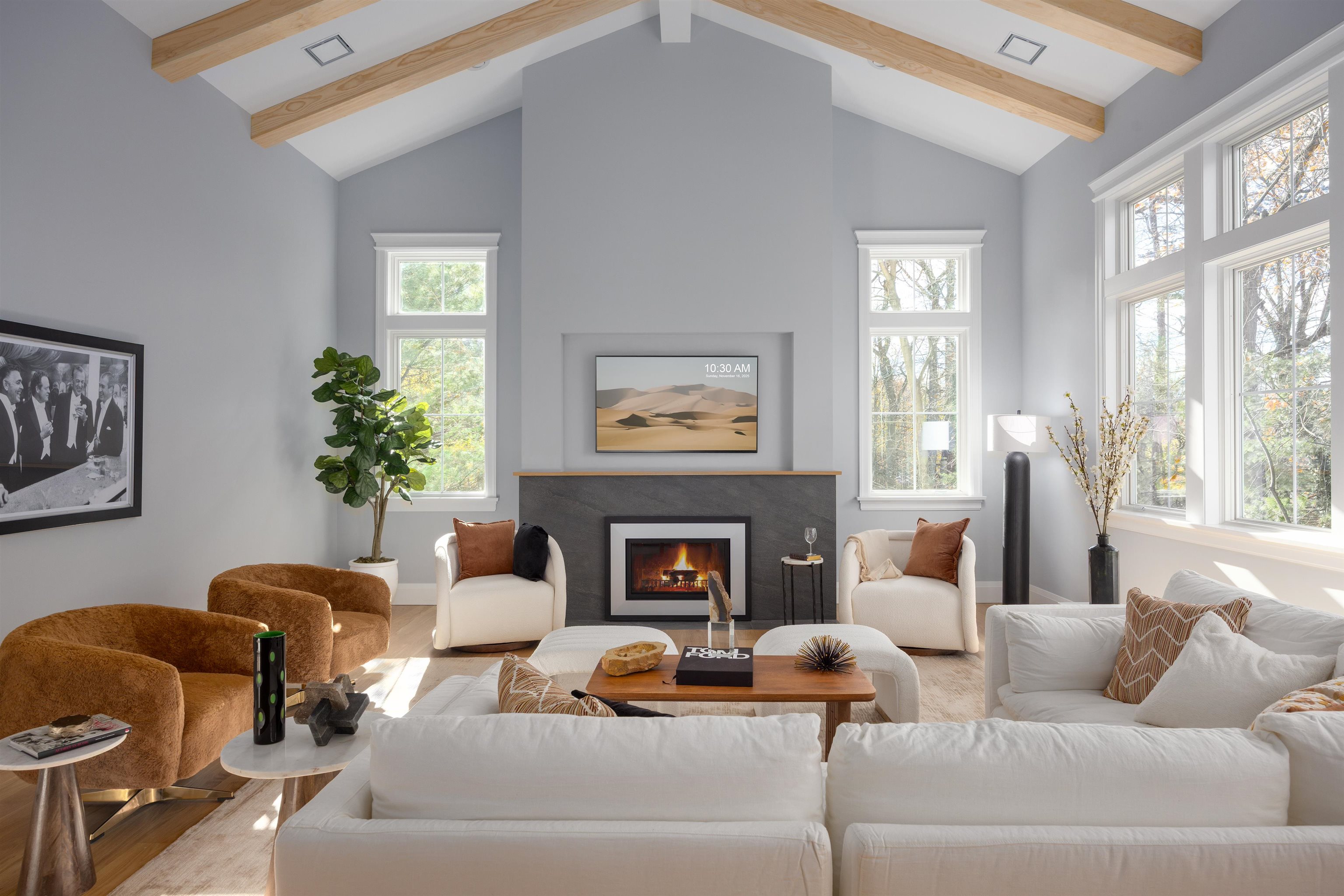 Exceptional new construction just minutes from NYC, offering approx. 9,600 sq ft of masterfully designed living space across three finished levels. Thoughtfully built to balance everyday function with luxury living, this home features cathedral ceilings, exposed beams, custom millwork, and wide-plank white oak floors throughout. The main level centers around a light-filled open floor plan anchored by a dramatic great room with fireplace and 7-ft windows with transoms. The dream kosher kitchen stuns with dual 12-ft quartz islands (prep and serving), double sinks, double ovens, two integrated refrigerators, and a custom walk-in pantry with full-height cabinetry and shelving. The adjacent dining area is elevated by a showstopper wet bar, featuring warm wood trim and accent lighting—ideal for entertaining with style. Just off the kitchen, a covered outdoor living room with built-in kitchen, fireplace, and overhead heaters offers year-round comfort. Stairs lead to a flat, private backyard with ample room to add a pool—perfect for future outdoor living expansion. A private en suite bedroom, formal office, and a mudroom designed to make your friends jealous round out the main level. The second level features five en suite bedrooms, including a palatial primary suite with vaulted ceilings, gas fireplace, radiant spa bath, custom walk-in closet with center island, and a private walk-out balcony. A large laundry room with double washer/dryer units and custom cabinetry adds smart convenience. The walk-out lower level expands the living space with oversized windows and direct yard access. It includes an additional en suite bedroom, half bath, multiple recreation spaces, and a casual lounge bar with island seating—perfect for game nights or gatherings. The 3-car garage features 12-ft ceilings ideal for car lifts and two EV charger locations—perfect for auto enthusiasts. Finished in Hardie board and stone with Pella windows, smart home systems, and a whole house generator, this property is a rare blend of luxury, lifestyle, and layout—designed for how you truly live.