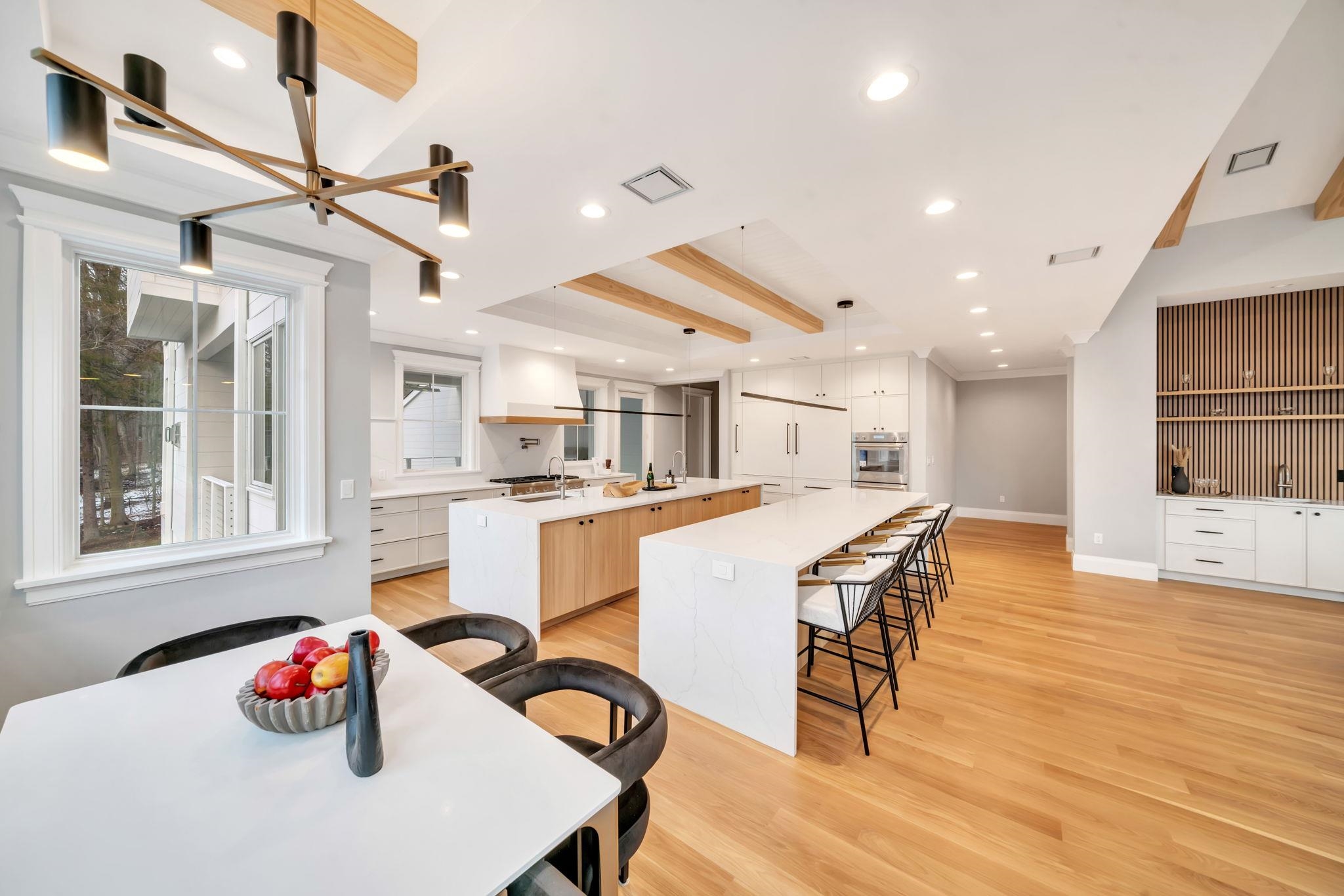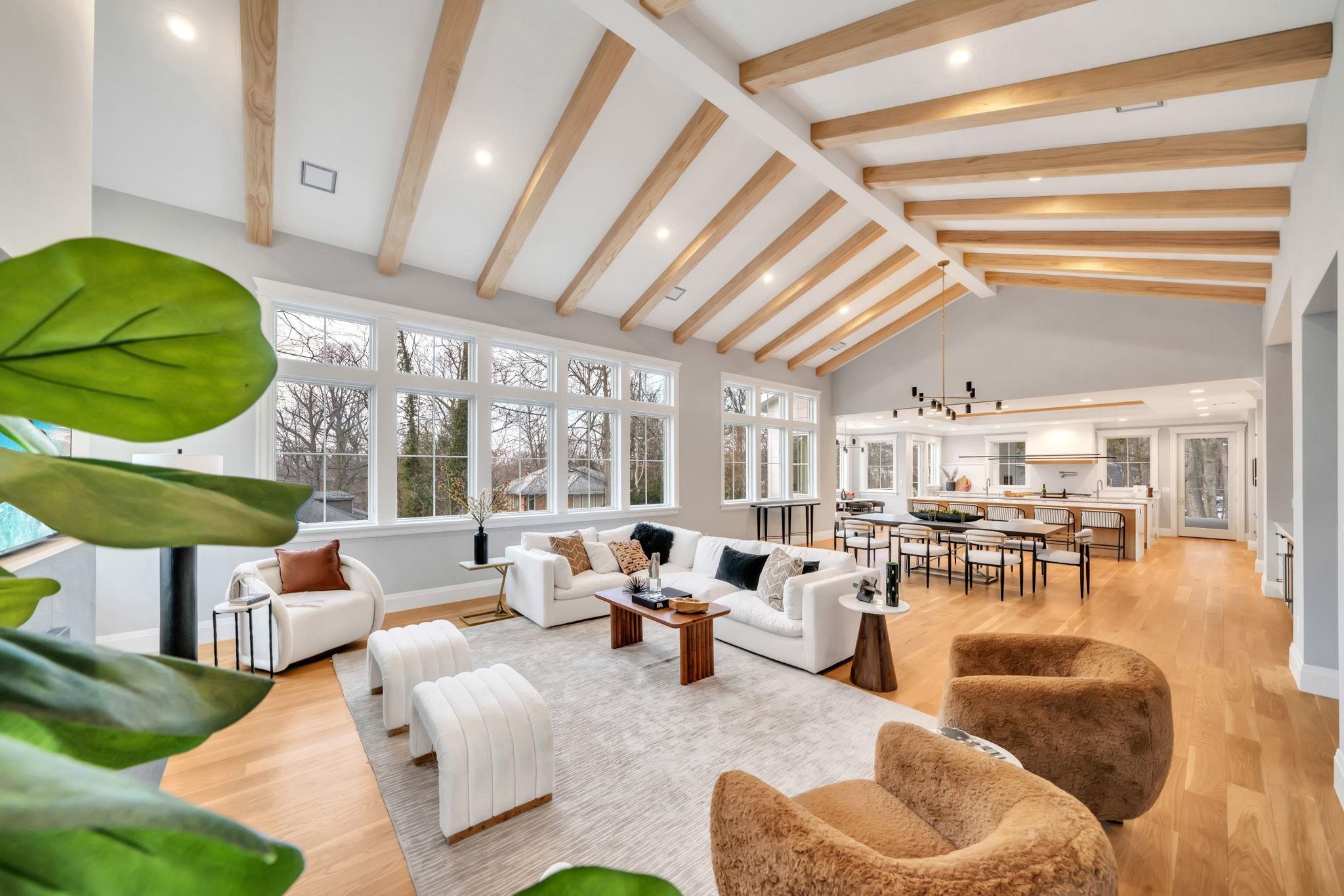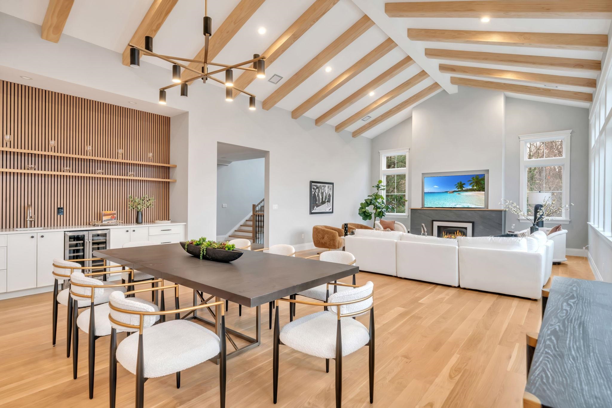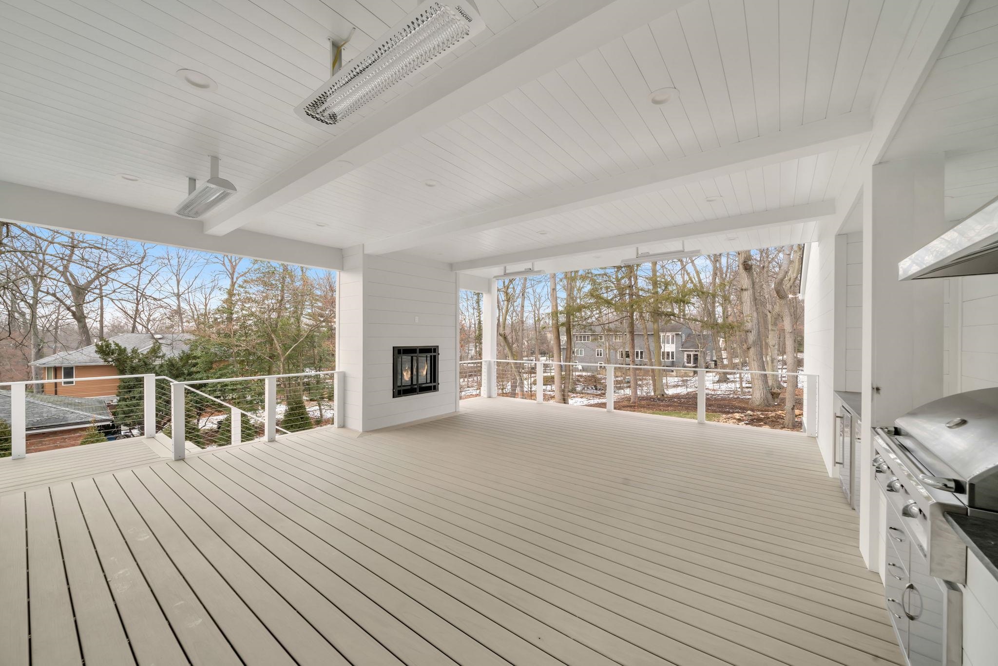 Exceptional new construction just minutes from NYC, offering approx. 9,600 sq ft of masterfully designed living space across three finished levels. Thoughtfully built to balance everyday function with luxury living, this home features cathedral ceilings, exposed beams, custom millwork, and wide-plank white oak floors throughout. The main level centers around a light-filled open floor plan anchored by a dramatic great room with fireplace and 7-ft windows with transoms. The dream kosher kitchen stuns with dual 12-ft quartz islands (prep and serving), double sinks, double ovens, two integrated refrigerators, and a custom walk-in pantry with full-height cabinetry and shelving. The adjacent dining area is elevated by a showstopper wet bar, featuring warm wood trim and accent lighting—ideal for entertaining with style. Just off the kitchen, a covered outdoor living room with built-in kitchen, fireplace, and overhead heaters offers year-round comfort. Stairs lead to a flat, private backyard with ample room to add a pool—perfect for future outdoor living expansion. A private en suite bedroom, formal office, and a mudroom designed to make your friends jealous round out the main level. The second level features five en suite bedrooms, including a palatial primary suite with vaulted ceilings, gas fireplace, radiant spa bath, custom walk-in closet with center island, and a private walk-out balcony. A large laundry room with double washer/dryer units and custom cabinetry adds smart convenience. The walk-out lower level expands the living space with oversized windows and direct yard access. It includes an additional en suite bedroom, half bath, multiple recreation spaces, and a casual lounge bar with island seating—perfect for game nights or gatherings. The 3-car garage features 12-ft ceilings ideal for car lifts and two EV charger locations—perfect for auto enthusiasts. Finished in Hardie board and stone with Pella windows, smart home systems, and a whole house generator, this property is a rare blend of luxury, lifestyle, and layout—designed for how you truly live.