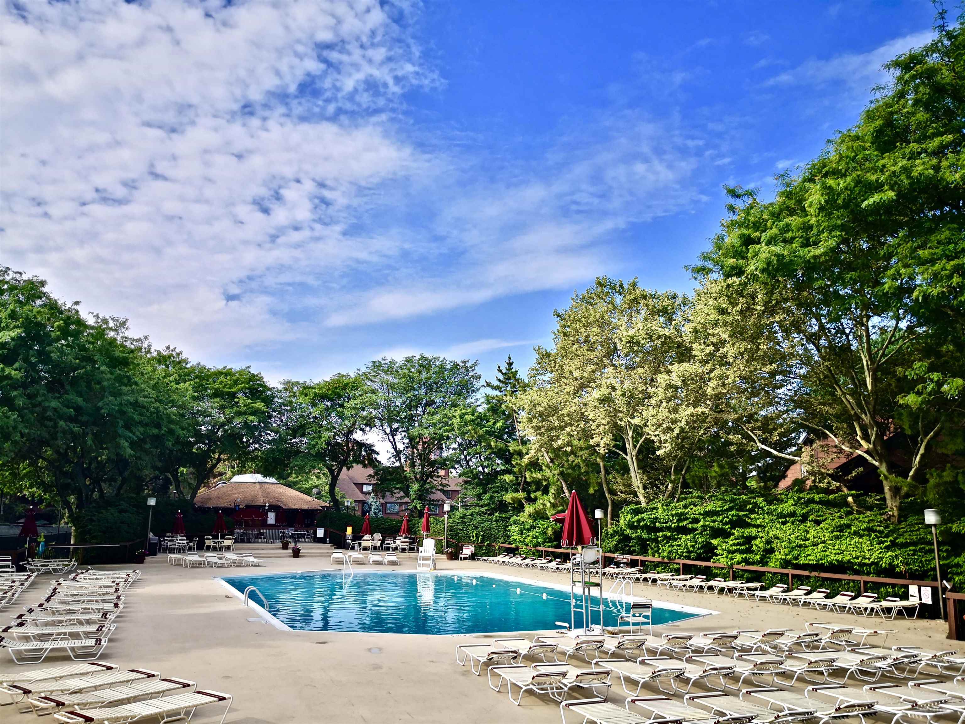 Renovated and spacious 2-bedroom, 2-bath simplex in Harmon Cove. The living room features high ceiling, a wood-burning fireplace, and a balcony overlooking the garden. The upgraded kitchen includes stainless steel appliances, and the dining room is conveniently located right off the kitchen. The bright primary bedroom offers a walk-in closet and a primary bath with an updated vanity. The large guest bedroom is complemented by an updated guest bath featuring a tub, custom-designed tiles and the laundry closet with both washer and dryer. Hardwood flooring, recessed lighting, and central heating and cooling. Enjoy one-floor living, ample storage, abundant sunlight, and a private storage room in the carport plus two covered parking spaces. Community amenities include 24-hour security, tennis/pickleball/basketball courts, a marina, pools, playground, jogging trails, and convenient access to buses, schools, the train, and NYC (NJ Transit Bus 129, 329). Rent includes amenities, parking, water, landscaping, snow removal, and garbage removal.