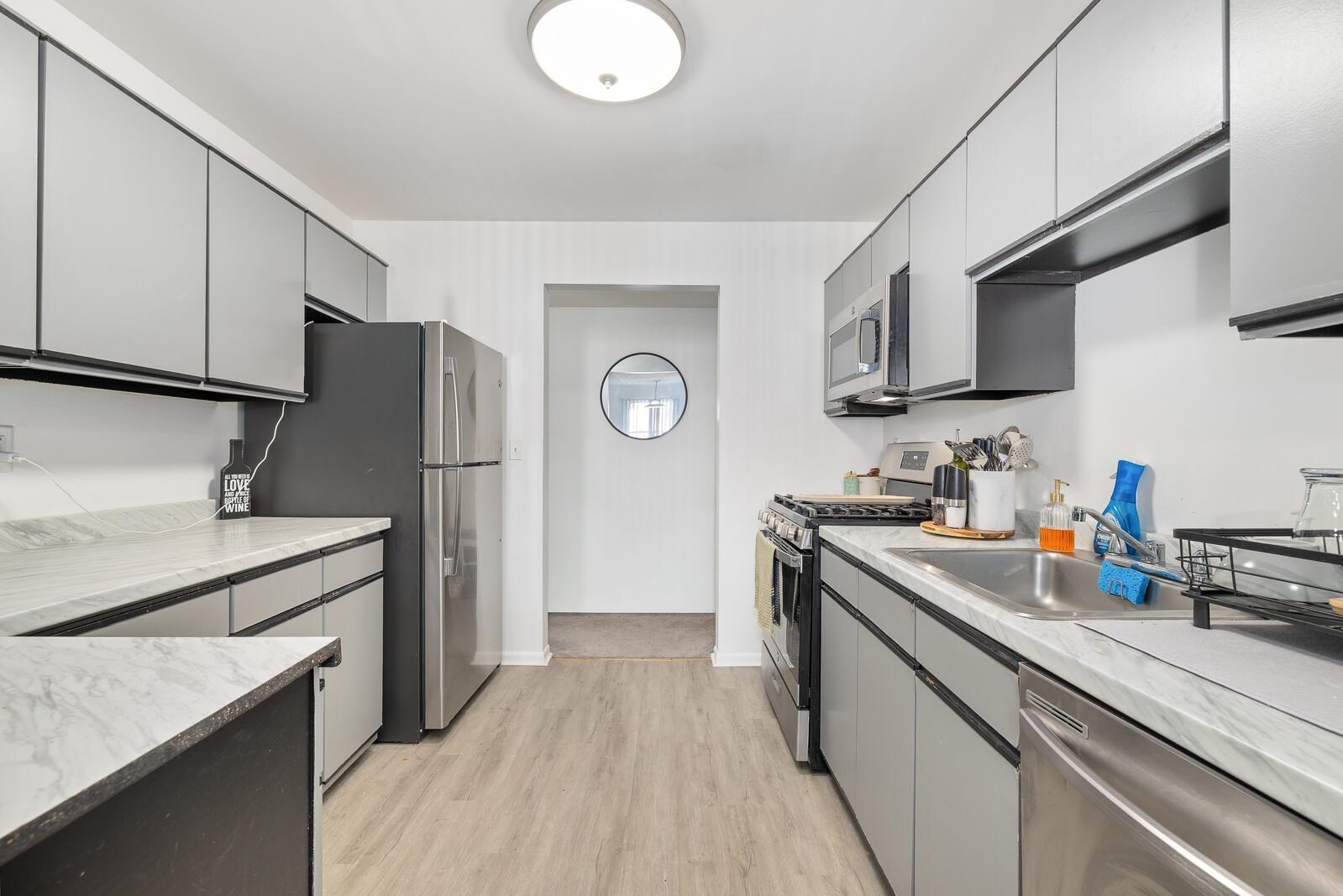 Welcome home to this beautifully updated 1-bedroom, 1-bathroom apartment offering a bright and spacious layout. Natural light fills every corner, highlighting the fresh finishes and open-concept design. The living area provides plenty of room for relaxing or entertaining, while the modern kitchen features ample cabinet space and updated appliances. The large bedroom comfortably fits a queen or king bed with room to spare, and the full bathroom has been tastefully refreshed for a clean, contemporary feel. Located in a quiet, convenient Secaucus neighborhood, this apartment offers easy access to NYC transportation, shopping, and dining. Perfect for commuters or anyone seeking a stylish and comfortable place to call home.