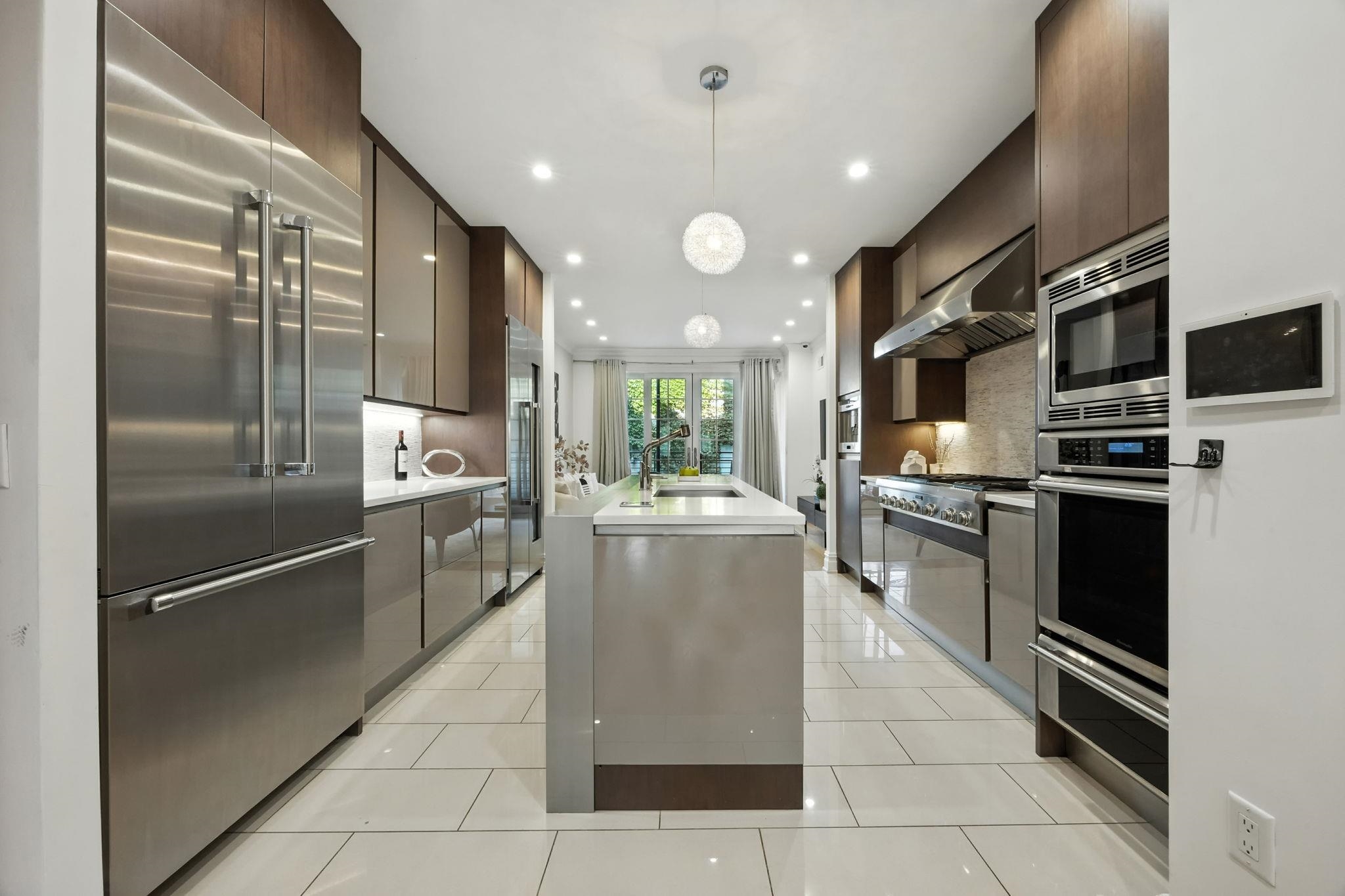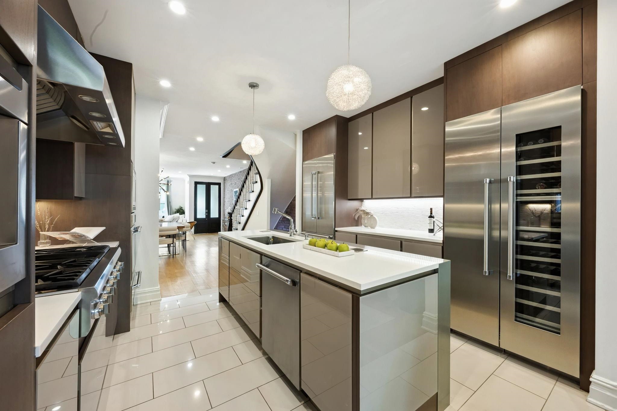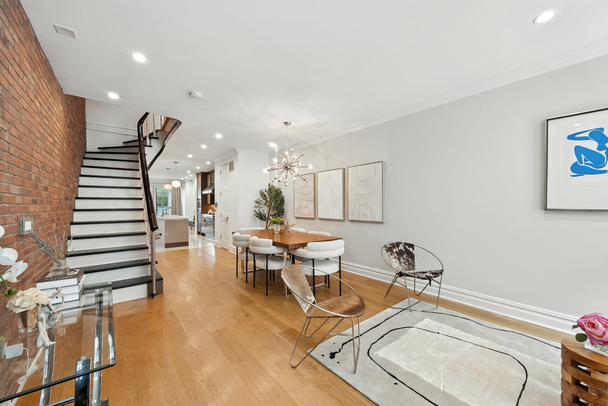 This is the brownstone you MUST come see to appreciate, photos do not do it justice! Experience luxury living at its finest with this magnificent five-story brownstone, perfectly positioned on one of Hoboken’s most coveted blocks. Complete with a private garage with a legal apartment above perfect for additional income, guests, au pair, or detached workspace. This residence combines historic character with modern luxury. Thoughtfully expanded in 2016 with a four-story addition, the home offers an abundance of beautifully designed living space. Inside, you’ll find 6 spacious bedrooms, 2 flexible dens, and 6.5 spa-like bathrooms, all anchored by a custom-built patio that creates an effortless indoor-outdoor lifestyle. The parlor floor is designed for gathering and entertaining, featuring an open-concept living area, formal dining space, a stunning chef’s kitchen, and a cozy family room that opens through dramatic 8-foot sliding glass doors to the landscaped patio. Elevated details, soaring ceilings, exposed brick, custom millwork, recessed lighting, and wide-plank white oak floors, enhance the bright, airy feel throughout. The gourmet kitchen impresses with sleek Porcelanosa cabinetry, a marble backsplash, porcelain tile floors, and a suite of professional-grade Thermador appliances, including a 48” gas range with griddle, triple convection oven, oversized refrigerator, wine column, freezer column, and dishwasher. A stylish powder room completes the main level. The second floor hosts two large bedrooms with en-suite baths, along with a convenient laundry room. The rear suite, with west-facing views and a double vanity bath, serves as a perfect secondary primary. The front bedroom includes its own full bath, which also connects to the hallway. The third floor is dedicated to the primary suite, a true retreat with an oversized bedroom, a custom 300-square-foot walk-in closet, and a luxurious bath featuring a six-foot soaking tub, a glass-enclosed rain shower with body sprays, and double sinks. The top level offers two sun-filled bedrooms, two additional full bathrooms, and a second washer/dryer setup. A fully finished basement extends the living space with a playroom, a versatile den that can serve as a guest suite or office, and another full bath. This smart home is equipped with a Control4 system that integrates audio, lighting, HVAC, security, and cameras, while additional amenities include a 2-zone York HVAC system with humidifier, Marvin windows, central vacuum, and a whole-house generator. The garage, accessible from historic cobblestoned Court Street, adds rare convenience, while its carriage house provides even more flexibility for guests or rental income.