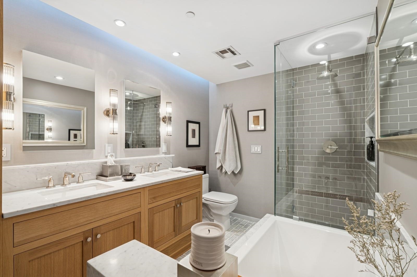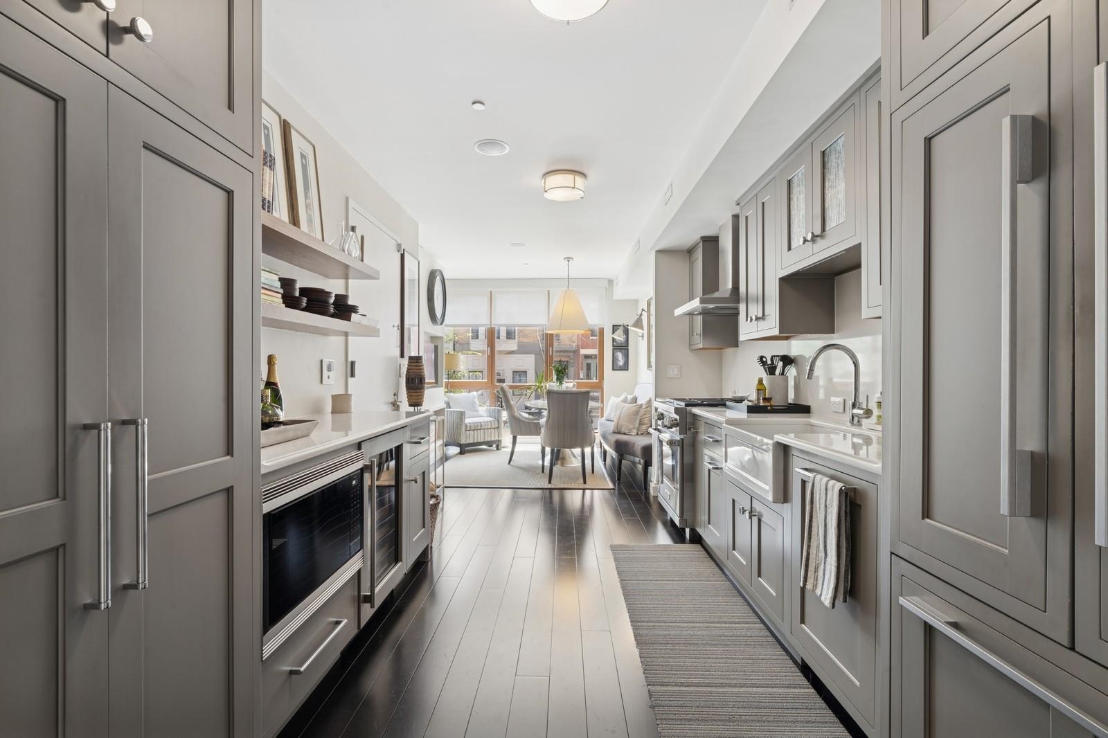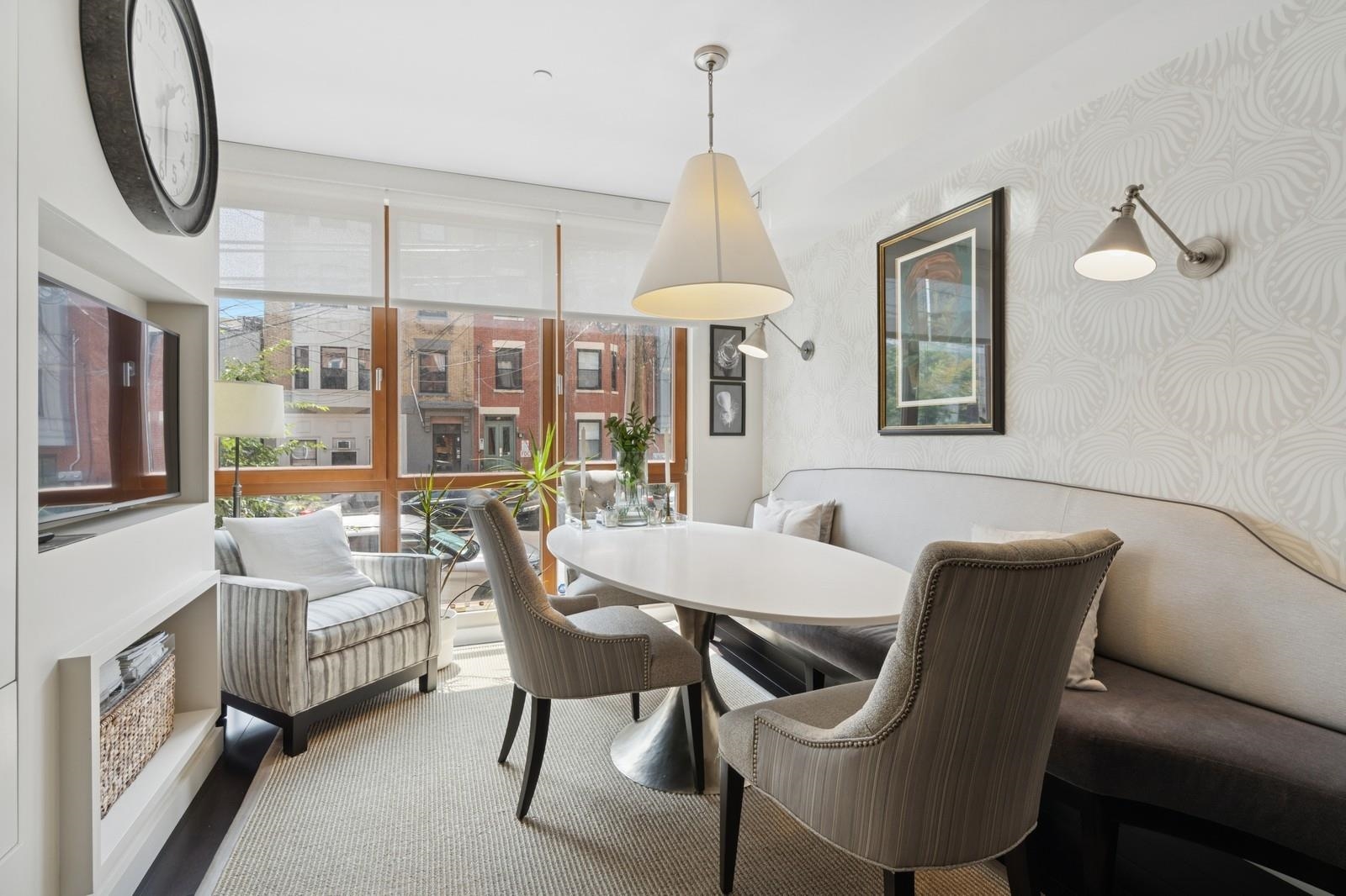 Indulge in the grandeur of this impeccably appointed duplex with tranquil private patio retreat located in the heart of vibrant downtown Jersey City and one block from historic Van Vorst Park. Currently configured as a two-bed this spacious home can easily be converted back to its originally conceived three-bedroom layout. Built from ground up in 2018 this distinctive residence has since undergone an exquisite transformation with meticulous attention to detail beginning with a sumptuous chef’s kitchen featuring sleek Silestone counter tops and back splash, vented Wolf dual range and microwave, Sub-Zero wine refrigerator, Bosch dishwasher, farmhouse sink and Restoration Hardware lighting that flows seamlessly into a sun-drenched dining area with custom built-ins and banquette, stunning wall covering, pendant lighting and library sconces. Make your way to the rear of this striking home and experience a generous primary bedroom sanctuary with distinct lounging area, floor-to-ceiling windows and abundant natural light. A luxurious spa bath boasts dual marble vanity with an adjoining storage closet with pull-out shelving, marble clad deep soaking tub, frameless glass rain shower, Ralph Lauren vanity lamps and beautiful mosaic tile flooring. Escape to an expansive living area with ideally conceived home office niche that opens to your lovely outdoor oasis, perfect for entertaining family and friends or just relaxing in your peaceful urban hideaway. A large guest bedroom offers the utmost in privacy and comfort while a second reinvented bath with marble vanity and Visual Comfort lamps, custom built-ins with pull-out shelving and hampers, handsome wall coverings and frameless glass shower is certain to please. With beautiful hardwood and cement tile flooring, Shade Store window treatments, recessed lighting, Nest thermostats, central air and heat, full-sized washer/dryer, abundant storage with custom California Closets throughout, a 15’x 6’ storage room and refined luxury that will appeal to even the most discerning of buyers, this delightful abode can be yours to call home.