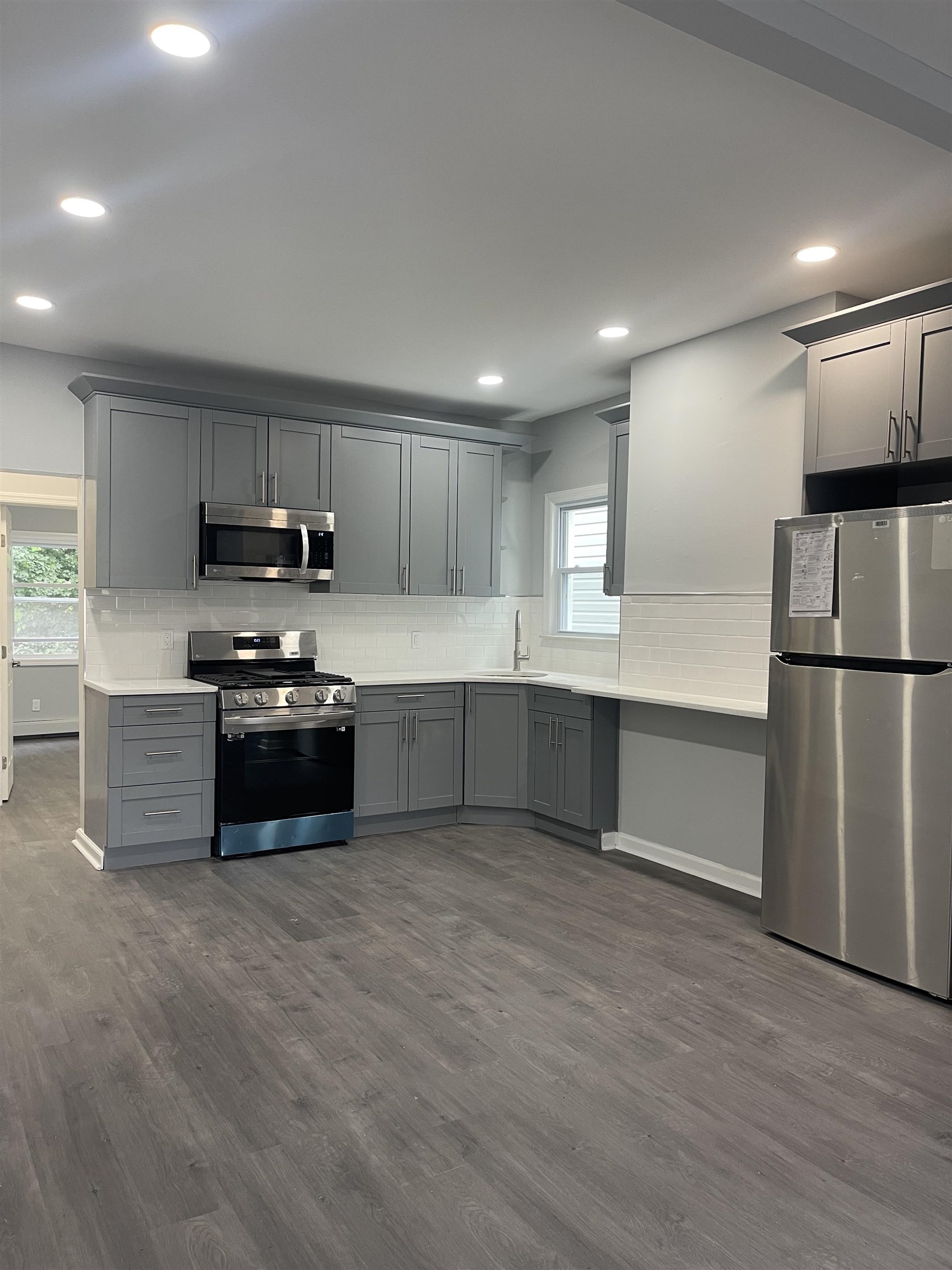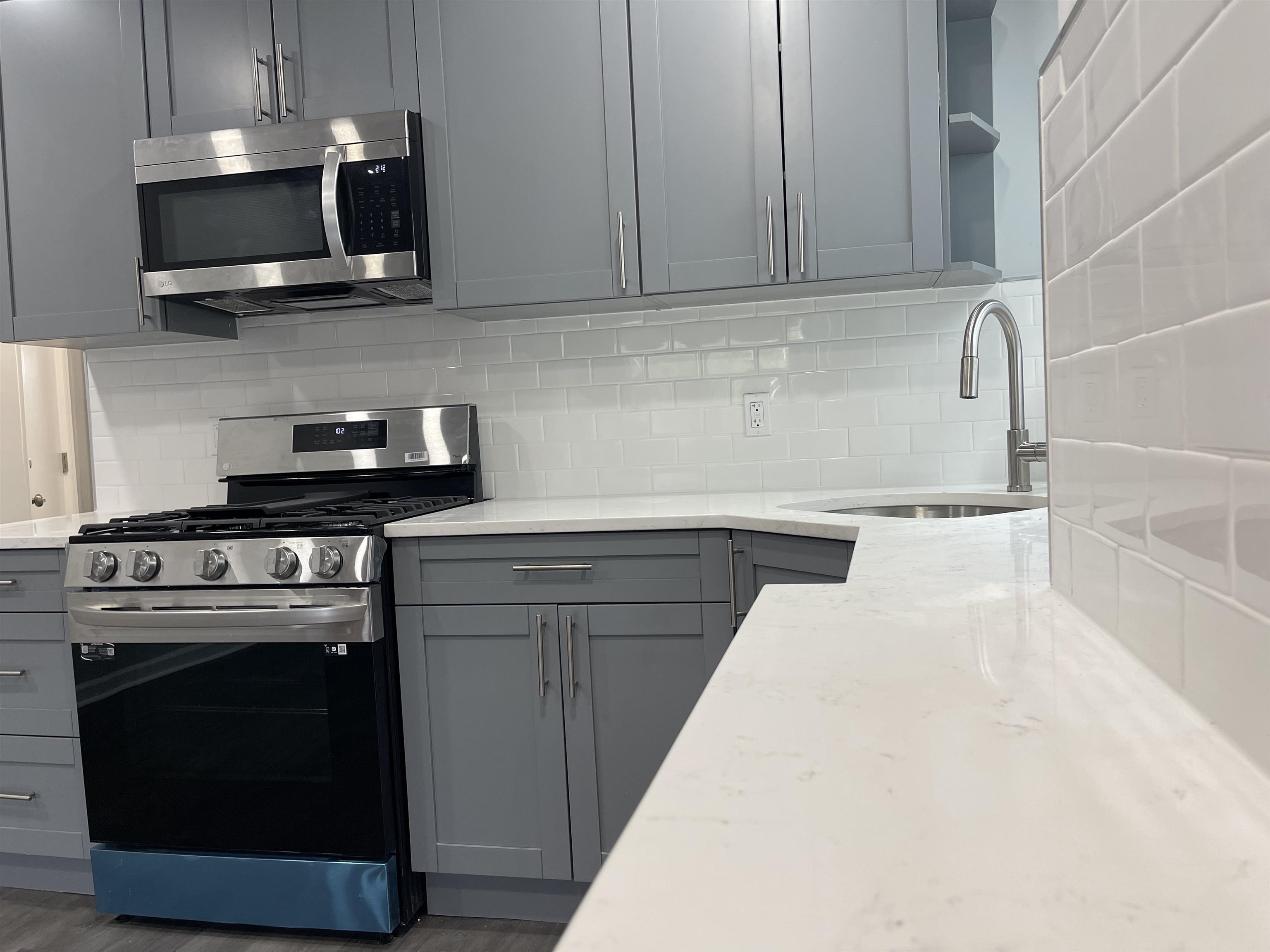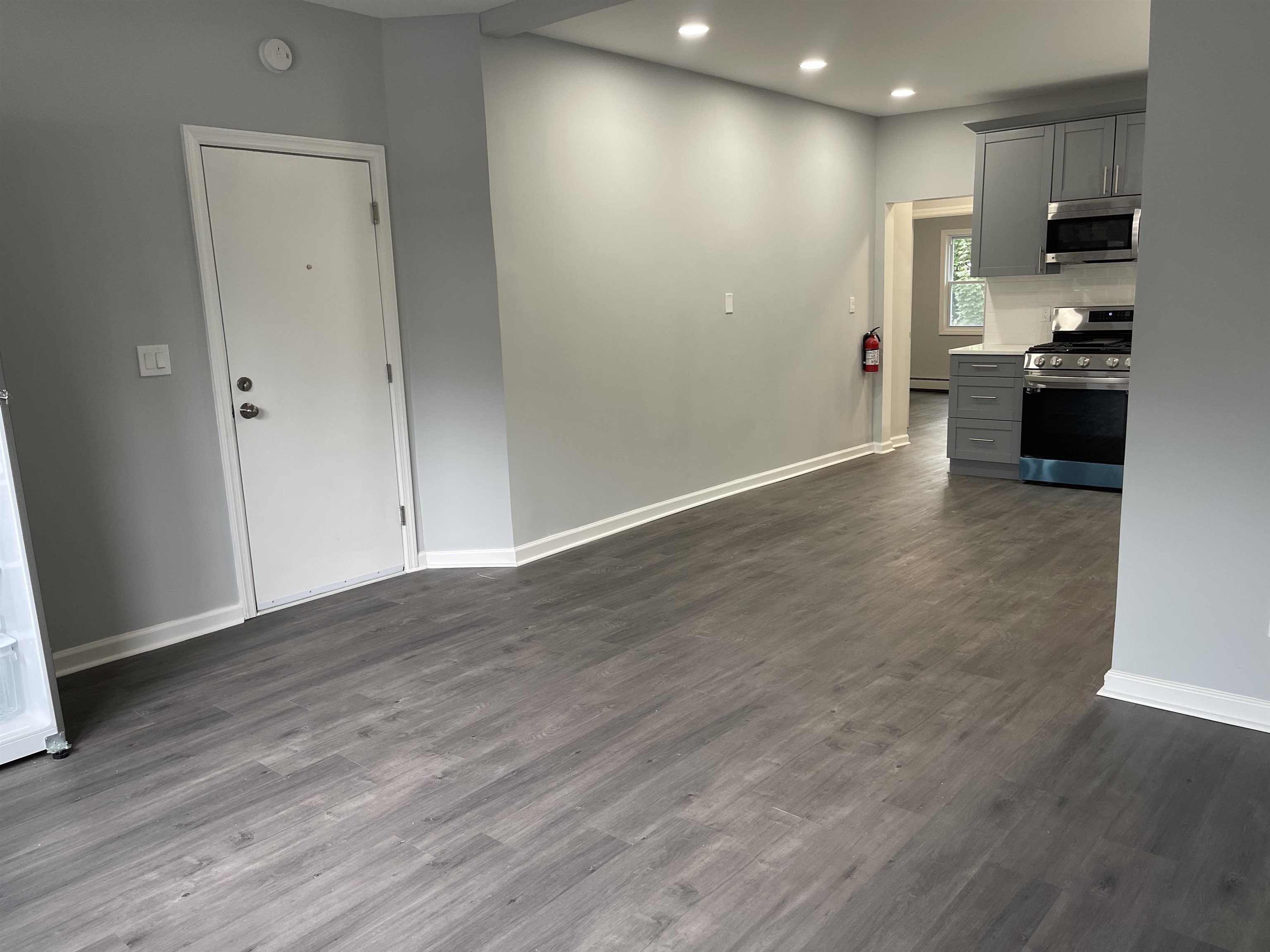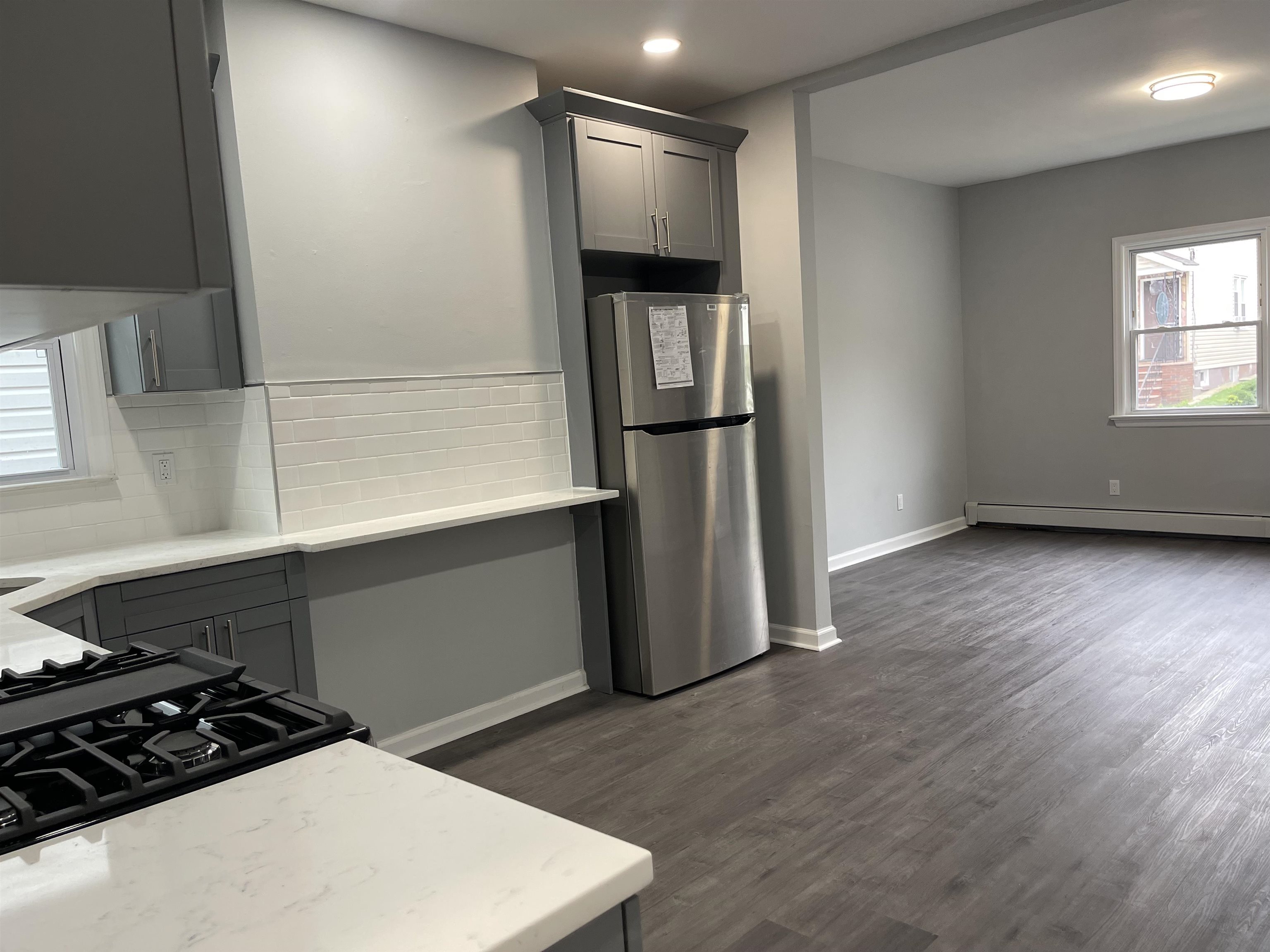 Welcome to this beautifully updated apartment. Located on a quiet street of Belleville, close to shops, transportation, parks, restaurants & more! Unit on first floor and includes 2 bedrooms, 1 full bathroom, separate living space and spacious eat in kitchen. New windows and newew vinyl flooring throughout (2023). Custom cabinets, quartz countertops & new stainless steel appliances! Updated electrical & plumbing. New light fixtures, apartment is painted neutral colors. Unit is bright, airy and spacious. Baseboard heating & window A/C. Street parking only. Shared coin laundry in basement. Pets may be considered. Tenants pay gas & electric. Landlord pays water & sewer. Credit report etc., pay stubs & interview required.