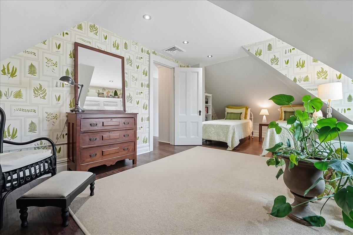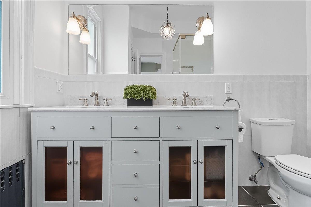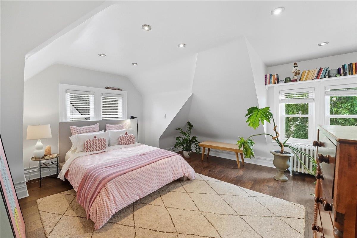 This beautiful, large & luminous Tudor sits peacefully on an enchanting 50 x 100′ lot, deep in the heart of King’s Bluff surrounded by a lush, vintage garden including hydrangea, lilac & cherry blossom, and a massive 2-car garage with added driveway parking for 3 more cars. 56-58 Bonn Place is completely renovated & restored, keeping the original architecture intact, while creating a space that is modern, functional & comfortable for contemporary life. The open, airy first level includes an opulent living room w/coffered ceiling & a vintage decorative fireplace. Seamlessly connected to the living room is an expansive, light-filled dining room which is directly across from a timeless kitchen featuring a massive butcher block island, custom cabinetry & a unique copper farmhouse sink, w/premium appliances including Viking refrigerator, and Fisher & Paykel double oven. There is a delightful sunroom in the back of the house that gives way to the beautiful garden, and an appealing half bath for added comfort & convenience. Both the dining room & sunroom are outfitted with Serena & Lily chandeliers, with a sound system installed throughout the first floor. Walk up the perfect, solid oak staircase w/Harlequin stained glass to the second floor which unfolds into 3 oversized bedrooms, with one bedroom being used as a roomy office, an oversized walk-in closet, 2 spacious baths w/impeccable design & a conveniently located LG washer/dryer. Head up to the 3rd floor which contains 2 large, sunny bedrooms that could also be used flexibly as creative, guest, or work spaces & a pristine bath with vintage reproduction elements. NYC views are visible from the 2nd & 3rd floors, & all 4 ½ baths have been thoughtfully & tastefully renovated. Finally, head down to the comfortable basement which includes a full bath w/tile & stone walk-In shower, lounge area, & an additional flex room, all artfully designed for maximum relaxation. Close to the Port Imperial & Lincoln Harbor Ferry, Light Rail, Bus & Easy Access to Lincoln Tunnel, Major Highways, & Local Airports. This Incredible Home is just Minutes to New York!