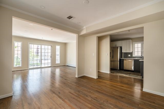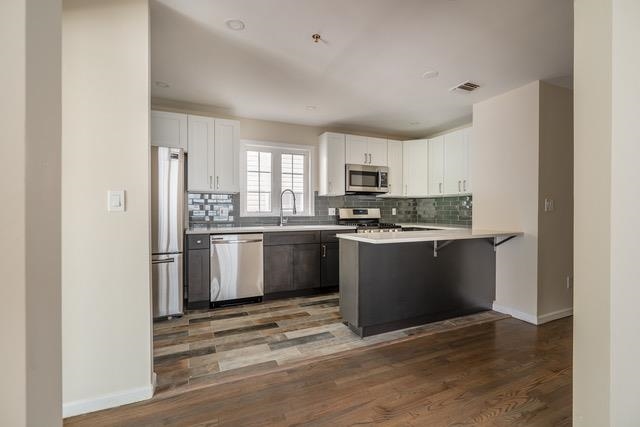 Renovated 3-bedroom, 2-full bath one-level apartment in a well-maintained 3-family home located in a highly desirable area with an easy NYC commute. Features include a spacious living room, formal dining room, and updated kitchen with stainless steel appliances and nice cabinetry. Two generously sized bedrooms with walk-in closets plus a large primary suite offering a renovated full bath, walk-in closet, and direct access to a private backyard. Terrace with Hudson River views. Central air and baseboard heat. On-site laundry. One car parking is included. Exclusive use of the backyard. Tenant is responsible for all utilities, including sewer. NYC bus and free ferry shuttle at the door. One pet may be considered on a case-by-case basis. Credit and background check required.