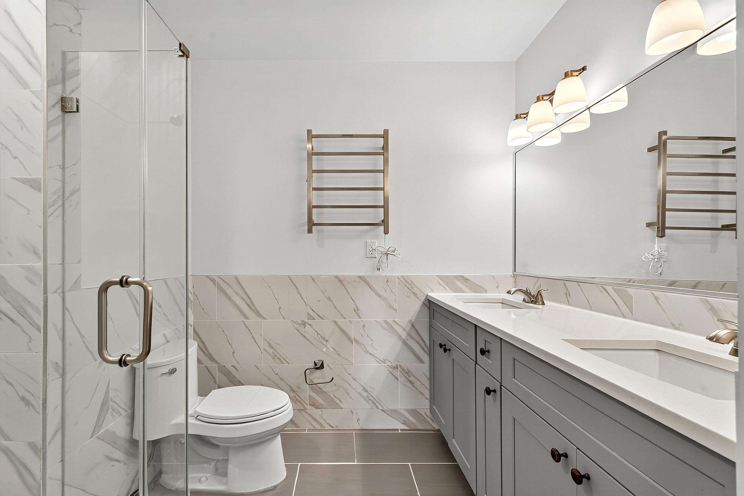 Beautifully maintained 3-bed 3-bath duplex condo conveniently located in the Marion section of Journal Square and 10 minutes to the Journal Square PATH train. Charming functional kitchen with quartz countertops, white soft-closing kitchen cabinets, grey mosaic tile backsplash, stainless steel appliances, recessed lighting and a pantry to hold all your groceries and other essentials. Three bedrooms and 2 of the 3 bathrooms are on the upper level with windows and an abundance of natural light. Remote-controlled mini split heating/cooling system, tankless water heater, intercom and your own private entrance at the side of the building in addition to the front main entrance way.