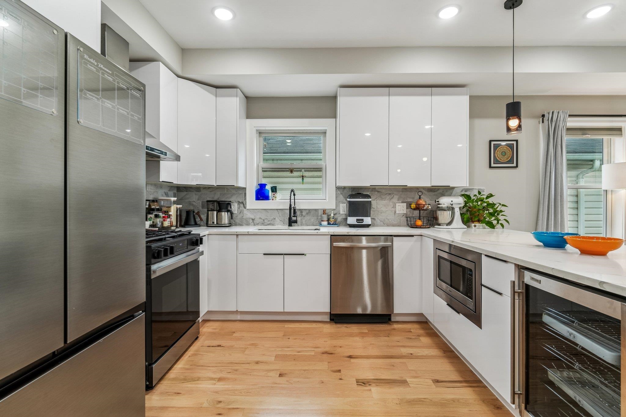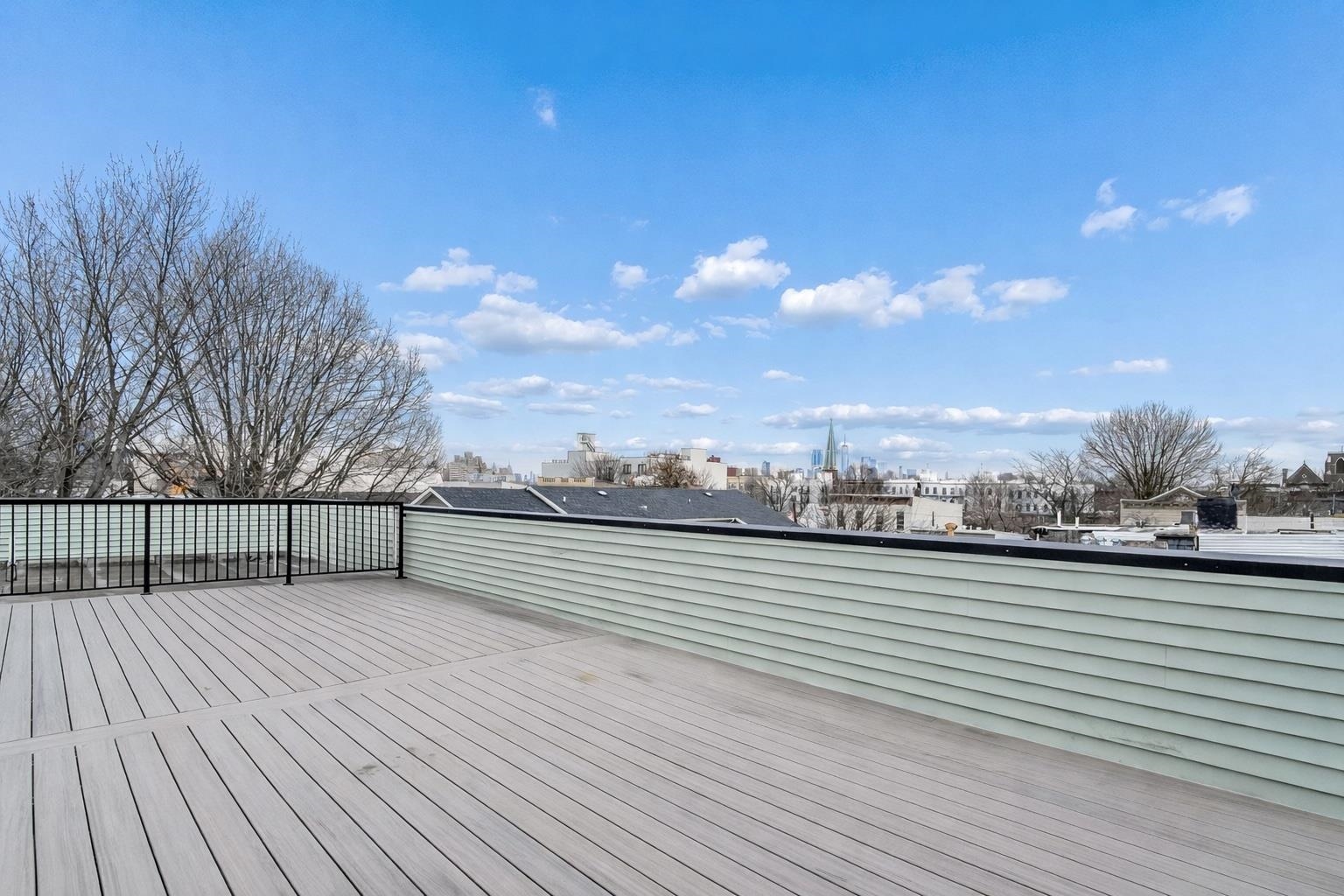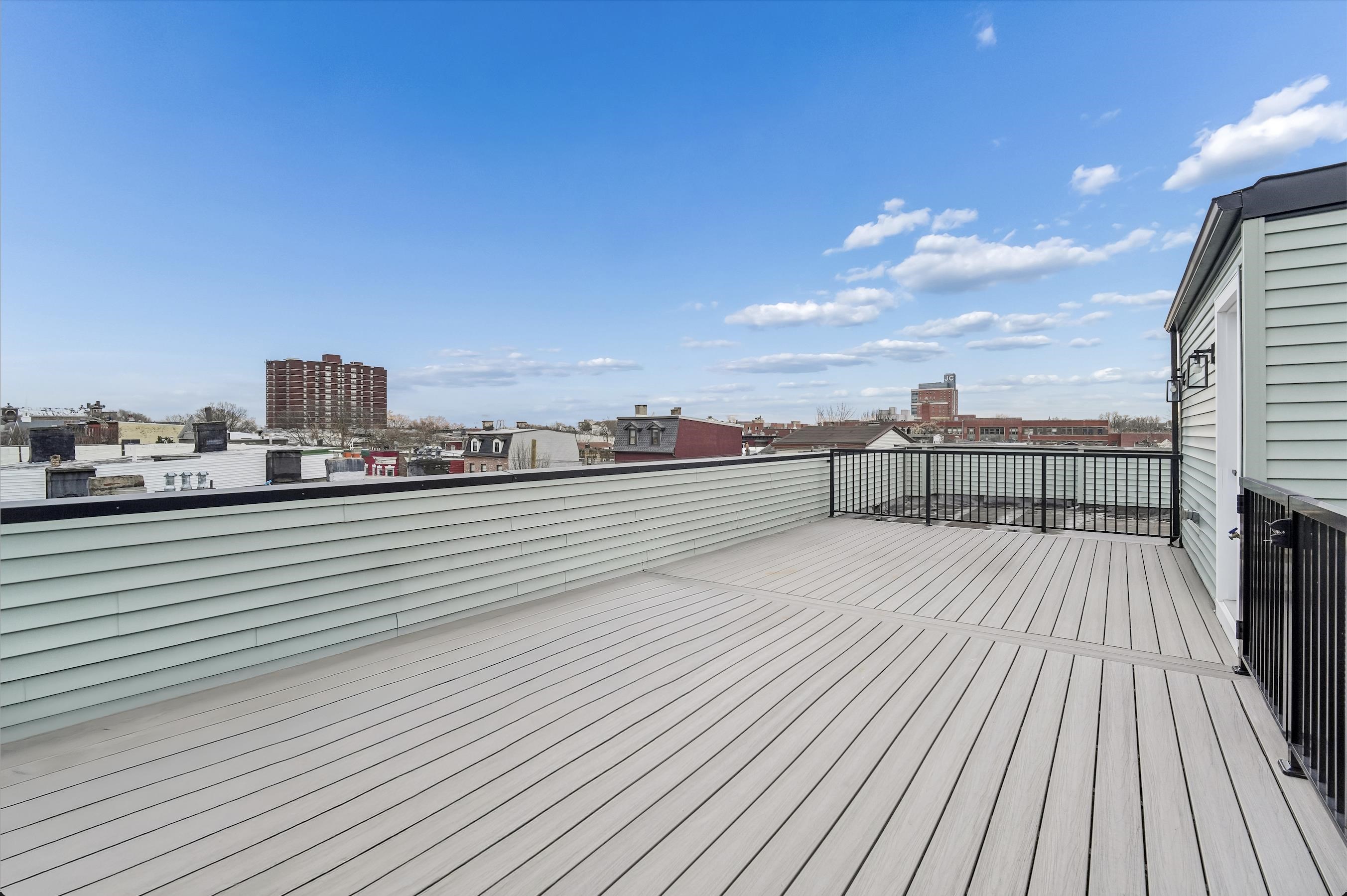 Experience elevated urban living in this recently built condominium, located in Jersey City’s vibrant Bergen-Lafayette neighborhood. Spanning over 1,400 square feet, this thoughtfully designed residence features soaring ceilings, three spacious bedrooms, and two beautifully appointed bathrooms. The sun-filled, open-concept living and dining area is enhanced by oversized windows that flood the home with natural light, creating an inviting and airy atmosphere. The gourmet kitchen blends style and function, offering custom soft-close cabinetry, quartz countertops, and a generous island—perfect for both everyday living and entertaining. The primary suite is complete with a balcony, three closets, and a luxurious en-suite bathroom. Two additional well-proportioned bedrooms provide ample closet space for versatile use. Enjoy exceptional outdoor living on your private roof deck, ideal for relaxing or entertaining while taking in the surrounding cityscape. Designed for modern living, the home is pre-wired for internet and features a new roof, plumbing, electrical, HVAC system, and appliances—all still under warranty, offering peace of mind and long-term value. Additional highlights include tandem garage parking, dedicated storage, and a 4-year remaining tax abatement. Enjoy a quick commute to Manhattan and the World Trade Center, with direct bus service to JSQ PATH and Light Rail just two blocks away. Surrounded by local shops, parks, dining, and daycare options, this residence delivers a rare blend of comfort, convenience, and contemporary city living.