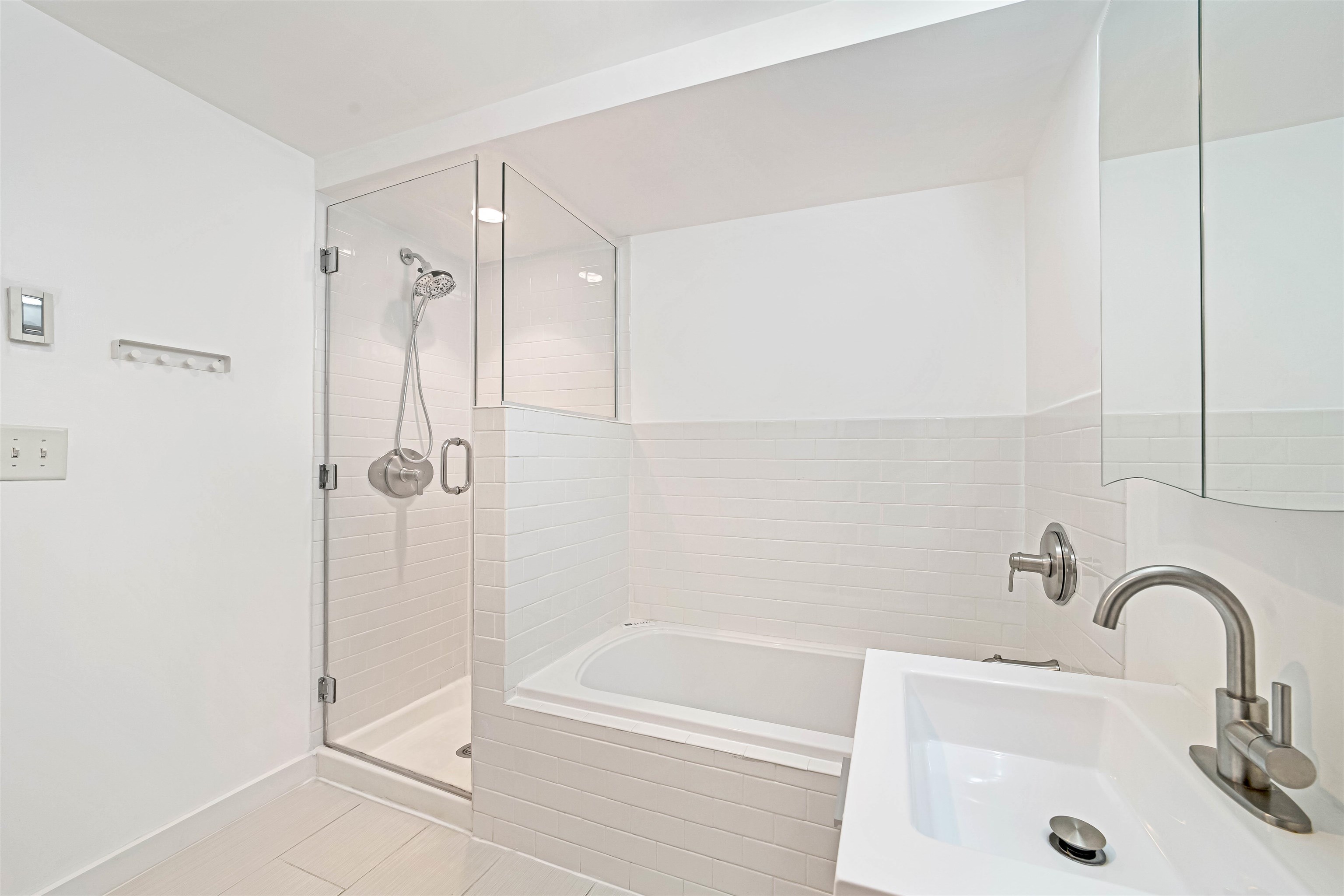 Beautifully updated 1-Bedroom + Den, 2-Bathroom Condo with walk-in closet offers breathtaking views of the Manhattan skyline and Hudson River. The kitchen is fitted with granite countertops, a built-in cooktop, and rich espresso cabinetry. The Living room centerpiece features a custom museum-quality architectural art wall installation with programmable LED backlighting. A wood-burning fireplace creates the perfect cozy retreat, and heated floors throughout! Oversized balcony invites you to unwind and take in the stunning scenery. Enjoy the convenience of in-unit brand new washer/dryer, garage parking, and building amenities including; a gym, indoor heated pool, and 24-hour concierge. With Whole Foods, the Ferry, Light Rail, and bus service just steps away, truly one of the best locations on the waterfront.