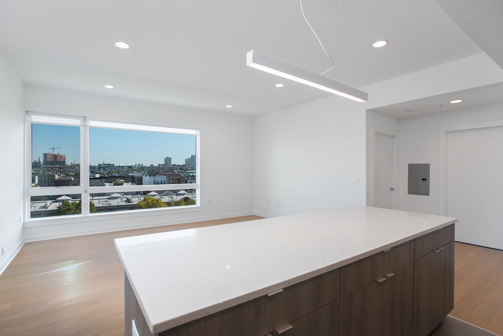 Welcome Home to 600 Harrison, a pet-friendly, new construction luxury rental building which offers contemporary living and state -of-the-art amenities. This gorgeous unit has extra large dramatic windows with sweeping, unobstructed views of the Manhattan skyline and the City of Hoboken from Every room! Spacious & bright 2Bed/2Bath split floor plan offers a combined living & kitchen areas with extra large island with storage, Central Air/Heat, hardwood floors & recessed lighting throughout, as well as front-loading, vented Washer/Dryer in every unit. The modern kitchen & bathrooms features Caesar Stone Quartz countertops, full-size Stainless Steel appliances, glass enclosed showers, deep soaking tubs, and floating vanities. Window treatments also included on all the windows, and they are Blackout in the bedrooms! This elevator building offers a state of the art gym and package room, as well as a large common patio area with lounge chairs, couches & outdoor kitchen equipped with grills. Indoor Parking Available, and it’s only a two minute walk to the Light Rail! Available ASAP. Price Special for Nov. 1st or sooner!!! **Landlord is also offering $1K Security Deposit for qualified applicants with 700 or higher FICO score, and no guarantors needed!!**