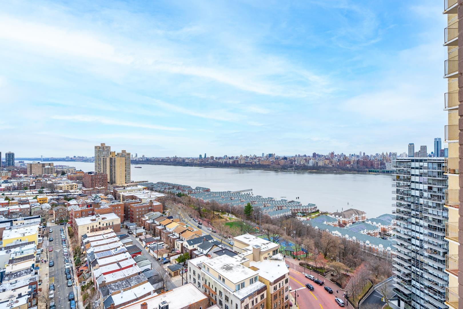 Stunning Executive Studio High in the Sky!!! This generous studio on the 25th floor offers alluring views of the Upper West Side and the Hudson River from every nook and cranny. 25M has been thoughtfully designed with a open kitchen layout that features white cabinetry and is perfect for entertaining. It features granite counters, stainless steel appliances, and a full sized dishwasher. Ample closet space is provided throughout. 200 square feet of private outdoor space with Hudson River views provides the perfect three season oasis for dining outside or having that morning cup of Joe. All utilities are included in the rent. NYC is minutes away via public transportation available 24 hours a day, 7 days a week! Located in “the” full service building with 24 hour door staff, guest and resident on-site parking, Olympic Sized Pool, and on-site gym!