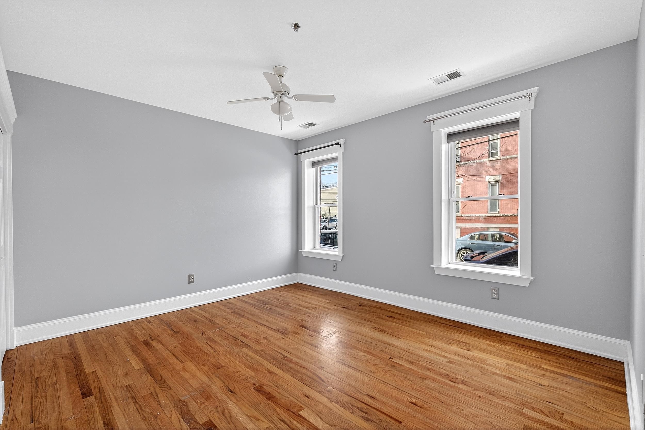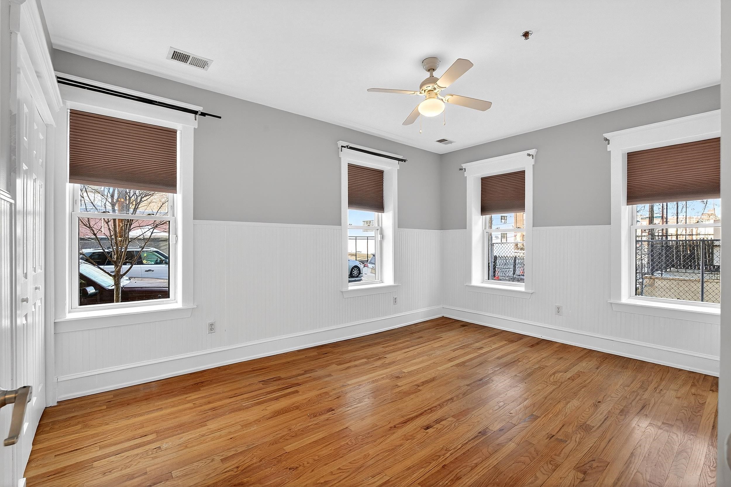 Spacious and sun-filled 3-bedroom, 1-bath apartment located on the first floor in the desirable Bergen-Lafayette section of Jersey City. Enjoy true step-free living with no stairs or elevator required. This bright home features high ceilings, abundant natural light, central air, ceiling fans in every room for efficient airflow, and a Nest thermostat for modern comfort and energy efficiency. Each bedroom offers generous closet space, while the updated bathroom includes a new vanity, modern toilet, and a heated mirror with integrated lighting. The building offers secure key-fob access and a conveniently located laundry room just one short flight down, with both coin-operated and app-based payment options. Ideally situated just an 8-minute walk to the Light Rail, with bus service to and from NYC right around the corner. Only a few blocks from Lincoln Park, offering green space, recreation, and easy access to neighborhood amenities. A fantastic opportunity for comfortable living with excellent transit access.