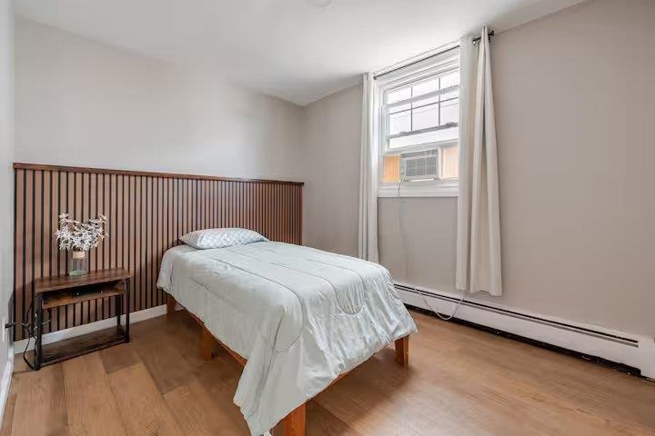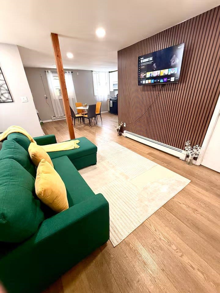 Welcome to this beautifully renovated 3-bedroom, 1-bathroom apartment located in the heart of West New York, NJ. This bright and modern home offers a thoughtful layout, stylish finishes, and rare outdoor space—perfect for comfortable living and entertaining. Apartment Features, 3 generously sized bedrooms with ample natural light; 1 full modern bathroom with updated vanity and fixtures; Open-concept living and dining area with recessed lighting; Modern kitchen with sleek finishes and functional layout; Central living area accent wall adds warmth and character; Well-maintained luxury plank flooring throughout. Outdoor & Building Amenities, Private backyard – ideal for relaxing, gardening, or outdoor gatherings; Dedicated washer & dryer room shared within the building. Location Highlights, Conveniently located near public transportation to NYC, Close to shopping, restaurants, cafes, and parks; Easy access to JFK Boulevard, Bergenline Ave, and major highways