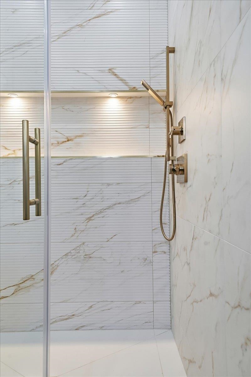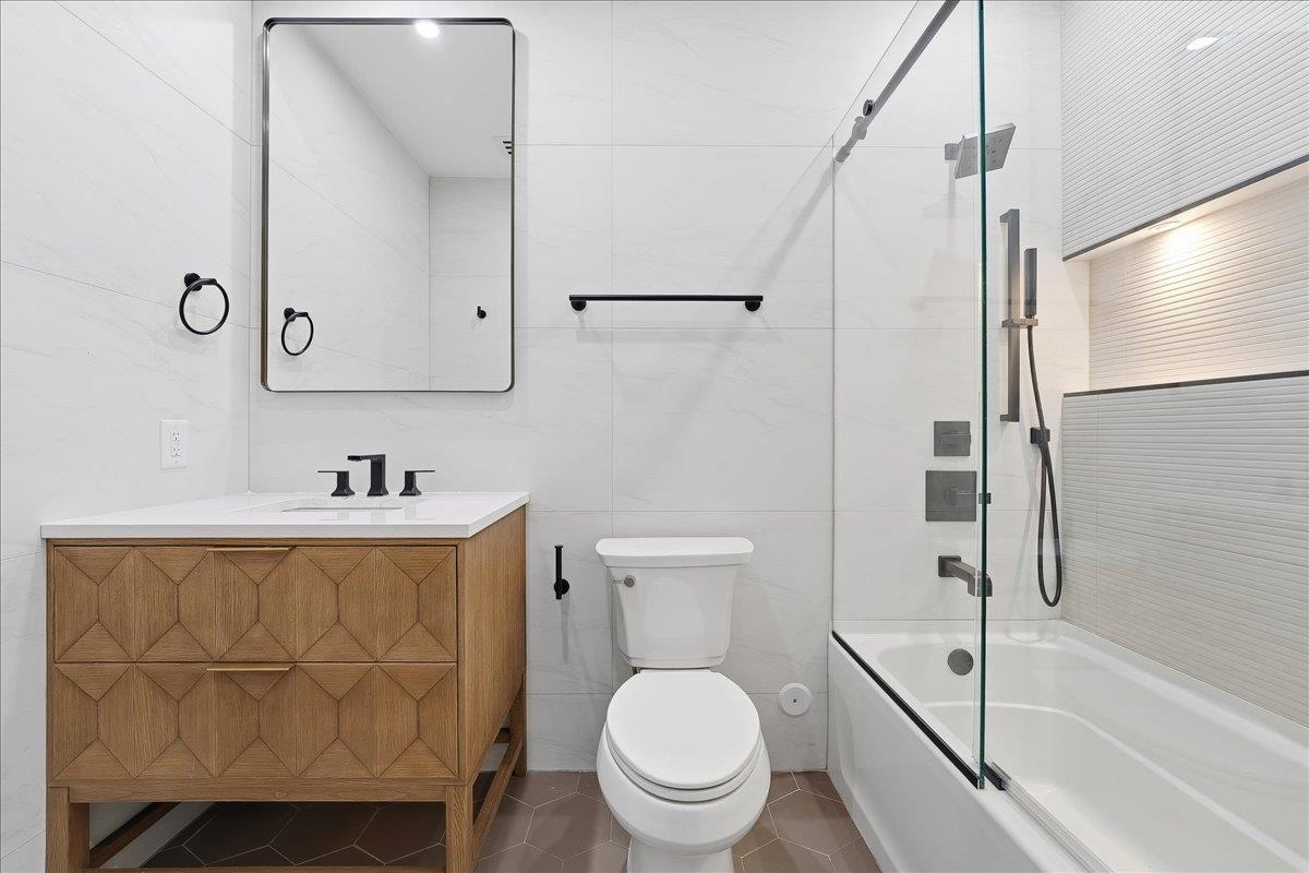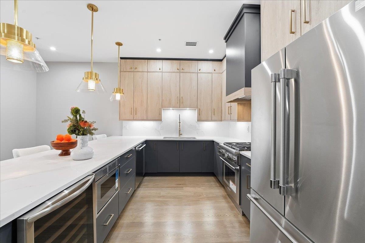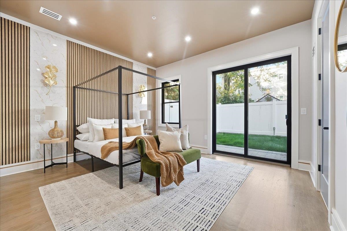 Seller offering $20K concession towards closing costs! Brand new and unexpected, this home redefines modern living with rich tones, bespoke design, and a depth of finishes rarely seen. Featuring a 3 bed, 2.5 bath layout, residents will delight in this private backyard, offering the perfect setting for expanded entertaining or simply unwinding outdoors. Inside, a custom built-in entry nook welcomes you with both function and charm before opening into the expansive main living space. Oversized windows offer striking scale, illuminating the wide oak hardwood floors and deep-hued color-cap tray ceiling. The atmospheric fireplace, framed in pale oak, makes a sculptural statement and includes a built-in beveled niche designed to cradle a flatscreen. The dynamic kitchen is open and inviting, with custom light-oak upper cabinetry with under lighting, pepper-toned lower with matching hood and island kick-plate, tying it all together with clean white quartz countertops and backsplash. Additional finishes include stainless appliances like the Thermador appliance suite, as well as a brass pot filler and matching designer pendant lighting. An adjacent powder room in unit 1 adds style with custom paint and a floating vanity. In the primary suite, design carries with the continued color-cap ceiling treatment, plus a fluted wood accent wall lit by mounted sconces. Step through the sliding glass doors to the private backyard complete with pavers, lawn, and white fencing perfect for bringing the outdoors in. The bathroom brings beauty and function together with marbled-tile finished to the ceiling, glass-enclosed shower with niche and accent lighting, plus a spacious double vanity to complete the serene space. Conscientious storage abounds with fully built walk-in closets throughout for effortless everyday luxury. Set on a tree-lined street in Jersey City Heights, this modern tan brick façade gives excellent curb appeal. Just minutes to the 9th Street Light Rail elevator and beloved local favorites like Riverview-Fisk Park, Corto, Froth on Franklin and more, these homes offer the best of lifestyle and location.