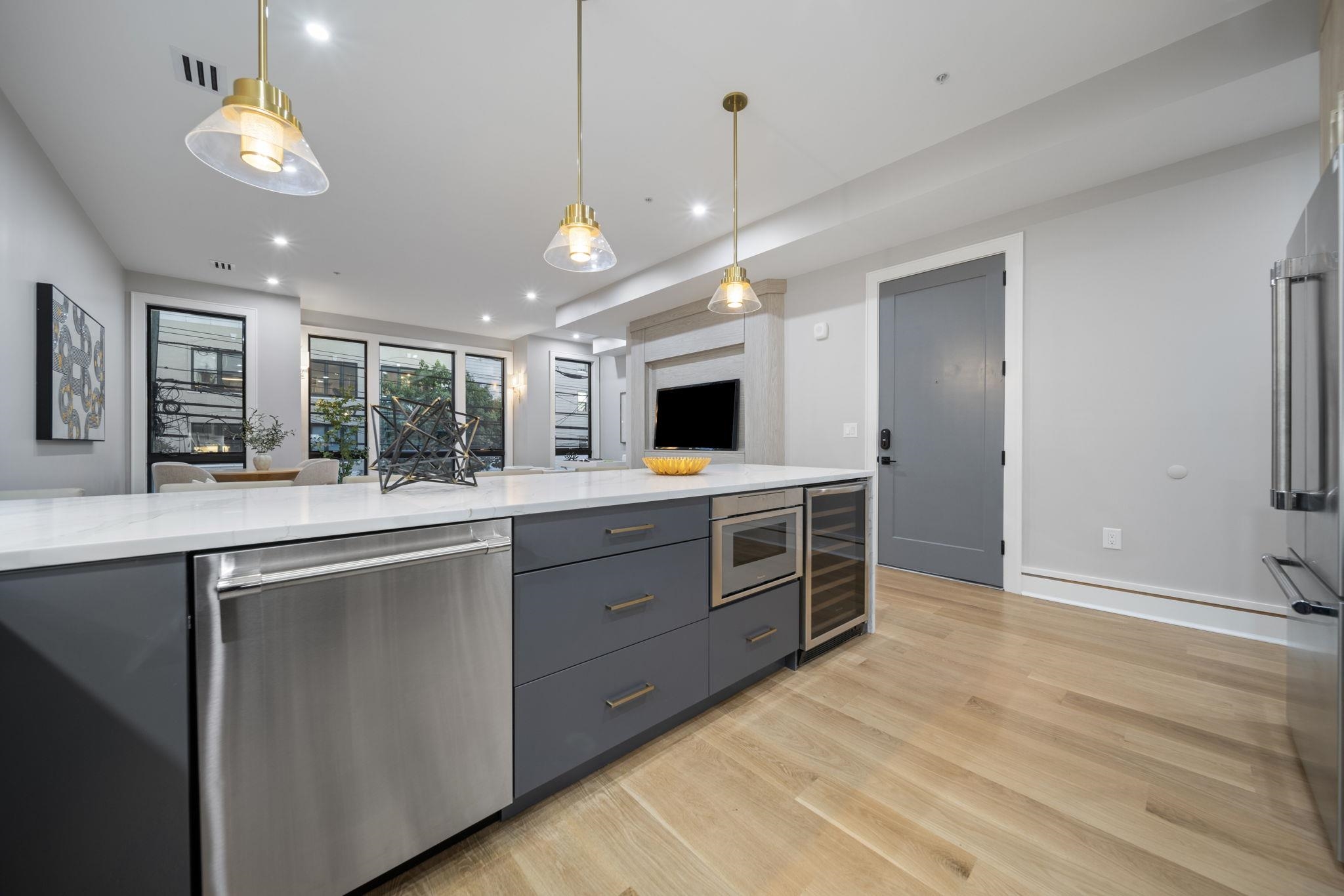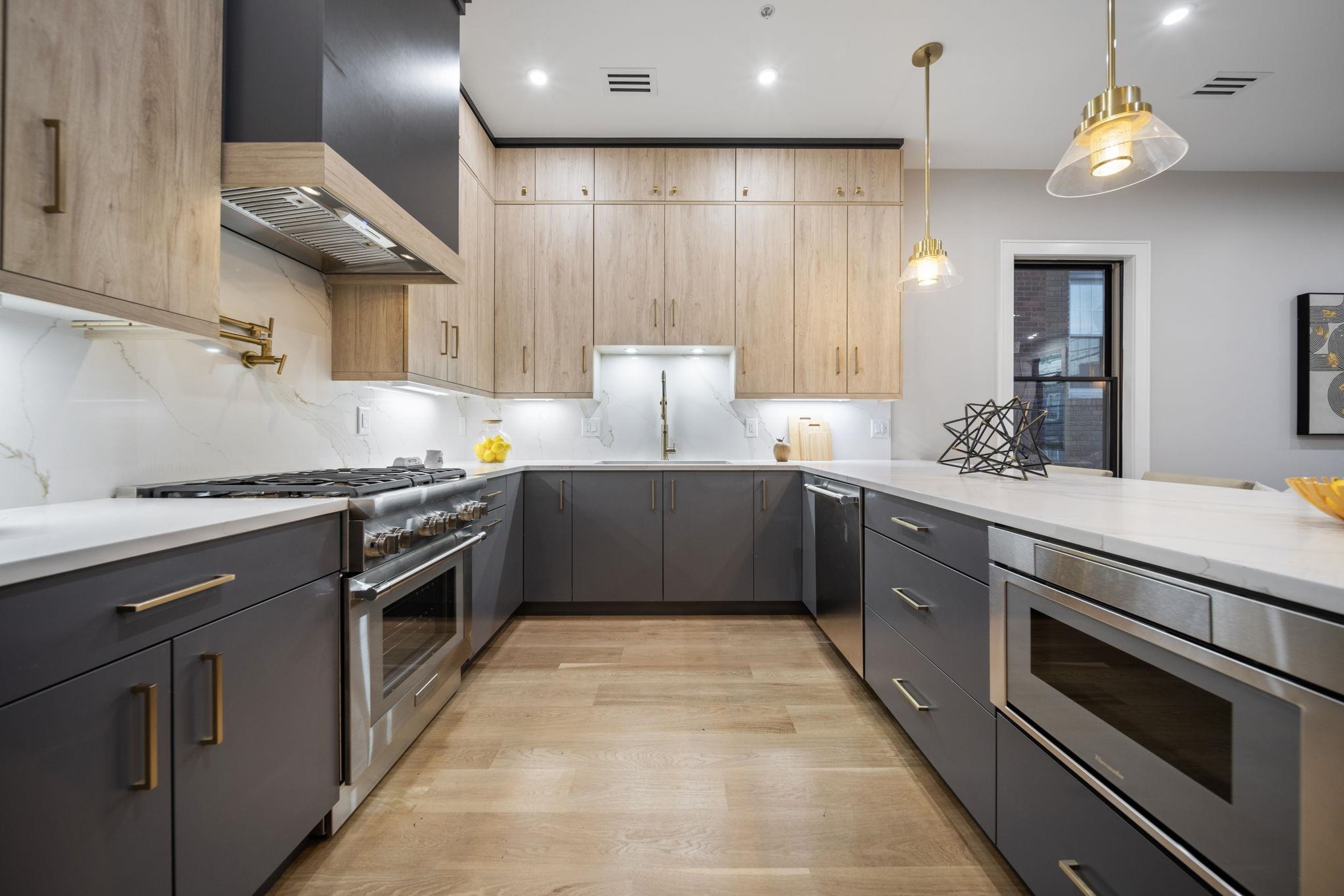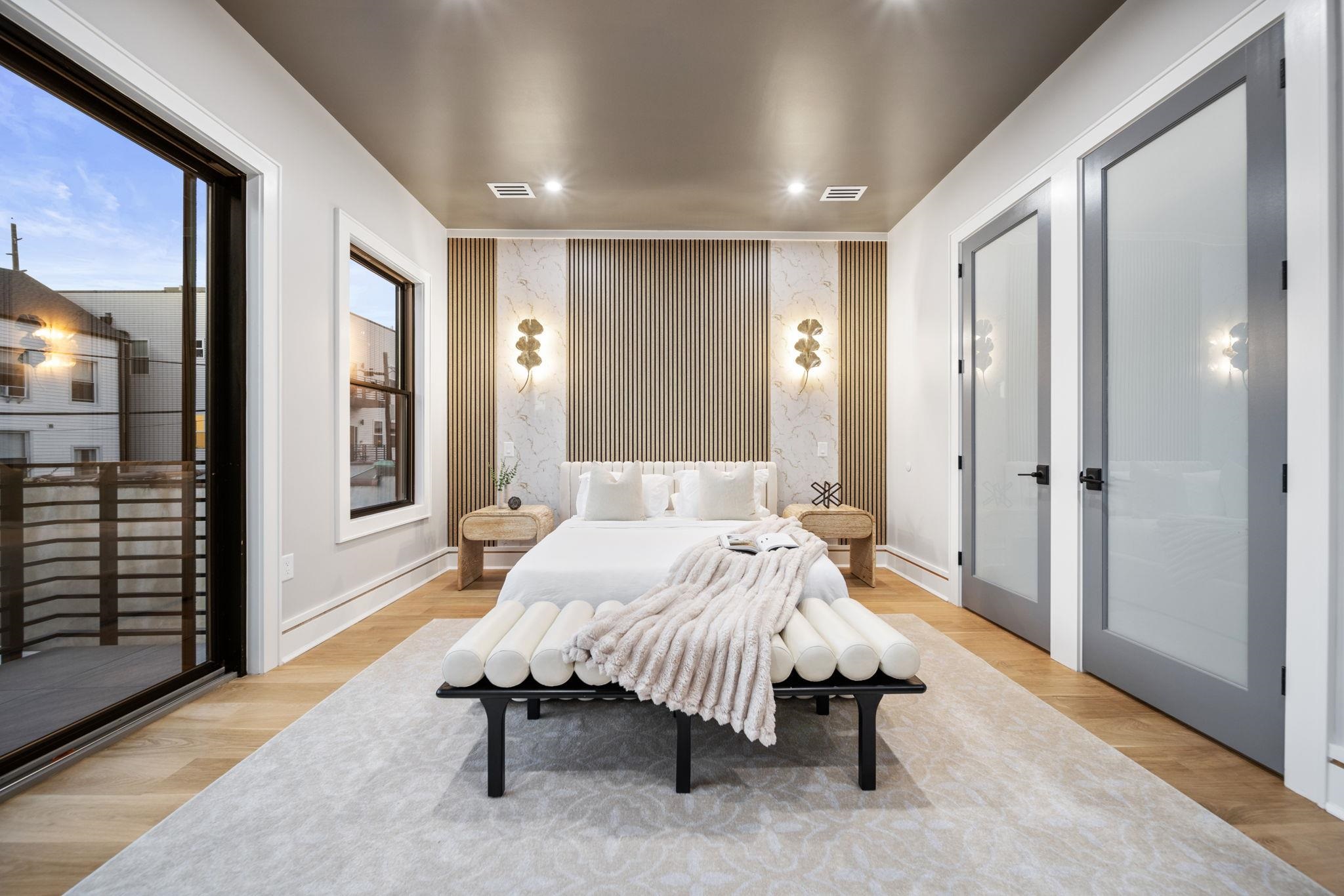 Seller offering $20K concession towards closing costs! Welcome to 619 Palisade Avenue unit 2, a premier high-end new construction condo from NKAY Developers in the heart of Jersey City Heights. Conveniently located on Palisade Avenue, just steps from Washington Park, this unit features 3 XL bedrooms, 2 full baths and private backyard. Custom designed kitchen offers top of the line stainless steel Thermador appliances including wine fridge, XL quartz waterfall counters and backsplash, oversized stainless steel sink, two-tone custom cabinetry, pot filler, stylish gold hardware and fixtures, and high-end pendant lighting. Open-Concept living and dining room are complete with a fireplace framed with custom millwork and wall to wall oversized Andersen windows with NYC views. Just off the main living area, a built-in workstation provides a dedicated space for work or study. Main bedroom suite offers ample natural light and boasts a luxurious accent wall with dual pendant lighting, walk in custom closet with custom built-in shelving and drawers and frosted glass doors and private balcony. Ensuite bathroom offers clean design with white tile and porcelain slabs as well as oversized double vanity, dramatic warm accent lighting, and a top of the line waterfall shower, complete with sprayer and jets and soaking tub. Each of the additional 2 bedrooms feature high end custom built-in closets and common bathroom. Washer/dryer in unit add to the convenience of the home. An additional storage closet provides extra space for home essentials, maximizing functionality.The home is also equipped with a smart doorbell, keyless entry, Legrand smart dimmers, and energy-efficient smart thermostats. The exterior facade has been designed with modern yet timeless features, exterior lighting, professional landscaping, and a fenced-in front yard. This property comes with a 10-year warranty and may qualify for a 5 year tax abatement. Highly sought after location being steps from new restaurants, shopping, palisade ave bus stop, Congress st light rail, Riverview Fisk park and much more! Please note that square footage is approximate. Off-site parking available.