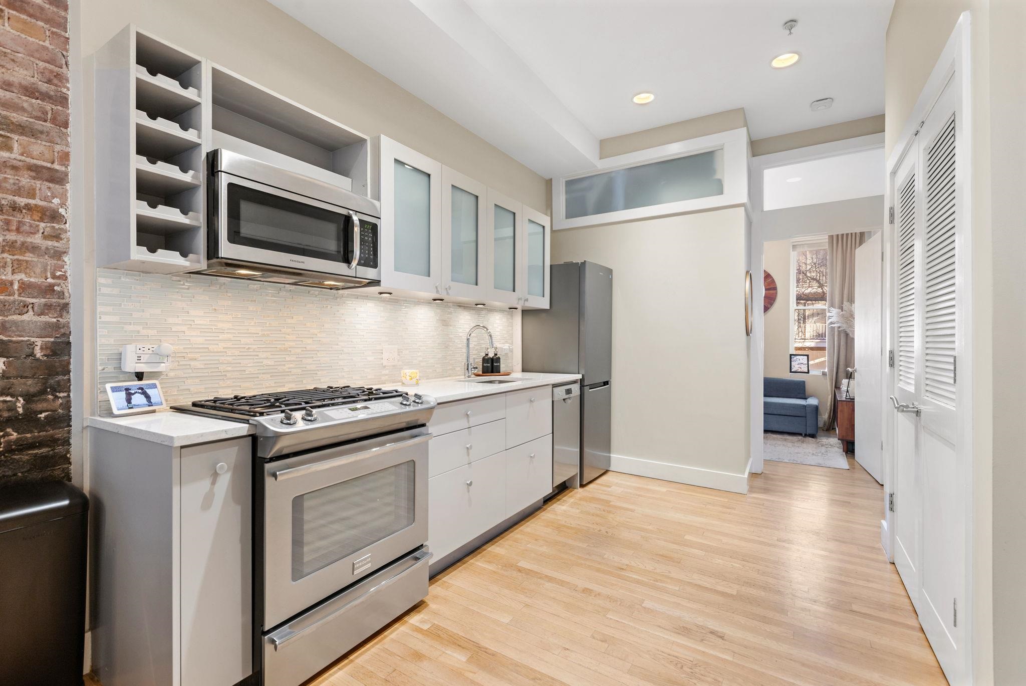 Welcome to 636 Park Ave #2, a thoughtfully updated 2-bedroom condo offering comfort, efficiency, and a prime Hoboken location. This ground-floor residence features an open kitchen with a new refrigerator, hardwood floors throughout, exposed brick accent walls, and a renovated bathroom. The layout feels efficient yet comfortable, with great closet space and plenty of room for extra storage throughout the home.. Central A/C, in-unit washer and dryer, and a smart Google thermostat add everyday convenience, while the no walk-up entry makes city living that much easier. Perfectly positioned at Park Avenue and 6th Street, the home is moments from Church Square Park and Columbus Park, with Washington Street dining, shopping, and NYC transportation just a short walk away. Pet-friendly for dogs and centrally located in one of Hoboken’s most desirable neighborhoods, this home delivers strong value without compromise. Some photos have been virtually staged.