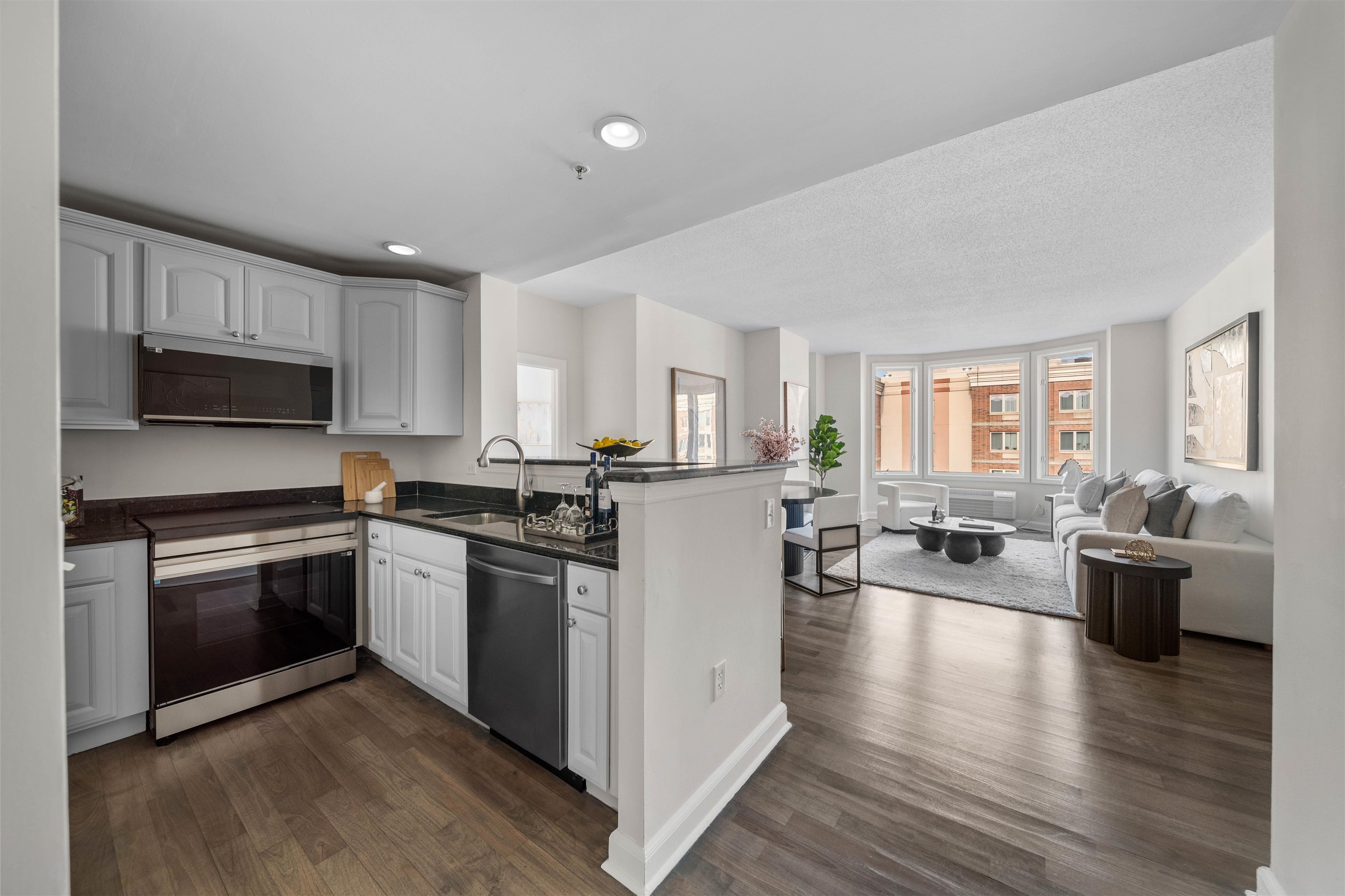 Welcome to 6404 City Place, Edgewater, NJ — where modern convenience meets stylish comfort. This beautifully maintained 2-bedroom, 2-bath residence offers an open, airy layout with gorgeous refinished hardwood floors that flow throughout the home. The spacious living and dining area is perfect for both everyday living and entertaining, while large windows invite abundant natural light. The kitchen features updated appliances and ample cabinetry, making meal prep a breeze. Both bedrooms are generously sized, with the primary suite offering exceptional privacy and its own full bath. Additional highlights include plentiful storage, in-unit laundry, and a serene ambiance throughout. Located in the highly sought-after City Place community, you’ll enjoy on-site shops, dining, and easy access to the waterfront walkway, major highways, NYC transportation, and everything Edgewater has to offer. Move-in ready and impeccably kept—this is City Place living at its best.