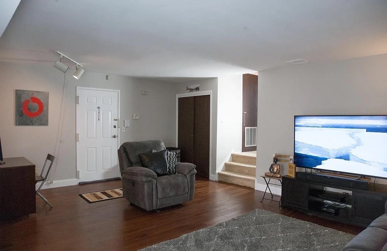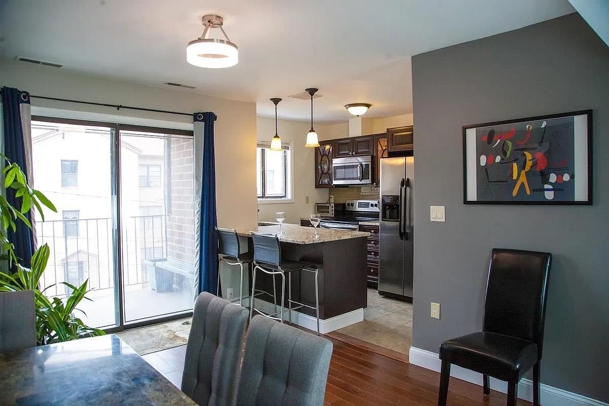 Experience modern living in this beautifully renovated 1-bedroom condo offering an expansive 1,146 sq ft of living space. The home features elegant white granite countertops, stainless steel appliances, and a washer and dryer for everyday convenience. Indoor garage parking adds to the ease of city living. The spa-inspired bathroom includes a deep soaking tub, creating the perfect space to unwind. The generously sized bedroom provides abundant storage and a true retreat-like atmosphere. Step onto the charming private balcony and enjoy a breath of fresh air. Ideally located near shopping, transportation, and just minutes from the park-and-ride light rail station with seamless access to PATH trains into NYC. This exceptional apartment is the perfect place to call home.