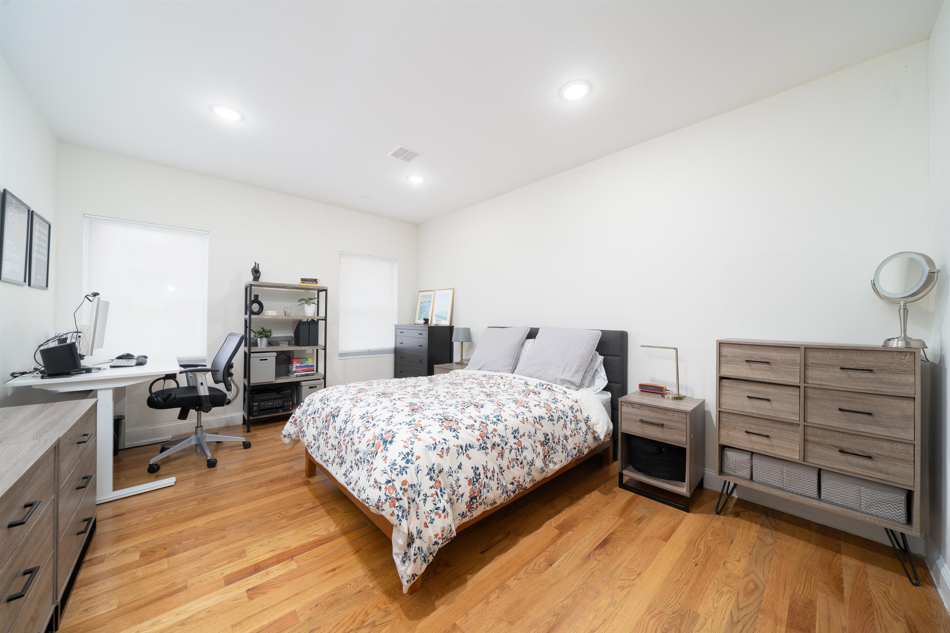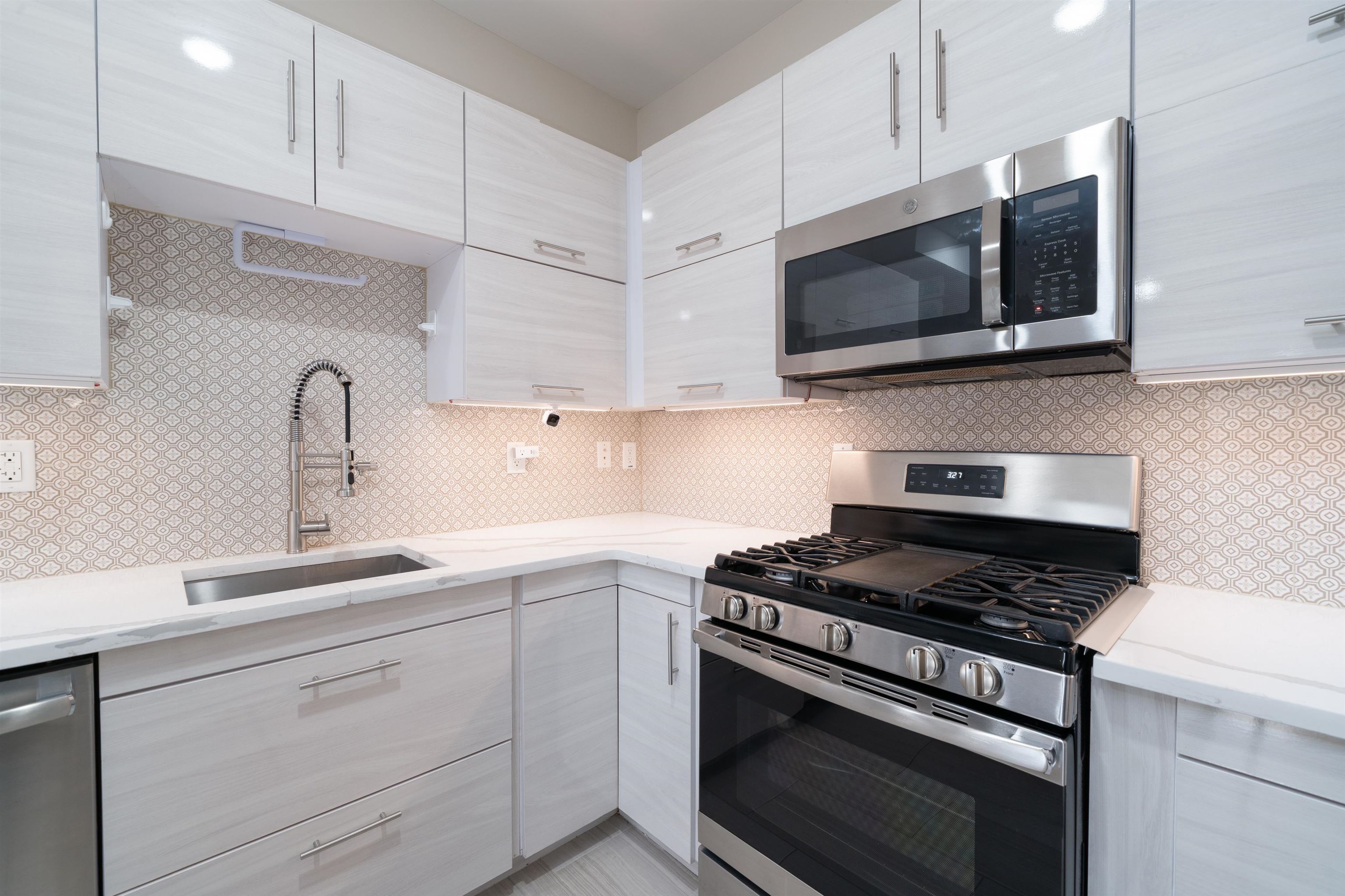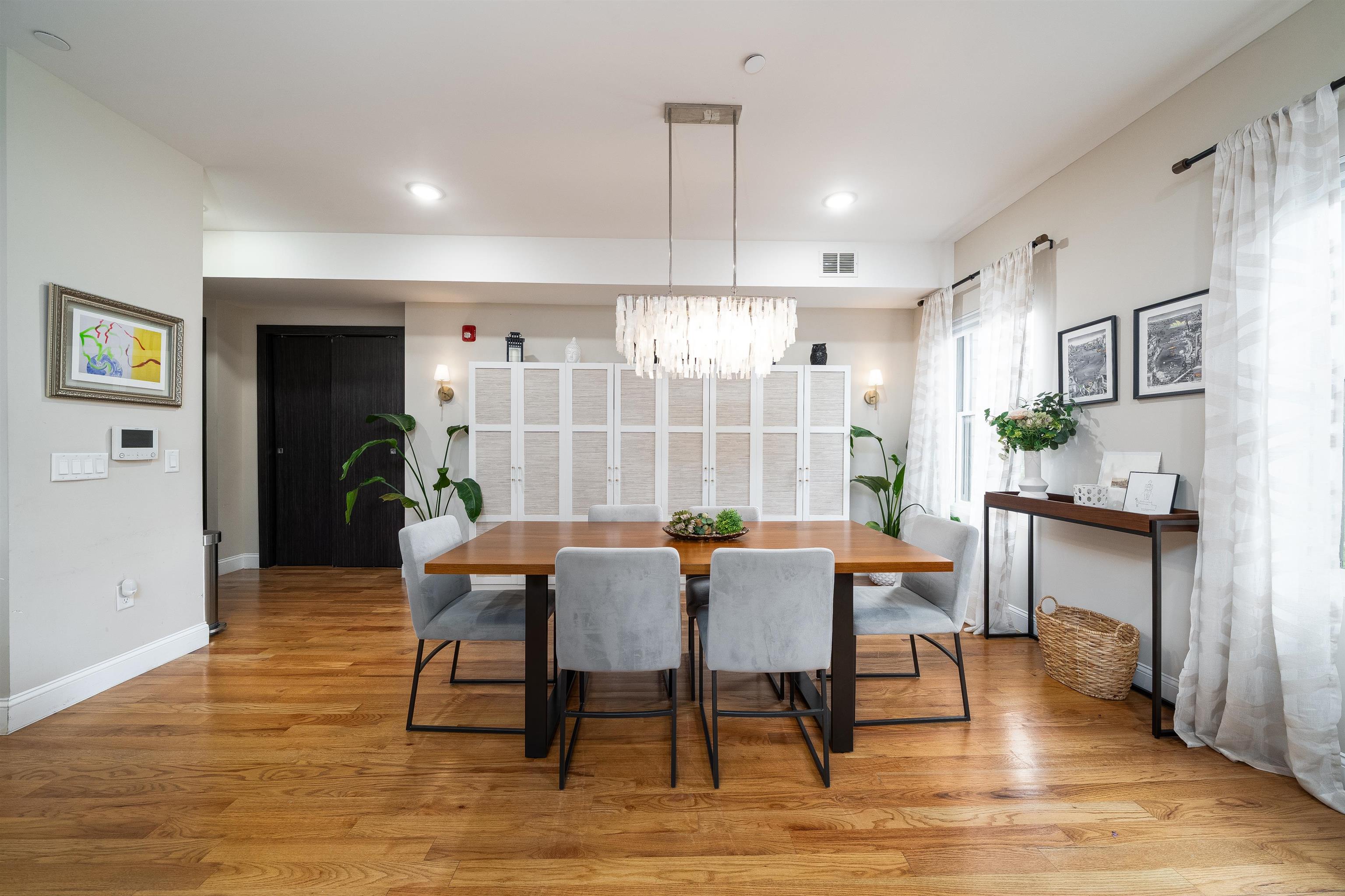 Come see this expansive condominium in a boutique-style building with attractive amenities located in the heart of the McGinley Square neighborhood of Jersey City. This large 2 bedroom 2 bath unit spans over 1400 square feet, featuring an open floor plan, gleaming hardwood floors throughout, sleek custom cabinetry, central air, Quartz countertops, stainless steel appliances, washer & dryer in unit, recessed lighting and remarkable, large bathrooms. This unit also comes with a garage parking spot. The building has elevator access, secured entry, a shared backyard and a gorgeous common rooftop with NYC views. Located in the center of the city just south of Journal Square in McGinley Square which is booming with new restaurants, bars and shops making it a great place to live. A convenient neighborhood where you are close to the JSQ path and Downtown JC but also have easy access to all major highways.