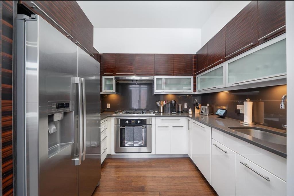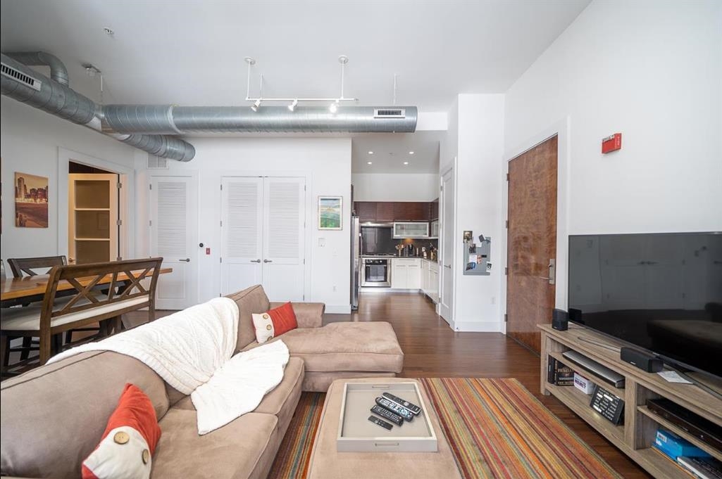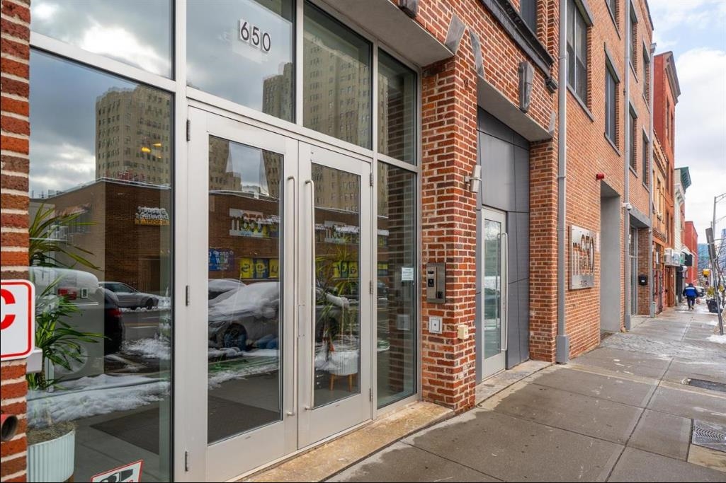 Discover the perfect blend of industrial chic and modern luxury in this stunning 708-square-foot residence at the highly coveted M650 Flats. Available for move-in on February 1, 2026, this oversized one-bedroom, one-bathroom home is designed for those seeking a premium rental experience. The interior impresses with soaring 12-foot ceilings and sustainable bamboo flooring, all framed by authentic exposed brick that adds a sophisticated, warm character. The heart of the home is a sleek Italian designer kitchen, featuring stylish contrasting cabinetry, premium Quartz Caesarstone countertops, and high-end modern finishes. Best of all, this energy-efficient unit includes the ultimate urban luxury: a dedicated garage parking space included in the rent. Your living space extends outdoors to a private terrace, perfect for morning coffee or relaxing after a long day. M650 Flats offers a boutique lifestyle with top-tier amenities, including a virtual doorman, a secure package room, elevator access, and a spectacular common roof deck boasting panoramic, unobstructed views of the NYC skyline. The location is an absolute commuter’s dream, with an NJ Transit bus stop right at your front door and easy access to the Journal Square PATH and the Jersey City Waterfront Ferry. With local boutiques, vibrant restaurants, and a CitiBike station just steps away, this pet-friendly home offers unparalleled convenience and style in one of Jersey City’s most sought-after buildings.