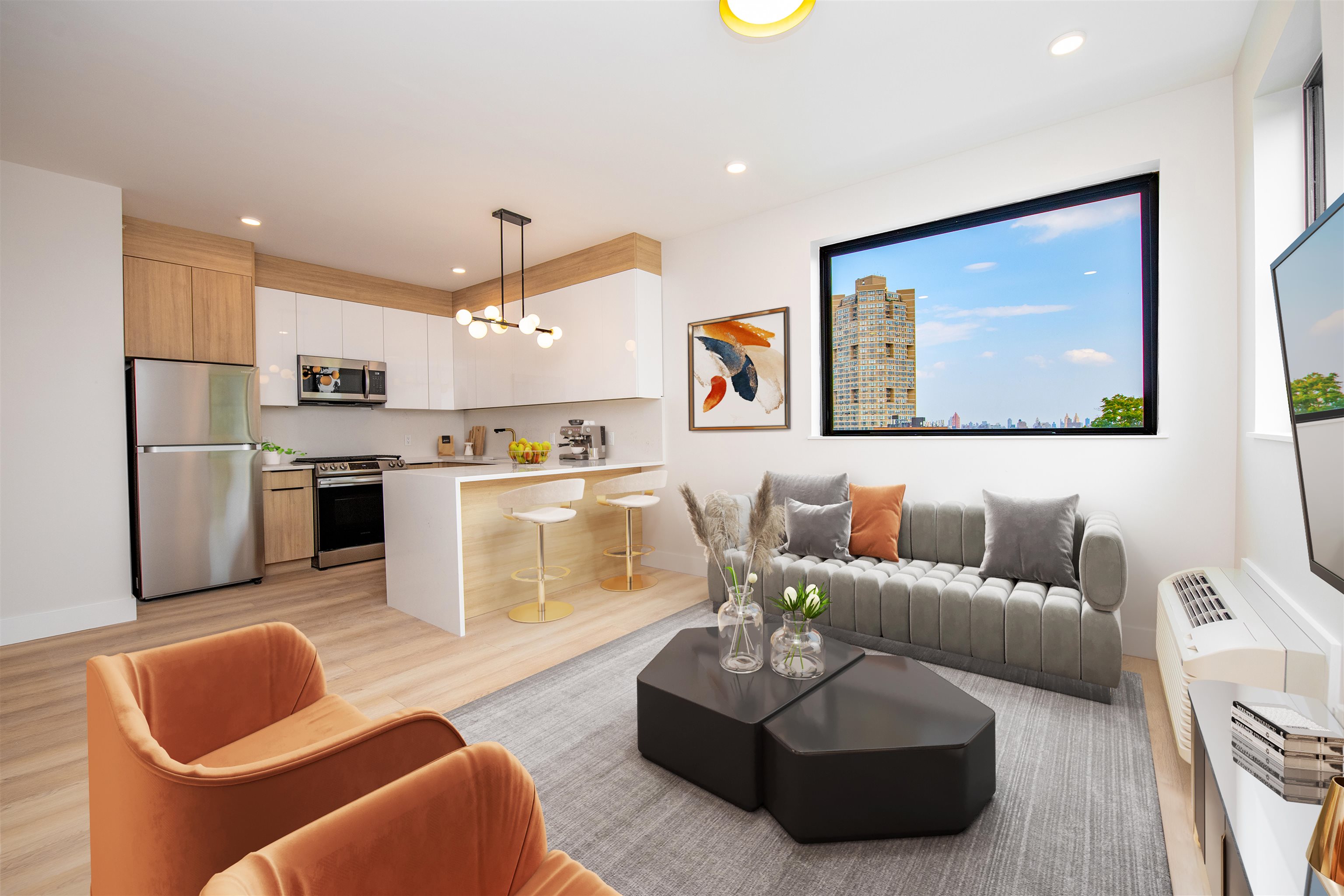 Welcome to this modern, state-of-the-art building, where luxury meets convenience. Discover a blend of contemporary design and cutting-edge amenities to suit your every need. This east facing unit has a gorgeous kitchen with quartz countertops, SS appliances, tons of cabinet space, and beautiful finishes throughout. There’s also a nice sized living room, an ample one bedroom, and a stunning custom bathroom. It also features a rooftop lounge area for relaxing and enjoying the views. It is strategically located near all restaurants, shops, convenience stores, and schools. Braddock Park is a mere few blocks away, offering 167 acres of serene views along with a lake, basketball courts, tennis courts, a playground, and so much more just in time for Summer. The new building is also Ideally positioned one block from the prestigious Blvd East which has beautiful NYC skyline views along with easy transport to Manhattan. Garage parking is also included in the rent at no extra charge. Your search is finally over, Schedule for a private tour today!