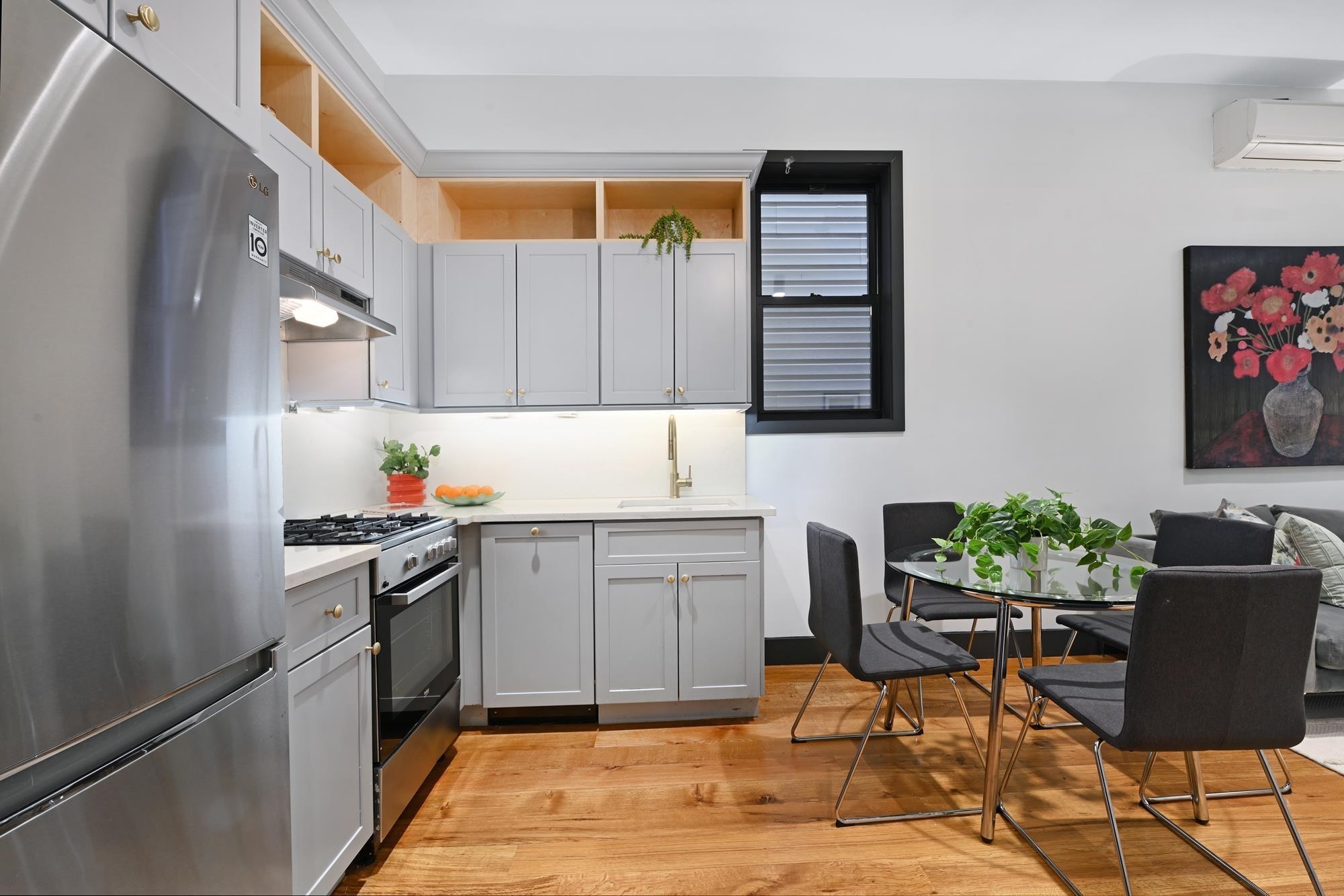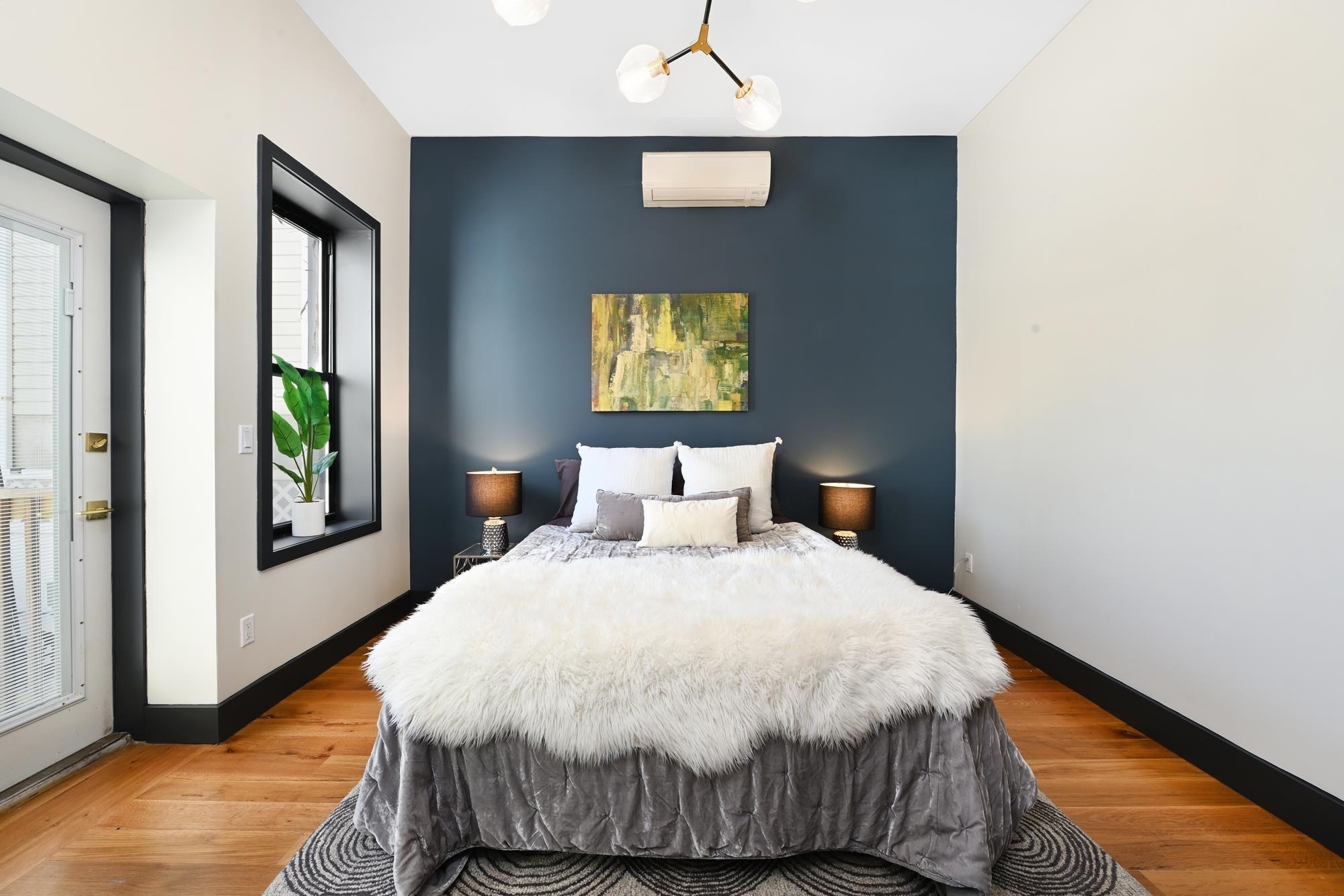 Discover the ultimate urban escape at 7 St Pauls Ave #4R, a sophisticated 2 bedroom, 2 bath home perfectly nestled on the desirable crossroads of Jersey City Heights and Hoboken. Part of a boutique collection of residences, this home beautifully blends Art Déco elements with modern design, creating a unique and stylish living space. Step inside a world of contemporary living where turn-of-the-century charm is highlighted by gleaming hardwood floors, thoughtful interiors, striking black trim, and curated pendant and chandelier lighting throughout. The open-concept kitchen is a chef’s delight, boasting custom shaker cabinetry, sparkling white quartz countertops, elegant brass fixtures, and a suite of stainless steel appliances. The bathrooms are equally luxurious, designed with tile to the ceiling, beautiful brass trim, and high-end glass showers; the primary ensuite adds flair with a deep blue accent wall. For added convenience, the home includes a stackable LG washer and dryer. Located in a stunning, newly refinished white brick building on a quiet street just off Palisade Avenue, this residence boasts unparalleled convenience and accessibility. Residents enjoy easy access to the best of both vibrant communities—The Heights and Hoboken—with an abundance of shops, restaurants, priceless parks, and excellent schools nearby. Commuting is a breeze with quick access to the PATH, ferry, and Holland Tunnel. Don’t miss the chance to live in this highly desirable location! Contact now to schedule your private viewing.