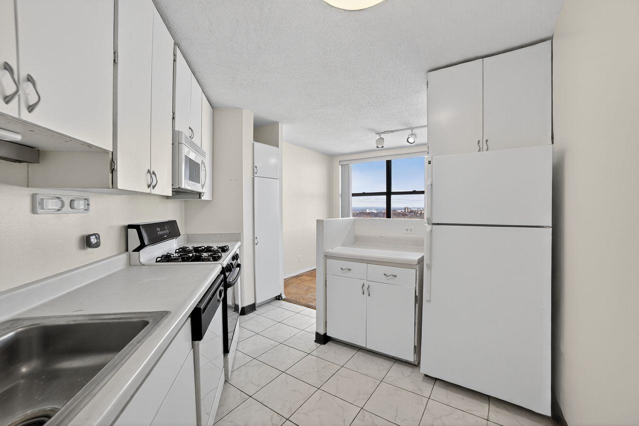 Welcome to the 42nd floor of Galaxy Towers—just one level below the penthouses, where this spacious 1-bedroom, 1.5-bath condo offers breathtaking, unobstructed views of the NYC skyline and George Washington Bridge through dramatic oversized windows. With an open and generously sized layout, a large living and dining area, ample storage, and a private primary suite with its own full bath plus an additional powder room, this home delivers incredible potential and unmatched elevation. Galaxy Towers offers true resort-style living with every amenity at your fingertips: 24/7 concierge and security, indoor and outdoor pools, a full fitness center, spa amenities including sauna, steam room and jacuzzi, tennis and pickleball courts, a beautifully landscaped private garden, residents’ lounge and meeting rooms, game room, children’s playroom, and a convenient on-site mini-mall featuring a grocery store, pharmacy, restaurants, salon, daycare and more. Maintenance includes all utilities, and garage parking is available. All of this just minutes from Manhattan—luxury, convenience, and world-class views in one iconic tower.