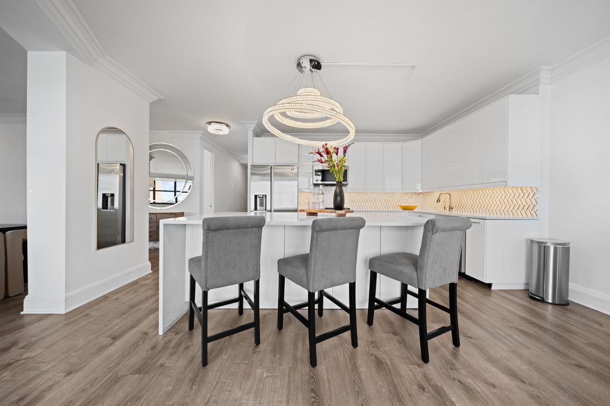 Discover luxury living at its finest in this sprawling 2,100 sq. ft. penthouse in Guttenberg, NJ. This exceptional 3-bedroom, 3.5-bath residence showcases breathtaking Hudson River and George Washington Bridge views from every room, creating a truly elevated living experience. Designed for both comfort and entertaining, the open-concept layout features a beautifully renovated kitchen with an expansive 8’ x 4.5’ island—ideal for gatherings. Elegant crown molding adds a refined touch, while the primary suite offers custom closets for abundant storage. A rare in-unit washer and dryer—exclusive to penthouse residences—adds unmatched convenience. Two oversized private terraces extend your living space outdoors, providing the perfect setting to relax or entertain while taking in panoramic skyline and waterfront views. The building’s resort-style amenities complete the lifestyle: indoor and outdoor pools, state-of-the-art fitness centers, full-service spa, tennis and pickleball courts, game room, children’s playroom, and a residents’ lounge with sweeping NYC views—perfect for private events. A serene garden and on-site mall add daily convenience and tranquility. Enjoy the substantial benefit of low property taxes, making this penthouse an exceptional long-term value in the area. Plus, with a motivated seller open to reasonable offers, this is a rare opportunity to secure an exclusive residence in one of Guttenberg’s premier buildings. Galaxy Towers delivers an unparalleled lifestyle with all-inclusive utilities (excluding cable), available parking, and resort-caliber amenities: indoor and outdoor pools, a cutting-edge fitness center, 24-hour concierge and security, and on-site shops and services. With effortless access to Manhattan by bus or ferry, this residence offers the perfect combination of sophistication, comfort, and accessibility.