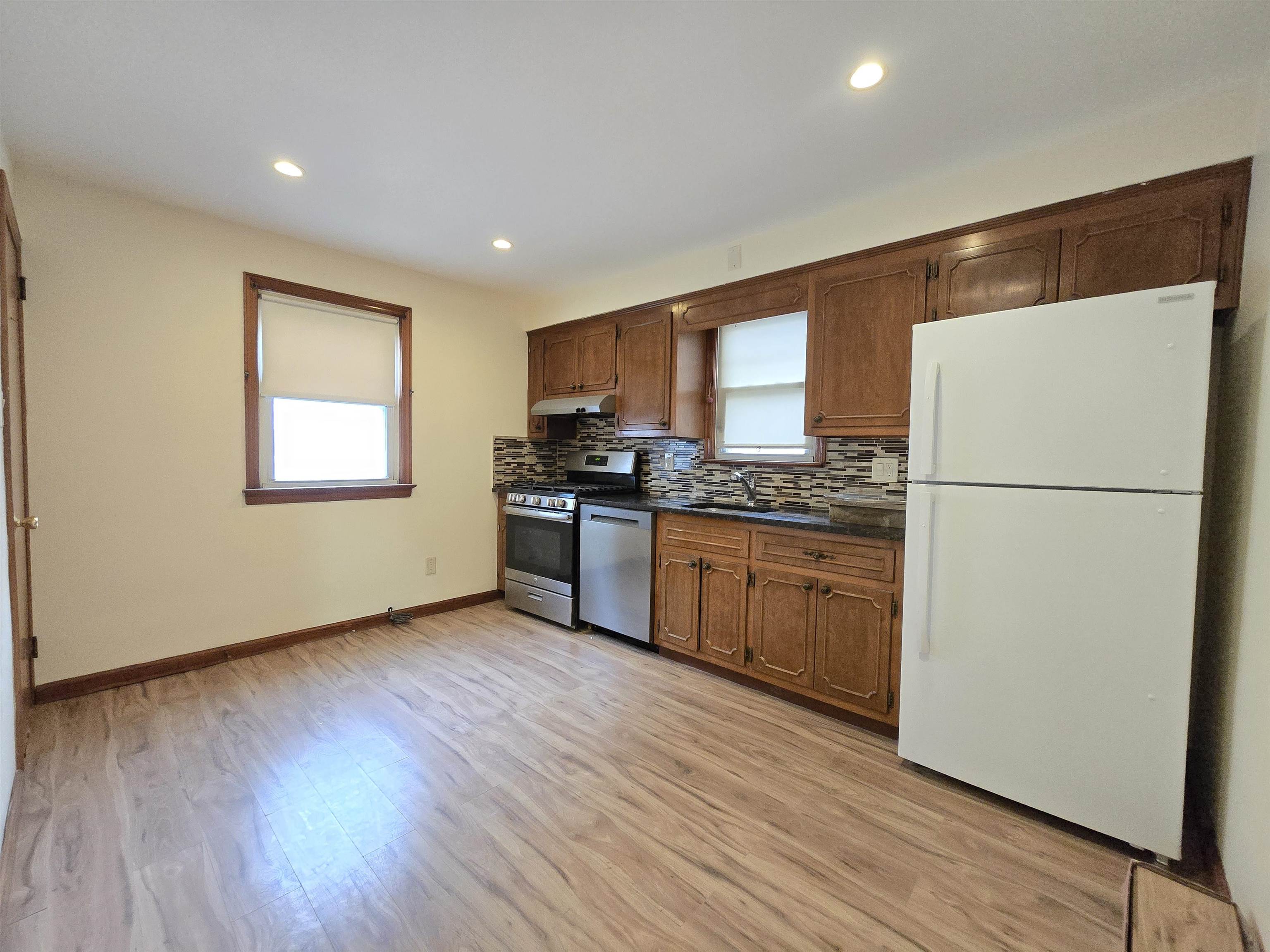 Renovated single family home in Secaucus. First floor has living room, eat in kitchen, two bedrooms, and a full bathroom. Second floor has a large third bedroom plus plenty of space for storage. Fully finished basement with a full bath including laundry room. Home includes garage plus 1 car driveway and a large fenced in backyard. Additional highlights include a fenced-in yard for privacy and an attached garage with covered area for parking plus a driveway for one car. Steps away from direct NYC bus access on Front Street which is just 15 minutes from NYC. Close to the elementary and middle schools, scenic parks, local restaurants, and shopping plus recreation center, Secaucus Town Pool, American Dream Mall. Quick occupancy available. Don’t miss your chance to rent this rare Cape Cod in a fantastic commuter location! Credit check, proof of income, rental application required. 1.5M security deposit. Tenant is responsible for all utilities, landscaping and snow shovel including sidewalk.