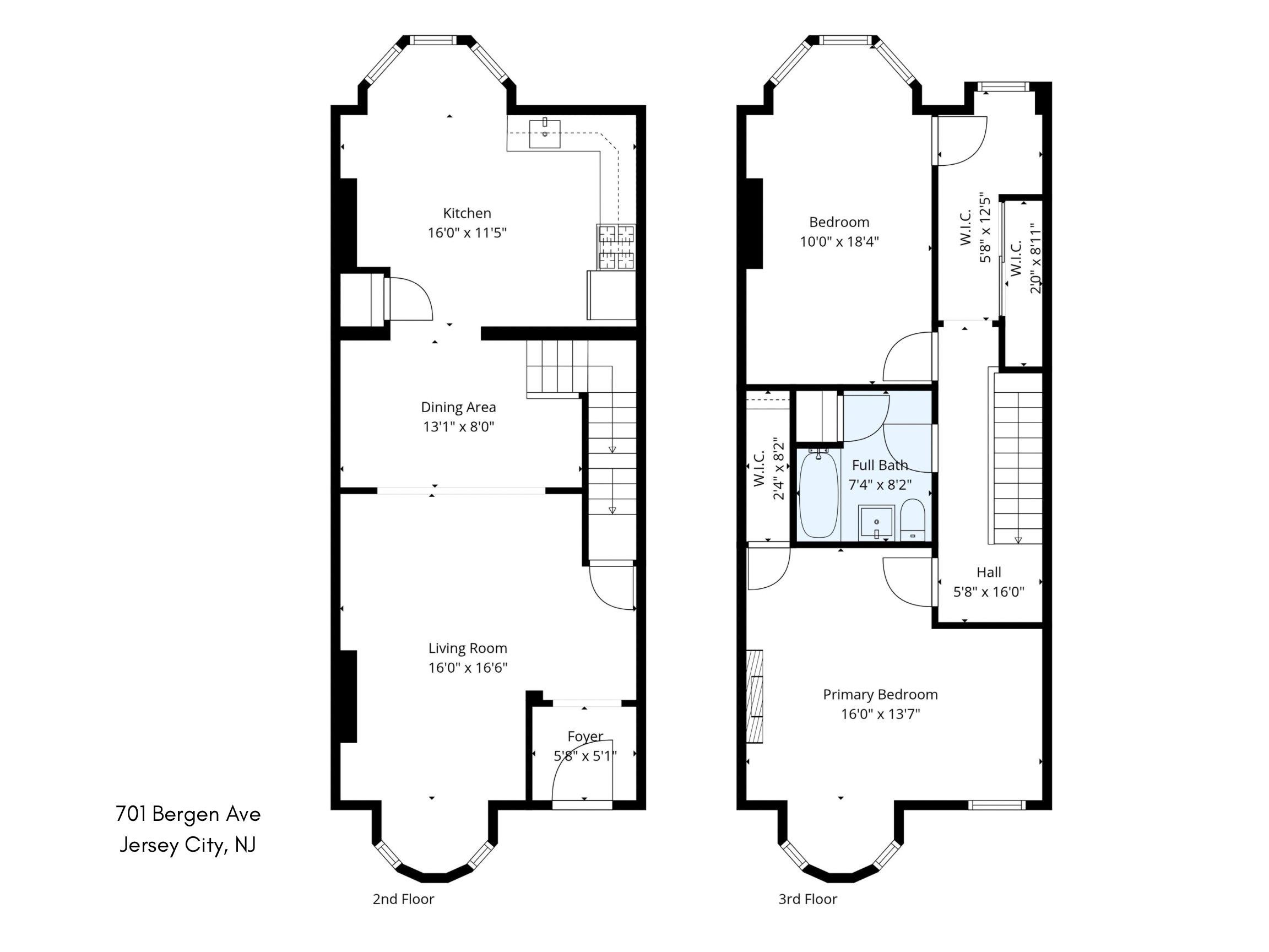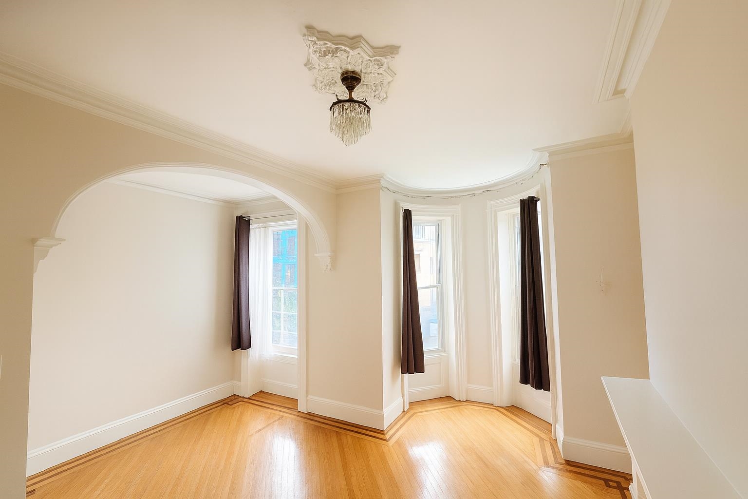 Step into this remarkable charming duplex apartment spanning two floors of a historic Jersey City brownstone. An opportunity to live in a space with character, size, and warmth that you almost never find on the rental market. This home is filled with original architectural details, including a beautifully preserved carved wood banister connecting the levels, stained-glass accents, decorative corbels on the upstairs archways, elegant sconces throughout, and stunning bay windows that pour natural light into both the living space and the bedrooms. The main level features a generously sized eat-in kitchen with granite countertops, abundant counter space, and room for a full dining table, making it feel like a true home rather than an apartment. The adjoining living area showcases original hardwood floors and classic brownstone charm. Upstairs, the front bedroom is bright and sunny with its bay windows, lovely original inlayed hardwood floors, stunning archways and a decorative mantle that adds to the historic appeal. The rear bedroom includes a walk-in closet plus a cozy nook ideal for a small desk or creative workspace. A full bathroom completes the upper floor. Nestled above an office space, this residence offers privacy and a residential feel while placing you moments from the energetic McGinley Square neighborhood—known for its shops, cafés, restaurants, and easy access to public transportation for a quick commute into New York City. This is a wonderfully unique chance to live in a beautifully preserved, spacious brownstone home overflowing with charm and personality.