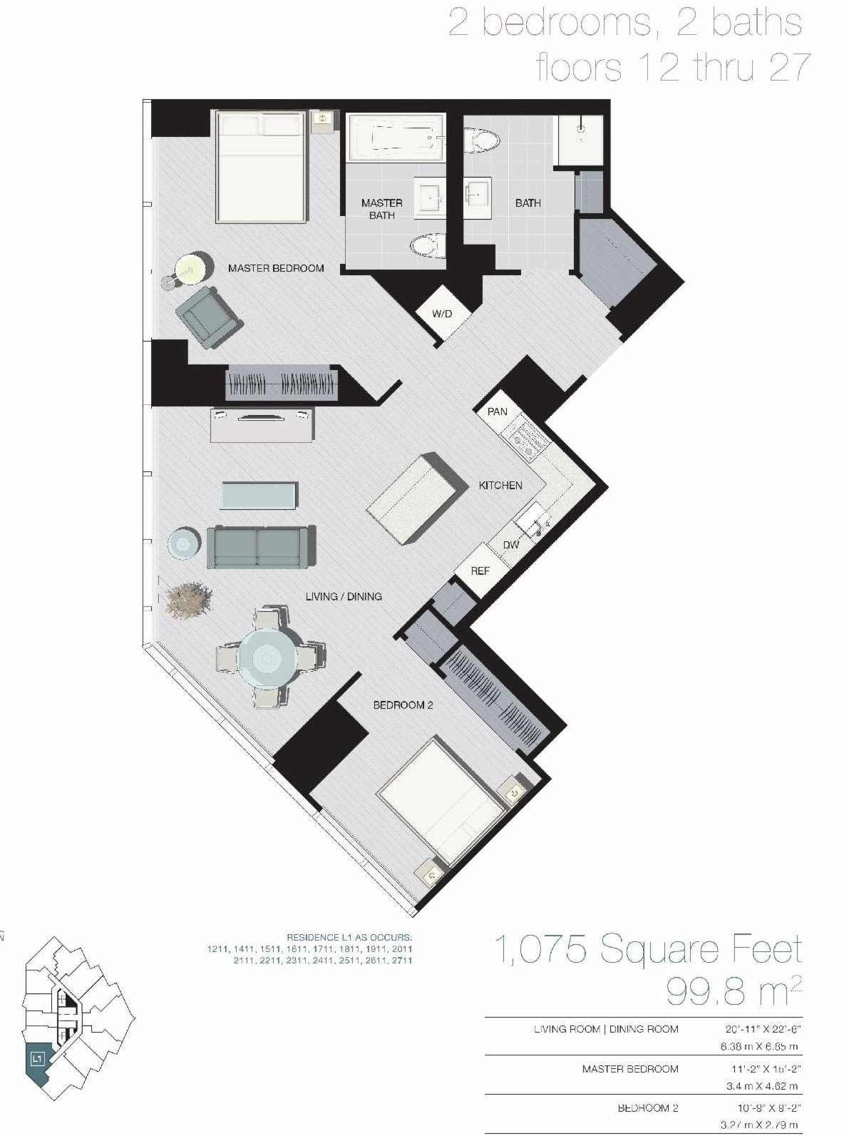 - Property Size: 1075 sqft