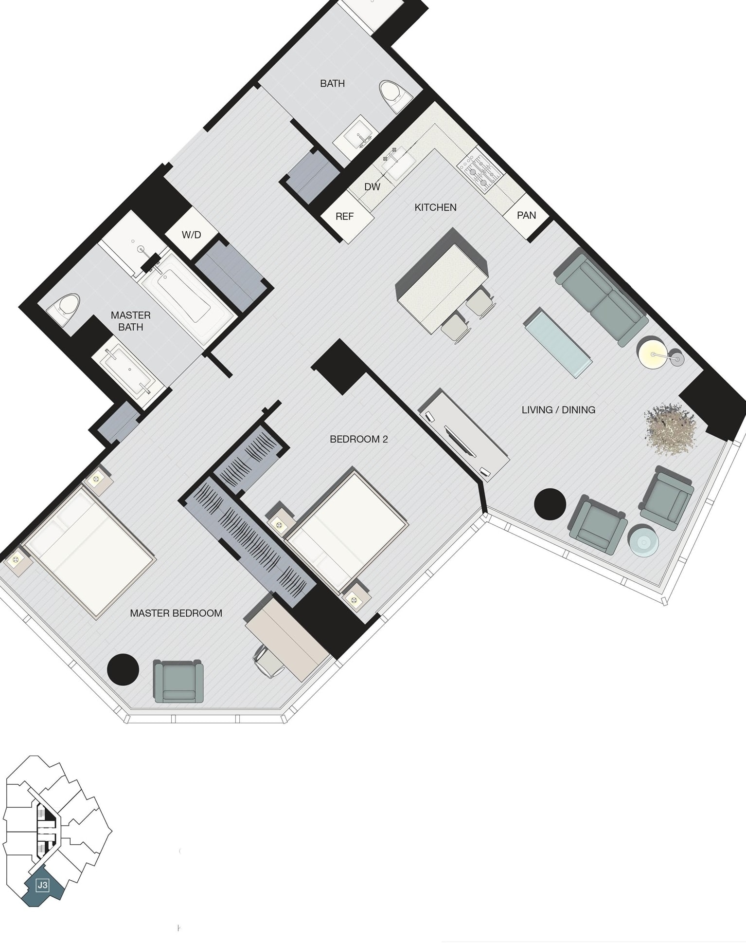 Discover this bright and spacious southeast corner 2-bedroom, 2-bath home in one of Jersey City’s most prestigious waterfront addresses — 77 Hudson. Recently fully renovated and move-in ready, this residence features an expansive open living and dining area surrounded by floor-to-ceiling windows, flooding the home with natural light and showcasing breathtaking views of the Manhattan skyline, New York Harbor, Liberty State Park, and Paulus Hook Marina. Enjoy the sunrise and sunset from the comfort of your home — a truly rare experience in city living. Featuring Italian Dada cabinetry, Portuguese Limestone countertops, and Miele & Liebherr appliances. Additional highlights include new hardwood floors throughout and a spa-inspired primary bath with a deep soaking tub and Grecian marble finishes. 77 Hudson – an award-winning, architecturally significant building balances design and functionality, resulting in a beautiful work of art. It is an icon of the Jersey City waterfront. Residents enjoy over 44,000 sq.ft. of resort-style amenities, including: • Swimming pool & hot tub • Fitness center & yoga room • Sauna & steam room • Movie lounge & golf simulator • BBQ area & children’s playground • Pet grooming station & laundry facilities Situated in the Paulus Hook neighborhood, 77 Hudson offers the best of urban convenience — just steps from the PATH train, Ferry, and Light Rail, with easy access to Manhattan, nearby restaurants, parks, and the Hudson River waterfront. A deeded garage parking space is included.
