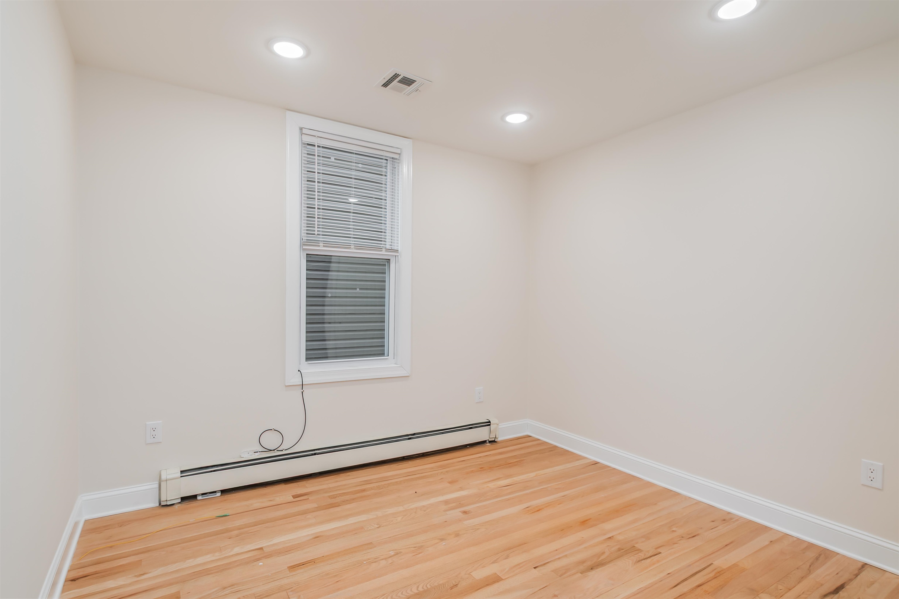 Discover this charming first-floor unit in a well-kept two-family home. The apartment features a welcoming front porch, hardwood floors throughout, a spacious living room and dining room, two comfortable bedrooms that easily fit queen-size beds, and one full bathroom. Shared access to the backyard offers additional outdoor space to enjoy, and optional off-street parking is available for $150/month. Conveniently located near NJ Transit bus routes and the Hudson-Bergen Light Rail, the home provides easy commuting to Jersey City, Hoboken, and Manhattan. The neighborhood offers nearby parks, local shops, restaurants, and everyday amenities, making this a comfortable and well-located place to call home.