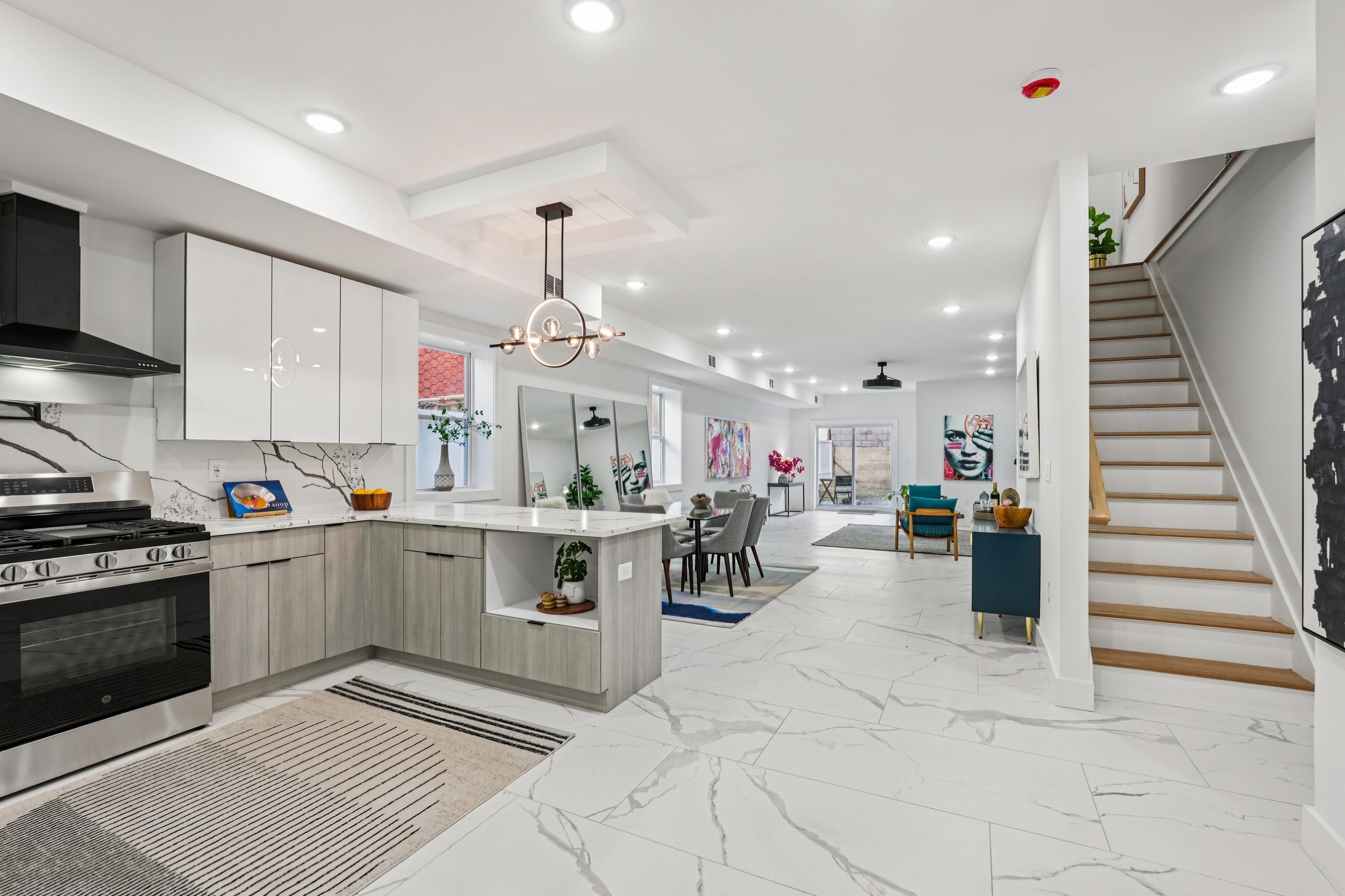 Eligible for a 5-year tax abatement and a special interest rate program with 5.375% (no PMI) and only 5% down, this home offers an incredible opportunity to experience the best of modern city living. Nestled in the vibrant Jersey City Heights neighborhood, 78 Beacon Ave presents over 2000 square feet, stunning 4-bedroom, 2.5-bathroom new construction condo that perfectly blends modern design with everyday comfort — complete with a private yard. Upon entry, you’re welcomed into an open-concept living and dining area filled with natural light from an expansive wall of windows, porcelain tile, creating a bright and inviting atmosphere ideal for relaxing or entertaining. The modern European style kitchen features a sleek quartz waterfall island, stainless steel appliances, ample storage, and sophisticated finishes making it a true centerpiece for all gatherings. The lower level provides exceptional versatility, featuring a fourth bedroom and full bathroom — perfect for guests or extended family or an au pair. The upper-level features hardwood floors and offers three spacious bedrooms and two full bathrooms, including a serene primary suite with a spa-like en-suite bath featuring a glass-enclosed shower and contemporary fixtures. Additional highlights include in-unit laundry for everyday convenience and plenty of closet space for all your storage needs. Located in Jersey City Heights, residents enjoy easy access to an array of local shops, trendy restaurants, parks, and transportation options — offering the perfect balance of neighborhood charm and urban convenience.