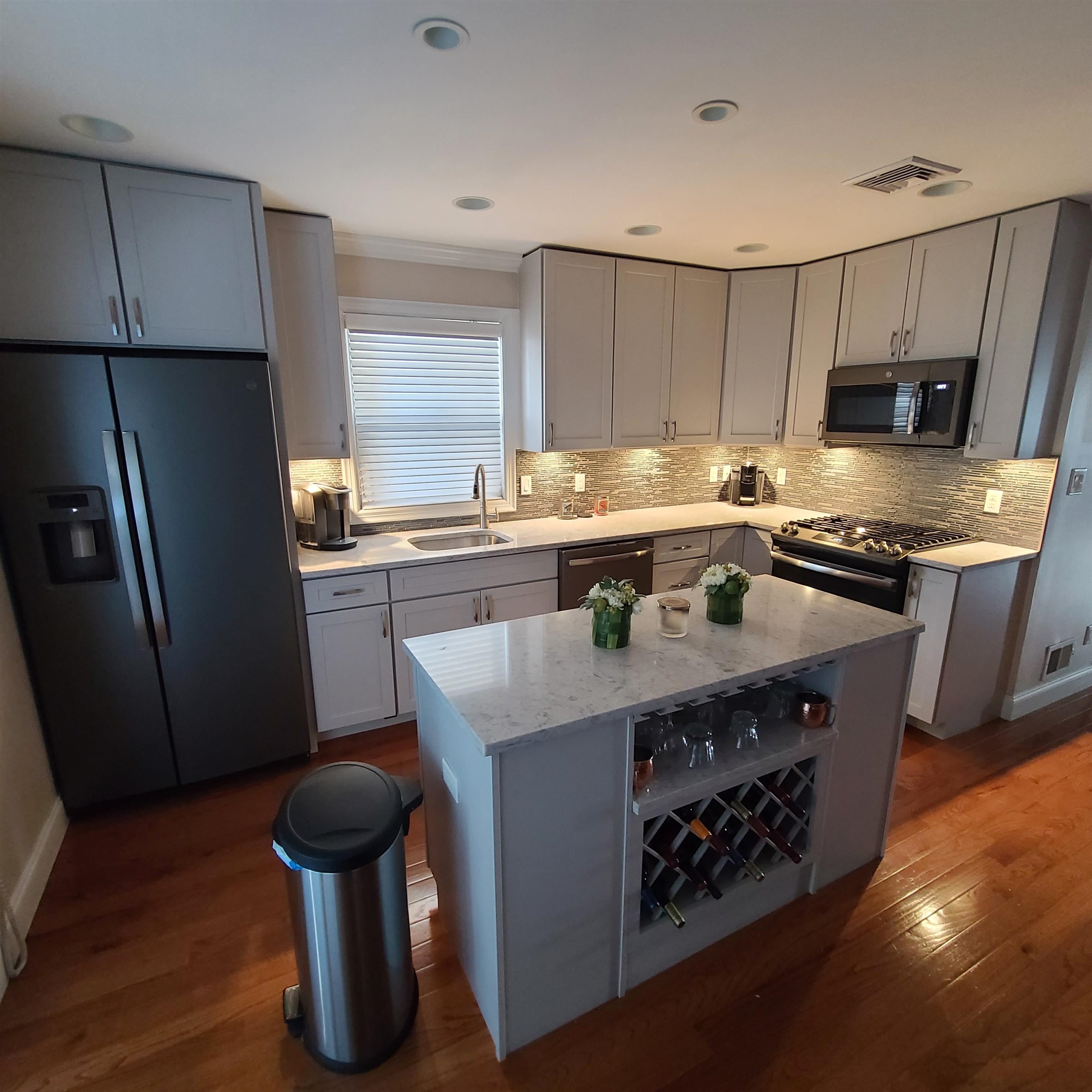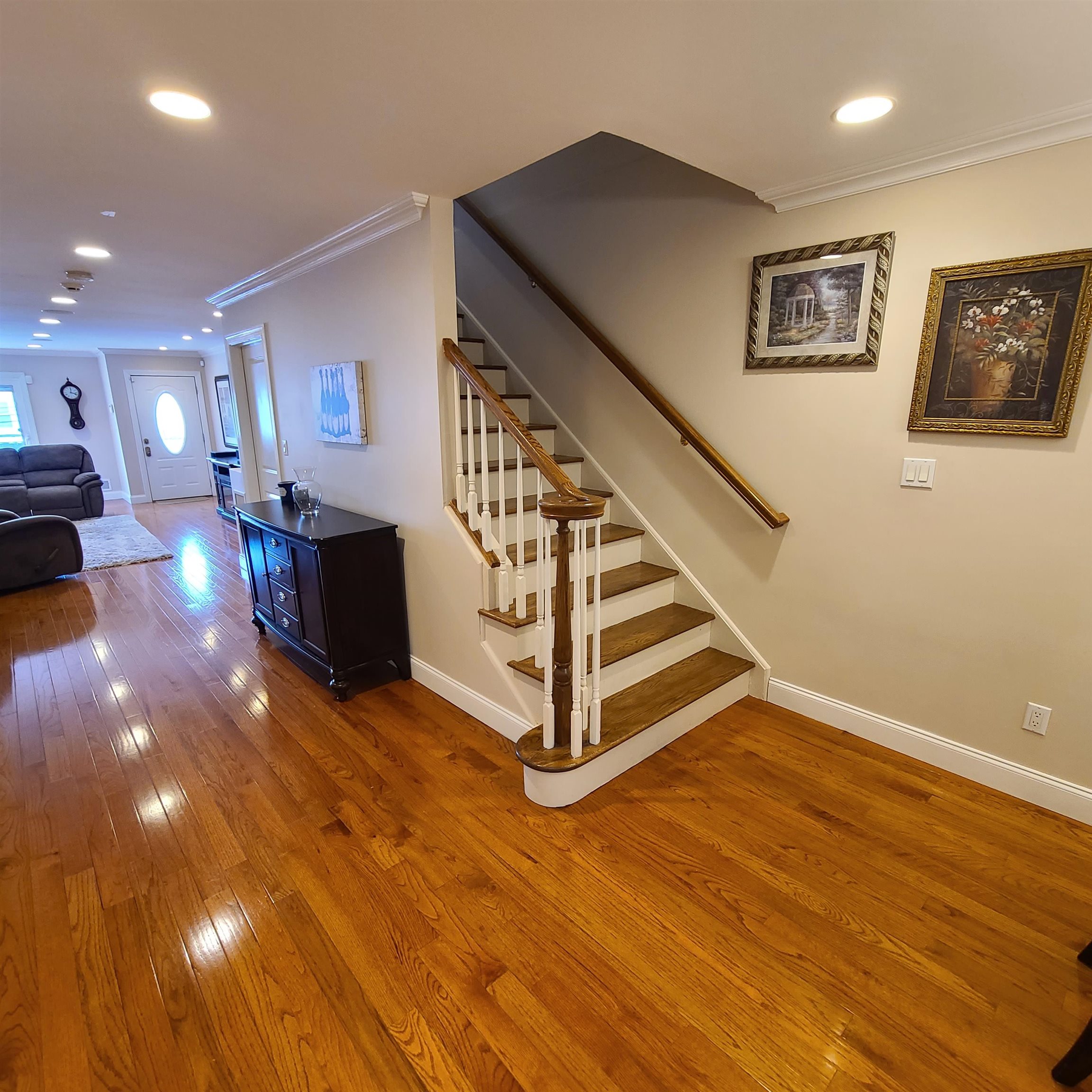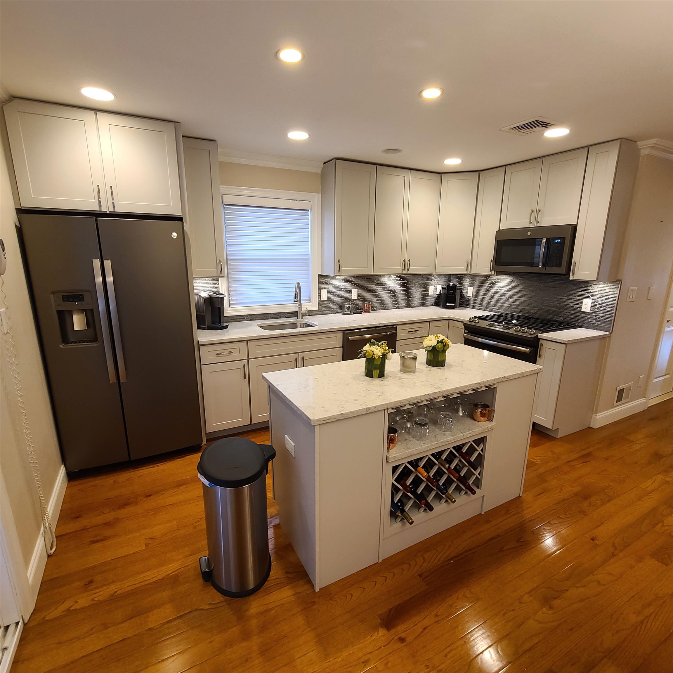 Very well maintained and modern one family in North Bergen’s desirable racetrack section. Located near schools, shopping, restaurants and many conveniences. Recently renovated kitchen with stainless steel appliances and quartz counter tops. Kitchen has sliding doors to new deck with electric canopy and gas grill. Spacious living room with built in surround sound for T.V. First floor also has laundry room and half bath. Second floor has 3 bedrooms with 2 full baths, (master bath has floor heater) Master bedroom has surround system for T.V. as well. Ground Floor has a family room which can be a 4th bedroom and a half bath with a sliding door to the backyard. Two Car garage and Two car driveway. Easy access to public transportation to NYC Port Authority and Journal Square. CCV camera system with DVR. Recessed lighting and Hardwood Floors.