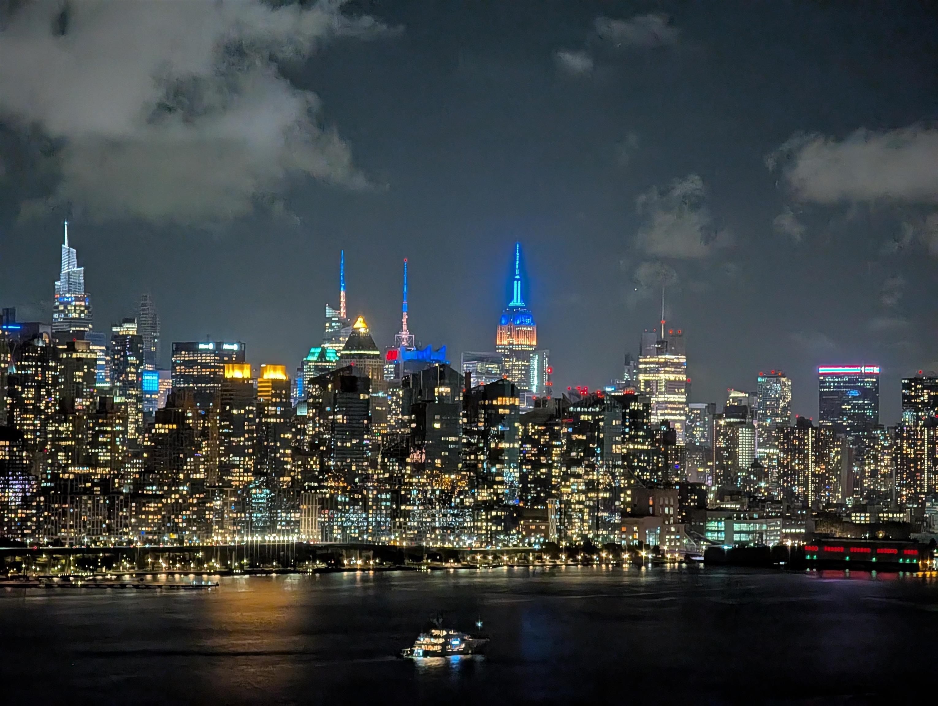 Generous in size at 1,542 sq. ft., this East-facing 2-bedroom, 2-bath residence at the Parker Imperial is a must-see! Step into an open-concept layout framed by breathtaking views of the New York Skyline and Hudson River. The spacious living and dining areas, enhanced by new flooring, flow into an upgraded kitchen featuring a large peninsula with granite countertops, abundant wood cabinetry, and stainless steel appliances—perfect for the avid cook and entertaining family and friends. Glass sliders open to a large covered balcony—ideal for relaxing, dining al fresco, and soaking in the dazzling city and river vistas. Smart lighting enhances the living space for modern convenience. Wake up to skyline views in the enormous and serene primary suite, complete with an upgraded ensuite bath and large walk-in closet. A large second bedroom, also with NYC views and a generous closet, adds flexibility. A second upgraded bathroom sits just outside the second bedroom. Lots of closets throughout! At the Parker Imperial, enjoy premier amenities including 24/7 doorman, 24/7 garage attendant, package room, on-site management, garage parking, a newly updated fitness center, outdoor heated pool, community room, and laundry facilities on every floor. The prime North Bergen location sits next to an expansive 167-acre park with a lake, free tennis and pickleball courts, a dog park, kids park, walking/jogging trails, basketball, baseball and football fields, while offering effortless access to transportation, shopping, and dining. Direct transit to NYC, Jersey City, and Hoboken is right at your door. 1 assigned garage parking space, hot/cold water, pool and gym included in HOA. Pets Welcome! Must see to appreciate the space and views!